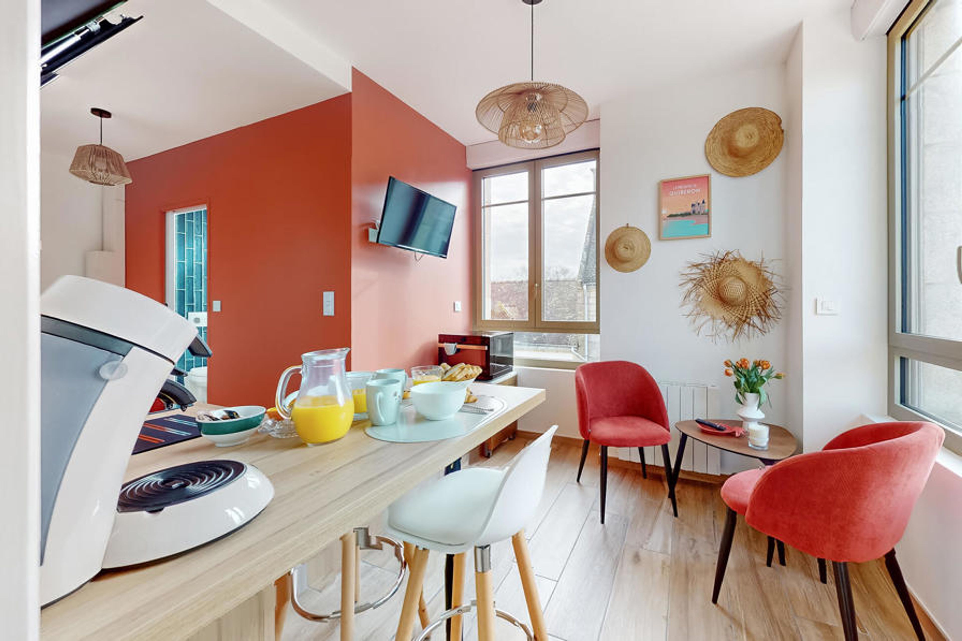 Escape from everyday life and spend a relaxing vacation in the inviting apartment, which welcomes you with bright rooms that are comfortably furnished in appealing colors. Have a great time here as a couple and use the apartment as a starting point for eventful days in Brittany and exciting excursions. Return to your vacation oasis after your activities and end the day with a glass of wine and a beautiful view of the outdoors in the living room.