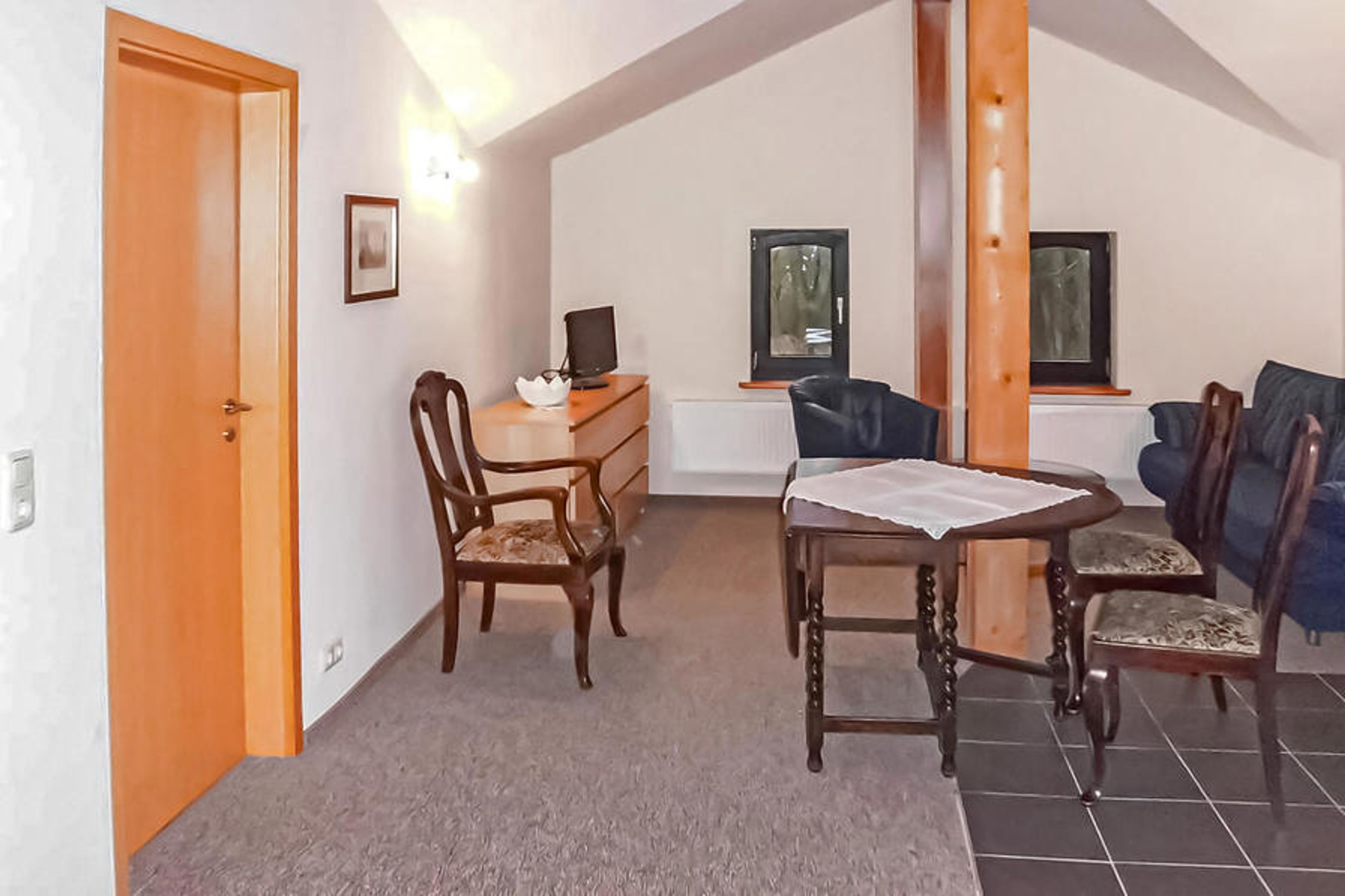 One of two holiday apartments on the 1st floor of the former horse stable (former carriage and riding stable), which has been converted into a guest house.
