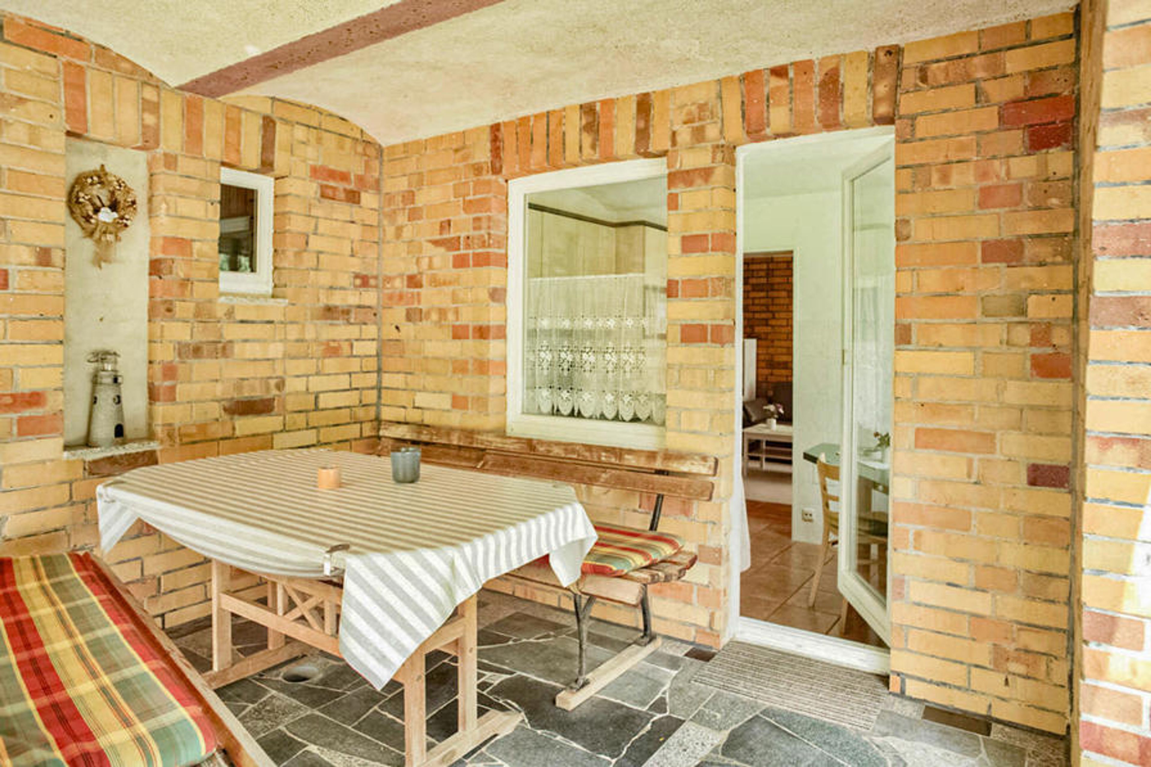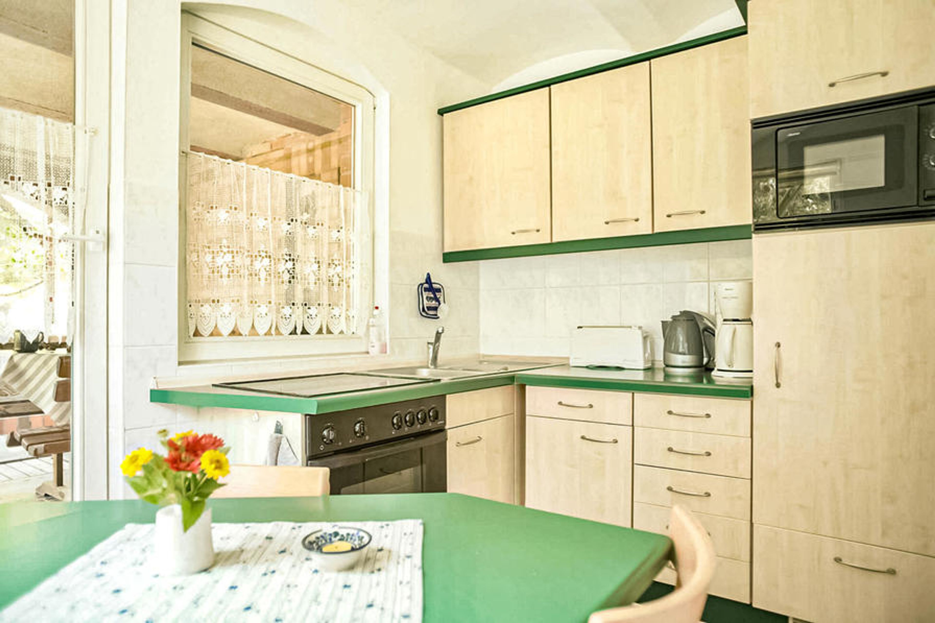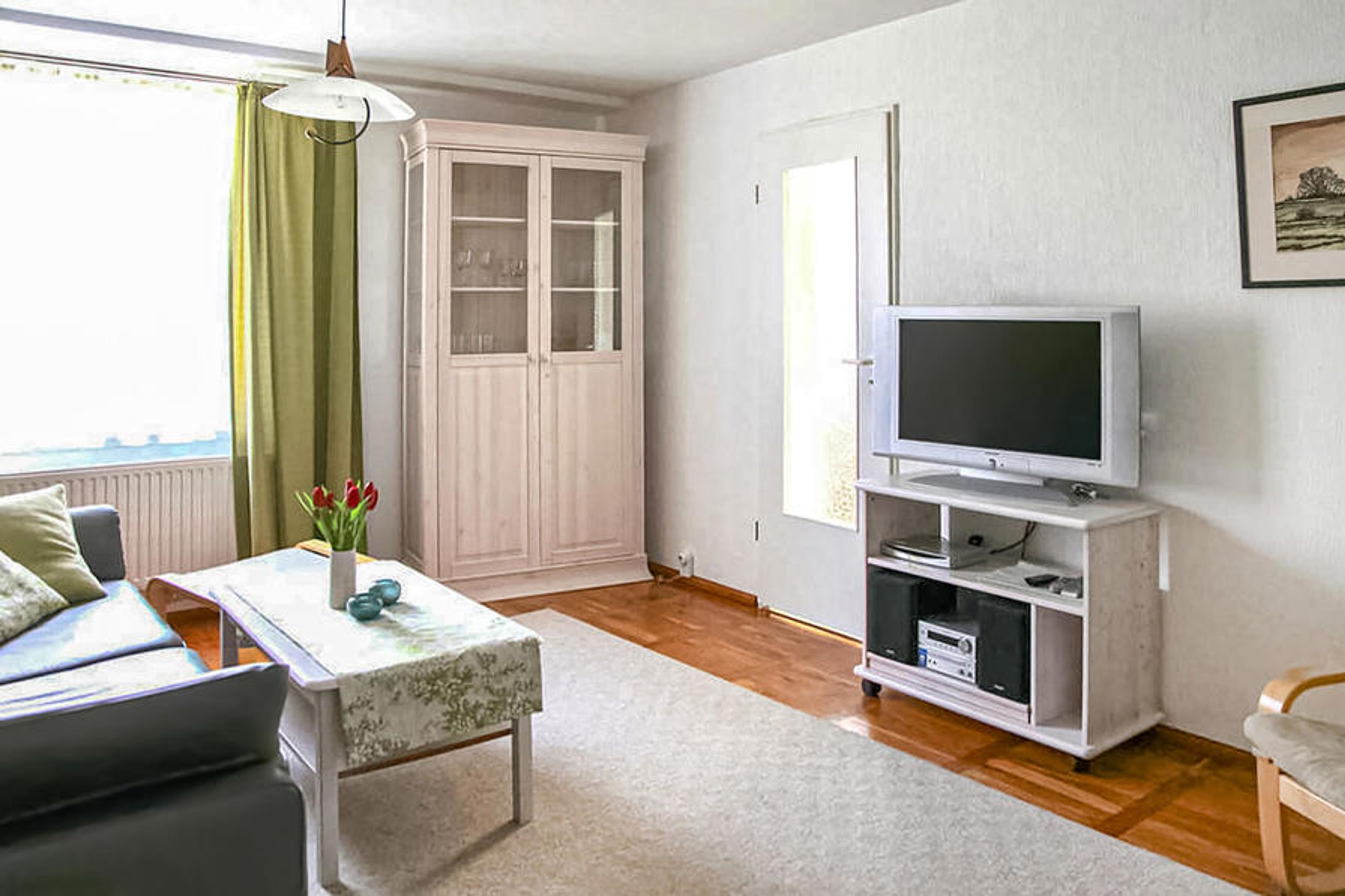 This holiday apartment is located on the ground floor. There is a living room (sofa bed, upholstered furniture, TV, radio), bedroom (double bed), kitchen with dining area and kitchenette, shower, WC, central heating and terrace.