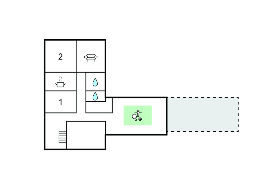This is one of two holiday apartments, a 3-room apartment with living room, 2 bedrooms, separate kitchen, shower/WC and guest WC and the 1-room apartment with combined living room/bedroom, open-plan k...