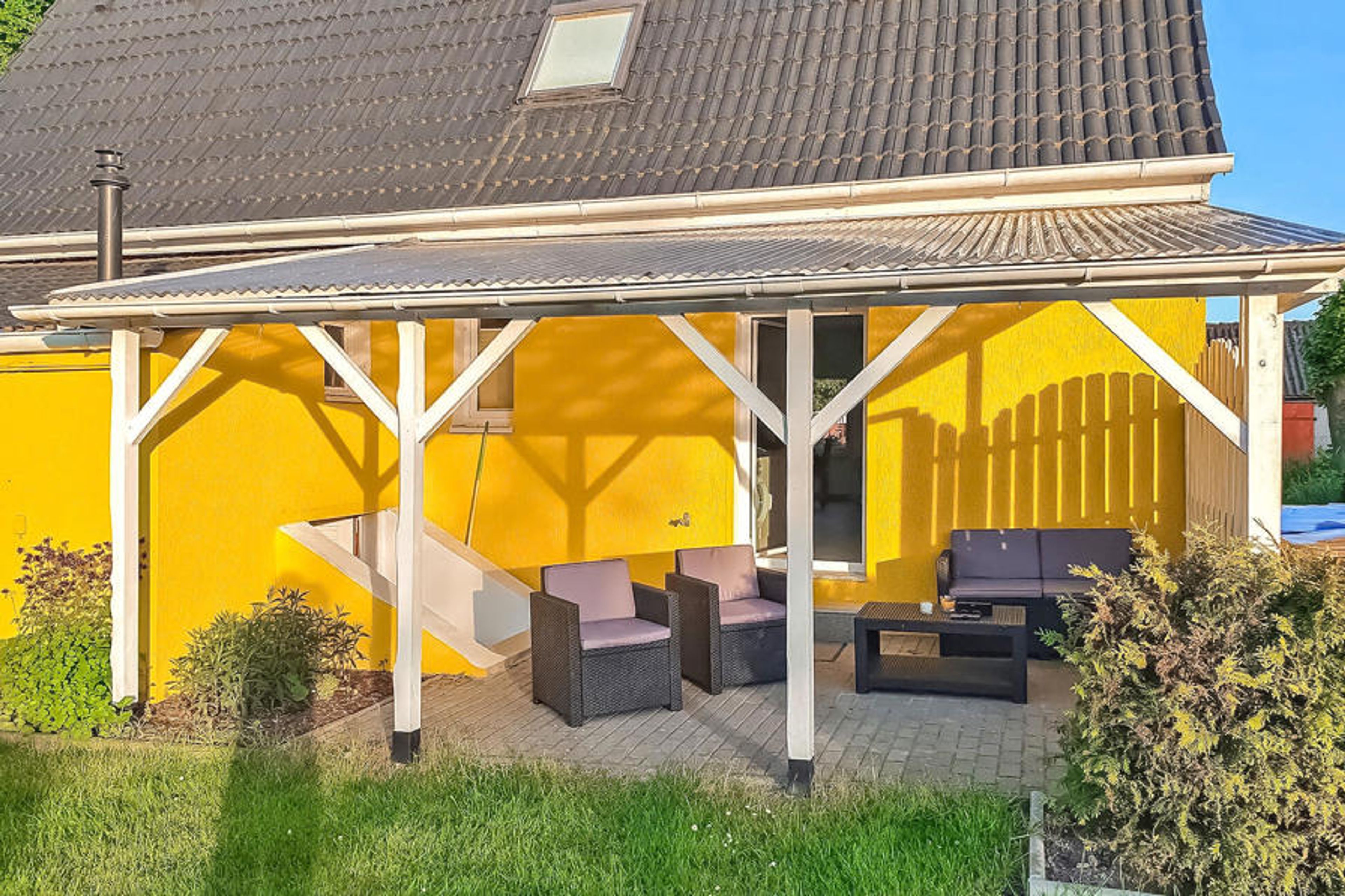 Quietly and idyllically situated on the outskirts of Solkendorf (OT von Klausdorf) and only a few metres from the Bodden, this holiday home for up to 4 adults and 1 baby is located on a separate and fully fenced plot of approx. 500 m². There is a small restaurant three houses away and shopping facilities in Prohn, approx. 5 km away. The Barhöft harbour (ideal starting point for anglers) is also easily accessible by bike from here.