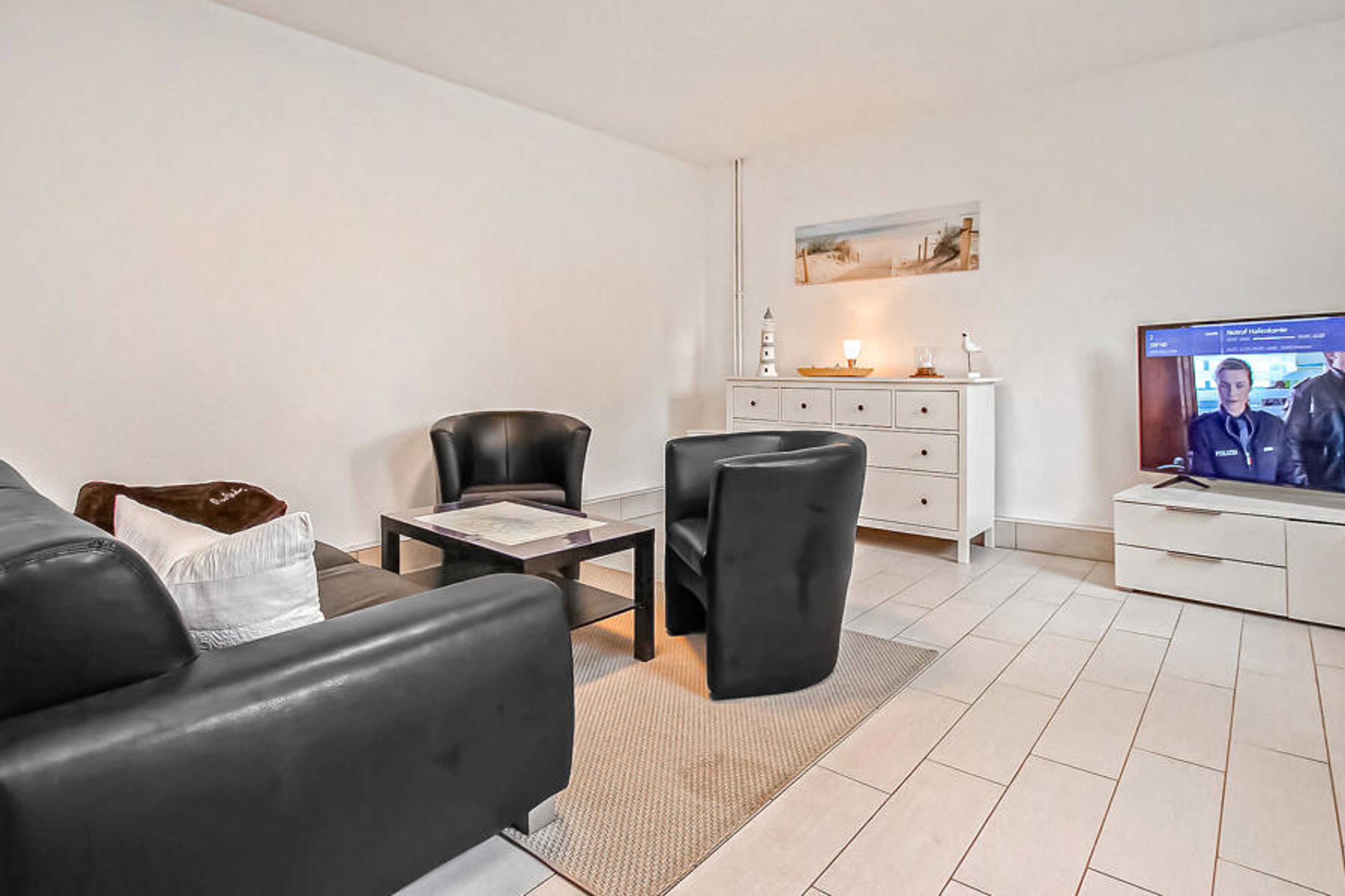 The approx. 90 m², bright, centrally heated, non-smoking holiday home is equipped with insect screens and extends over two floors. On the ground floor there is an open-plan living room (leather suite, flat-screen smart TV with streaming), a dining room (from here a beautiful view of the Bodden) and the kitchen (electric cooker with oven, fridge with freezer, dishwasher, washing machine, various small kitchen appliances) as well as the bathroom (shower, WC, hairdryer). On the upper floor (accessible via stairs) there are two bedrooms (1 x double bed, flat screen TV, 1 x two single beds).