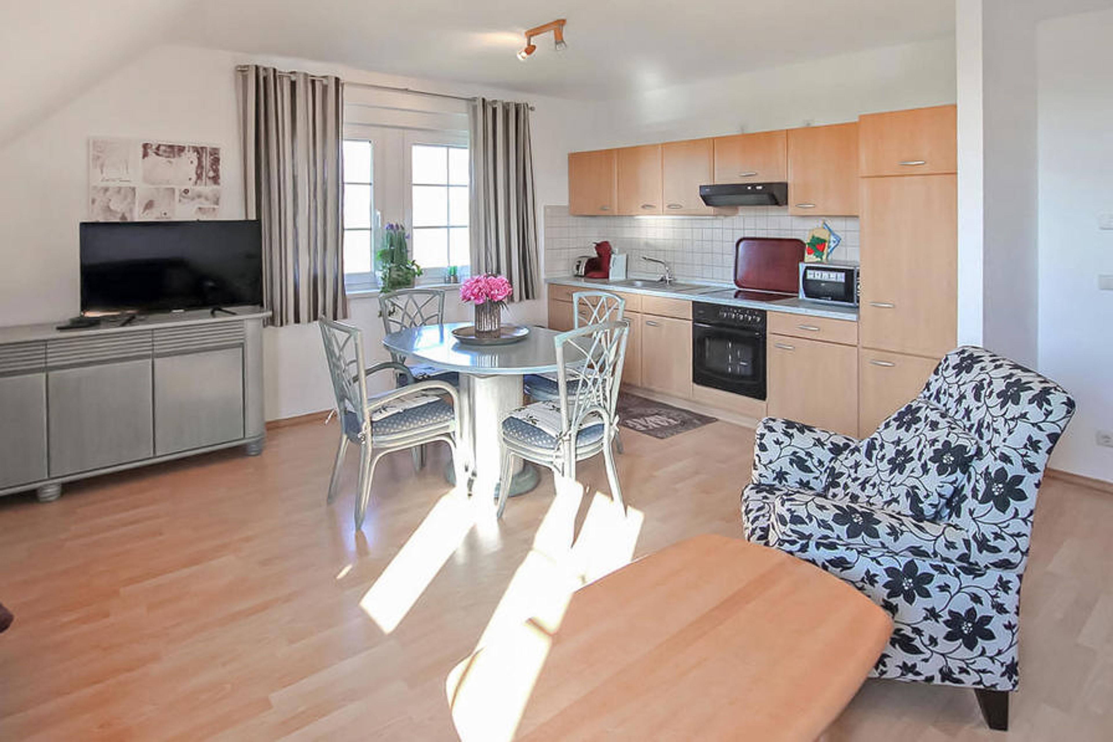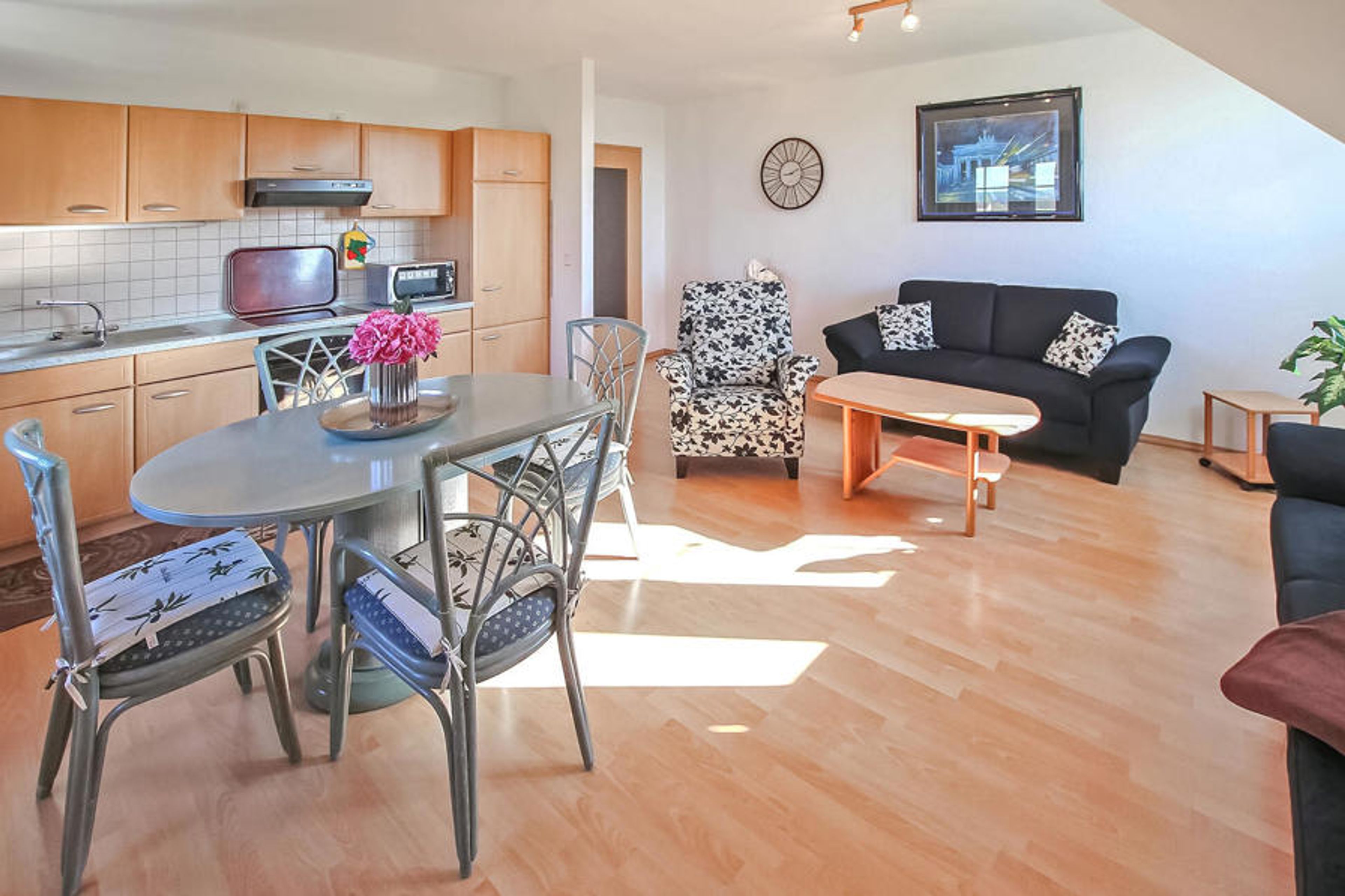 The holiday apartment with separate entrance is located on the upper floor of a residential building on the owner's 4000 square metre nature/residential property directly on Lake Malkwitz. The owner runs a small organic farm on an area of 50 hectares. Horses, goats and sheep in the adjoining paddocks as well as chickens and ducks fill the farm with life and convey the charm of a classic country holiday. The holiday apartment (lake view) is equipped with: Living/dining room (upholstered furniture, flat-screen TV, radio, dining table), 2 bedrooms (1 x double bed, single bed, 1 x 2 single beds), open-plan kitchenette (electric cooker with oven, fridge with freezer, various kitchen appliances), shower/WC with washing machine, central heating (underfloor heating). Cot and high chair available. At your disposal: Terrace or furnished outdoor seating area with barbecue facilities, sun loungers, bicycle storage and car park. Final cleaning, water and energy costs are included in the total price. Please bring your own bed linen and towels. You must bring a basket or blanket for your pet!
