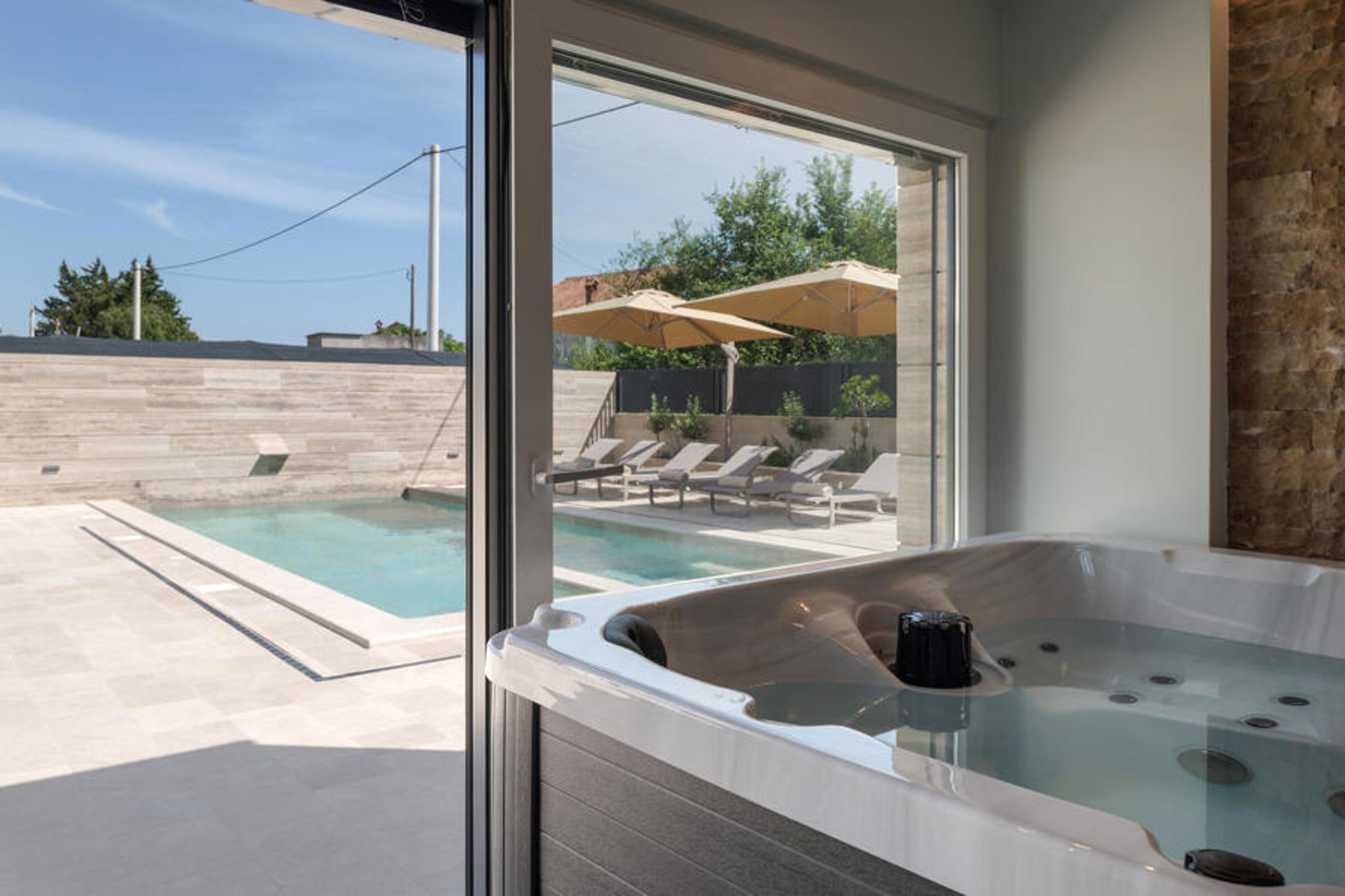 Enjoy a wonderful sea panorama on vacation in this comfortable vacation home with pool and whirlpool.