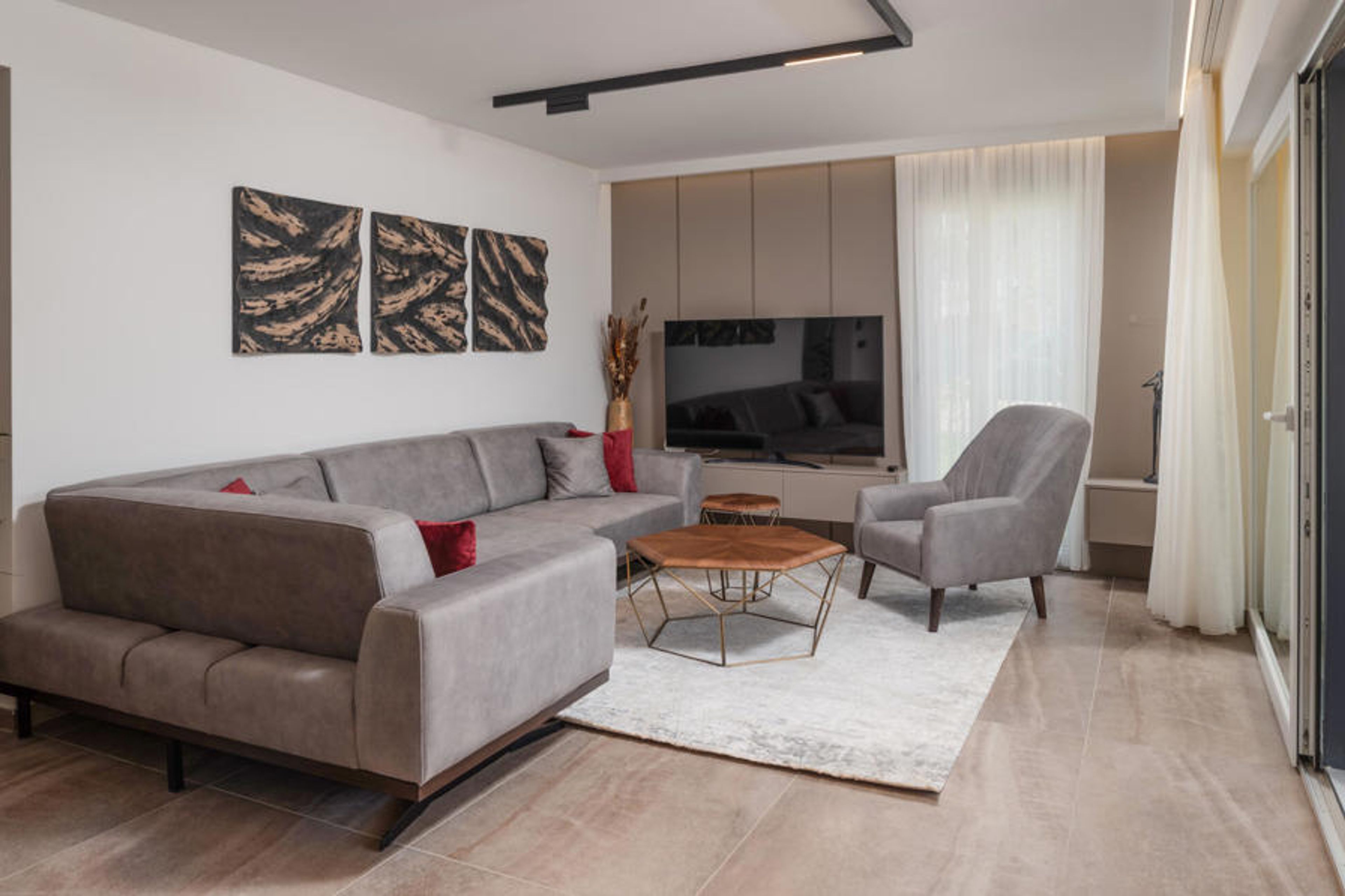 Centrally located and not far from the sea, this spacious house is ideal for a vacation with several families or a group of friends. Relax here in a stylish ambience, the appealing furnishings with modern charm will make you feel at home from day one. Relax in the bathtub and whirlpool and make yourself comfortable on the spacious sofa in the evening after a meal together and enjoy a movie night.