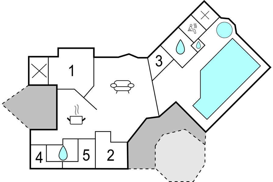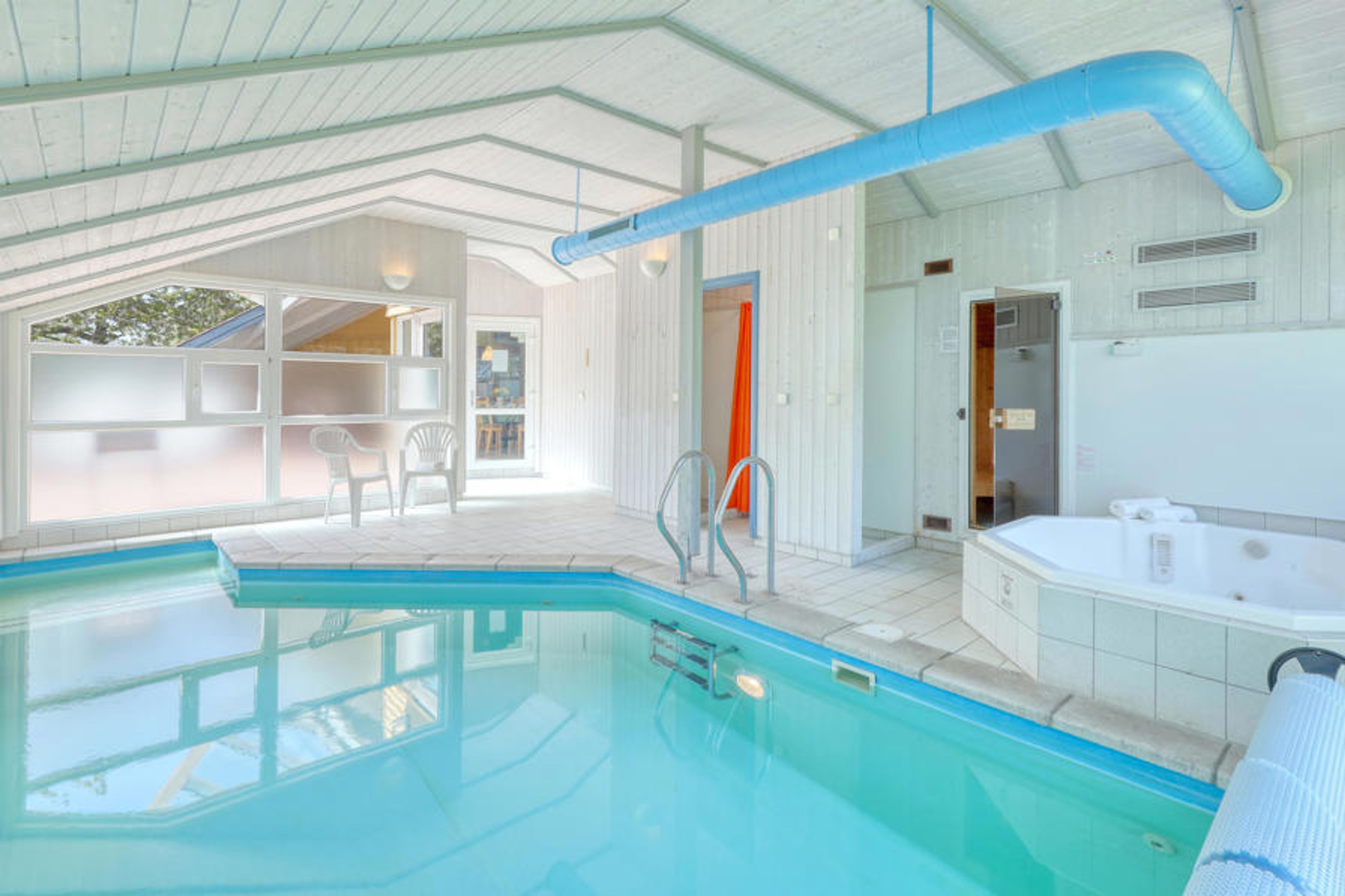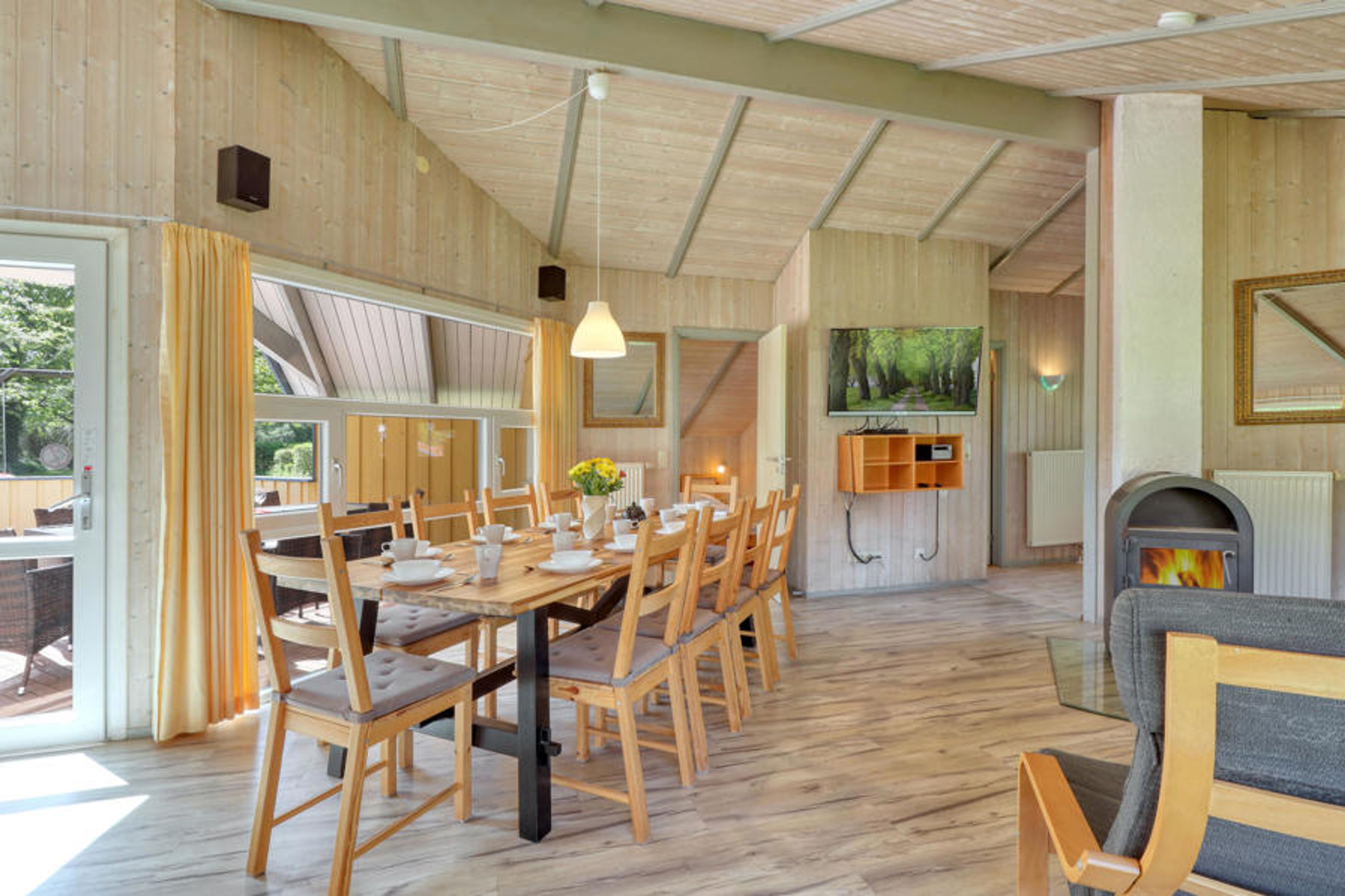 This inviting vacation home with private swimming pool is the accommodation you have been dreaming of. Together with your extended family or family friends you can make yourself comfortable here. Come together in the living area, which is flooded with daylight. There, a fireplace stove invites you to spend relaxing hours in front of the crackling fire, even in cold weather. From the living area you can also watch the hustle and bustle of your loved ones in the pool room next door through a glass wall. The large pool with counter-current invites you to romp and play. Right next door, up to five people can relax under the massage jets of the whirlpool. Just take a break from everyday life here!