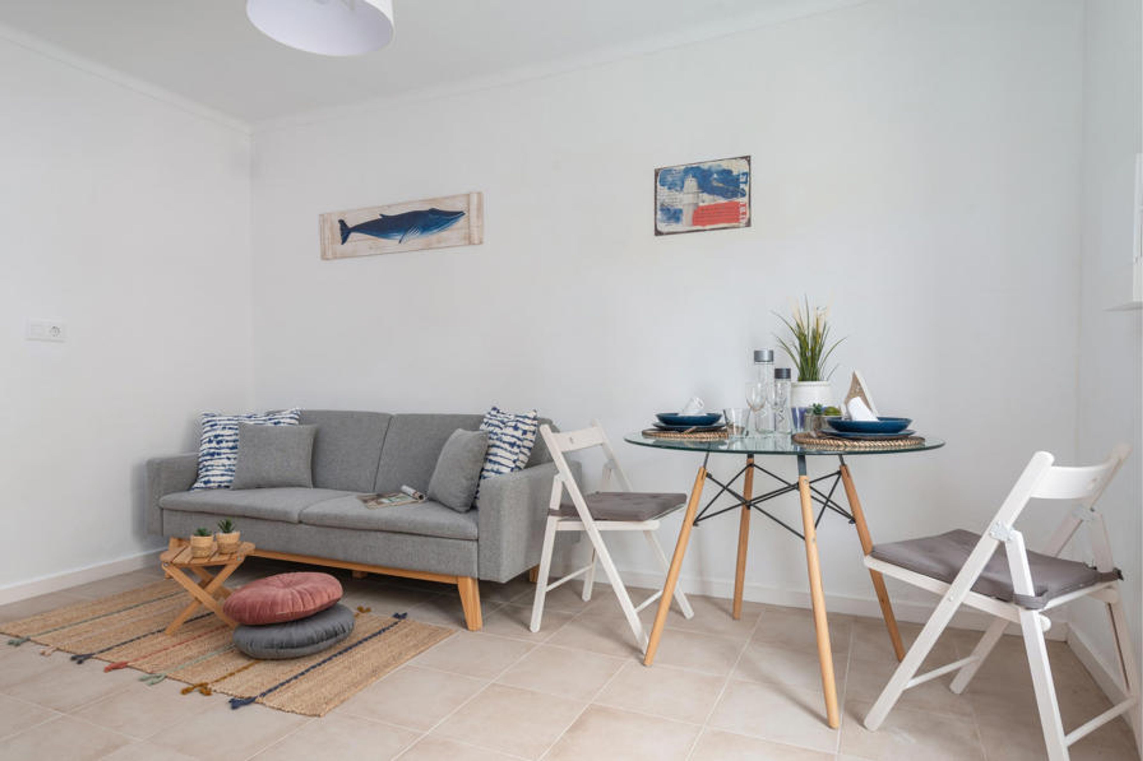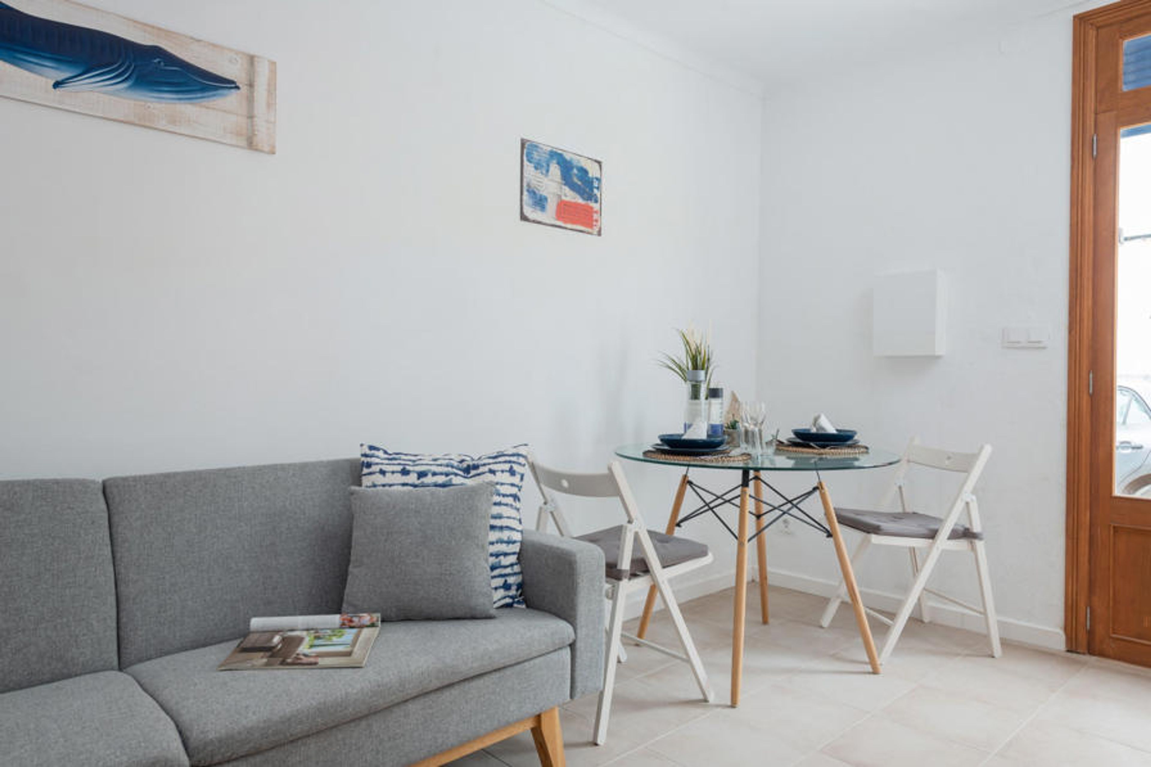 The one-story interior stands out for its modern style but preserving the traditional essence of the house. It has a living-dining room with air conditioning and TV, a kitchen with a ceramic hob, two bedrooms with double beds and an exterior bathroom with a shower. You will also find a washing machine, iron and ironing board and we can provide a cot and high chair if you travel with your baby.