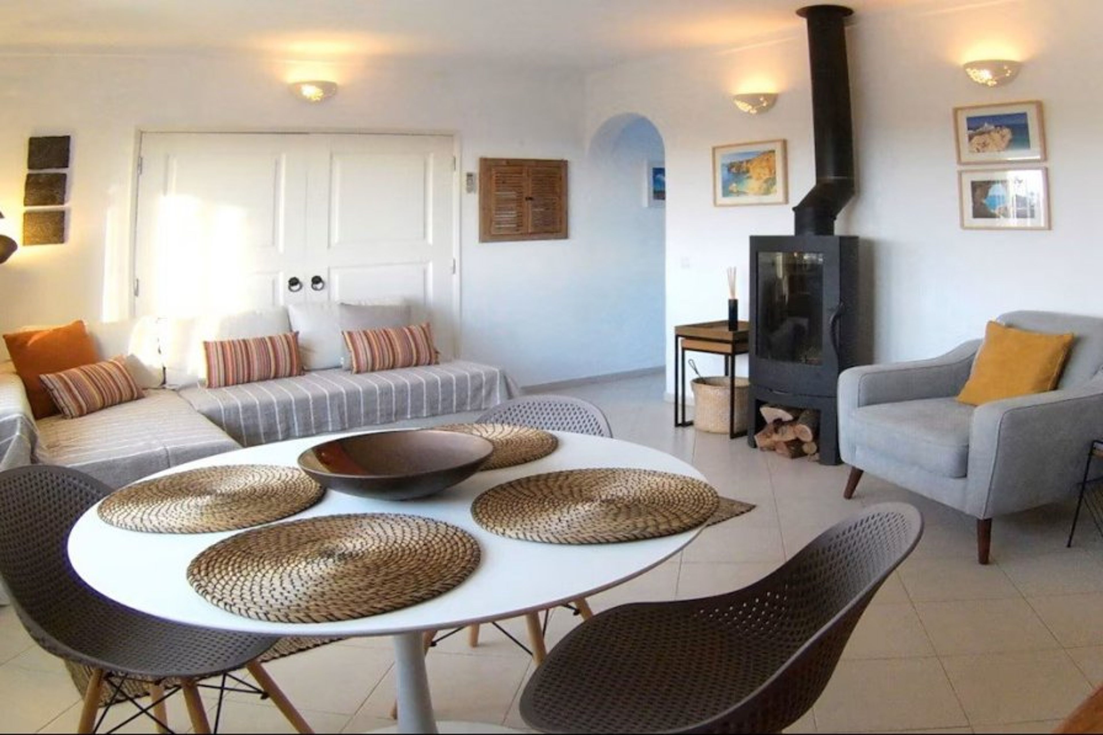 There is a wood-burning fire for those Autumn and Winter evenings, when it can get a little chilly, and a television with satellite receiver for the occasional evening in or to keep the children occupied. There is also a video player and a music centre.