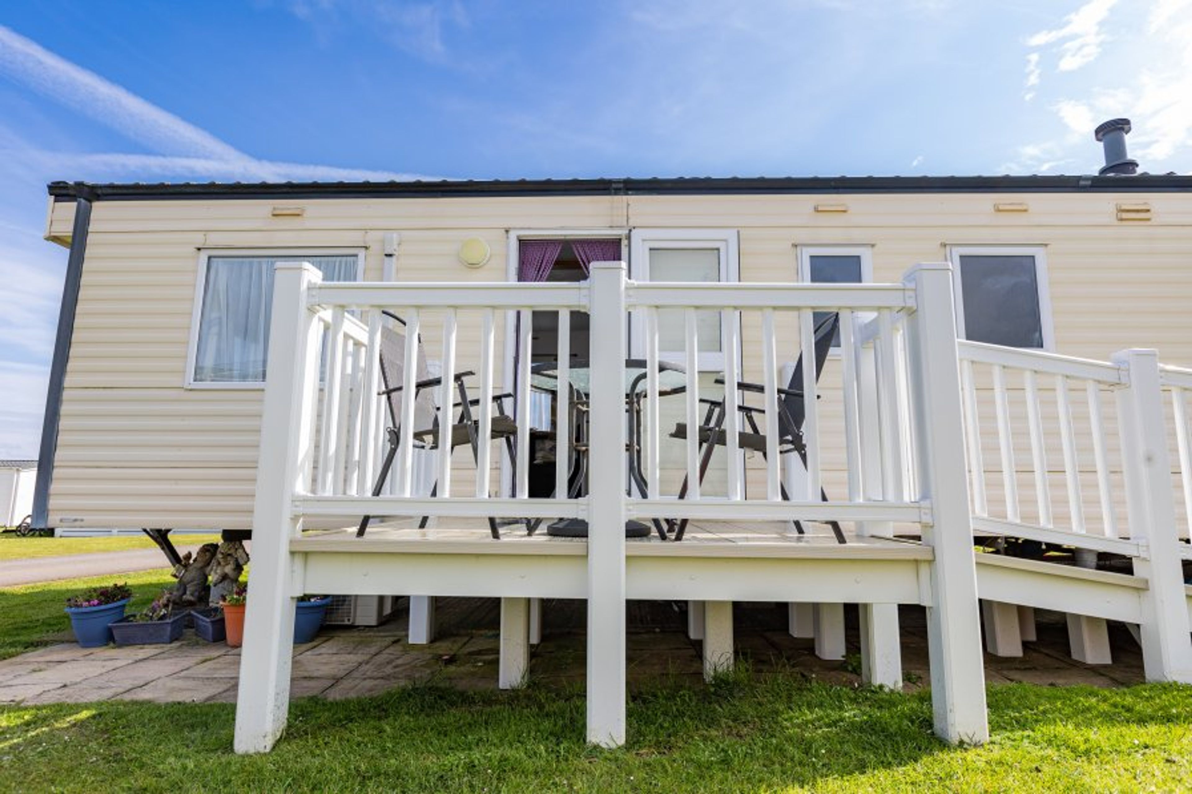 Three bedroom caravan with shower room, separate toilet and fully equipped kitchen. Outside ramped decking with furniture to sit and admire the view.