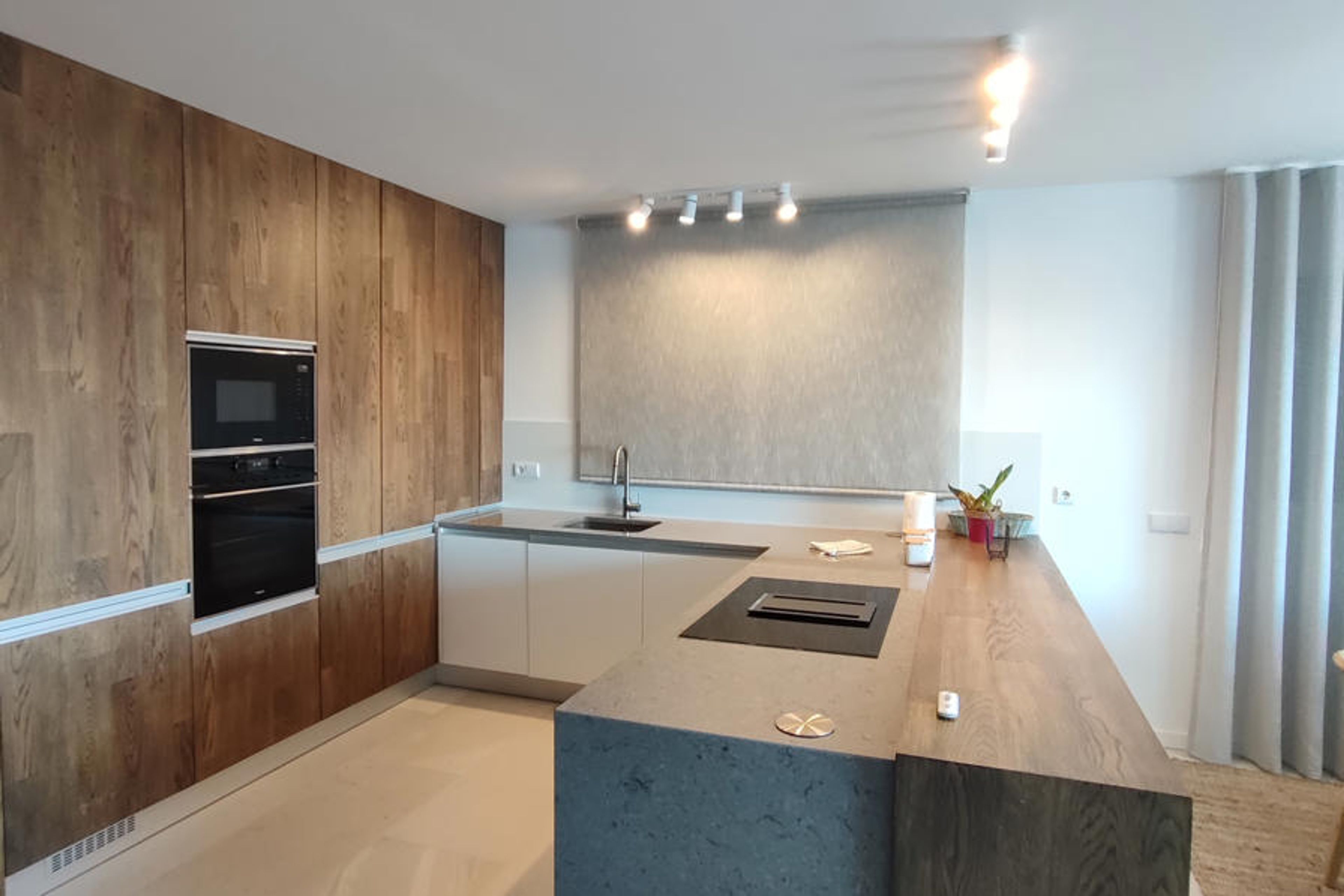 The open plan kitchen, of induction, is equipped with refrigerator, microwave, oven, freezer, dishwasher, dishes/cutlery, kitchen utensils, coffee machine, toaster and kettle.