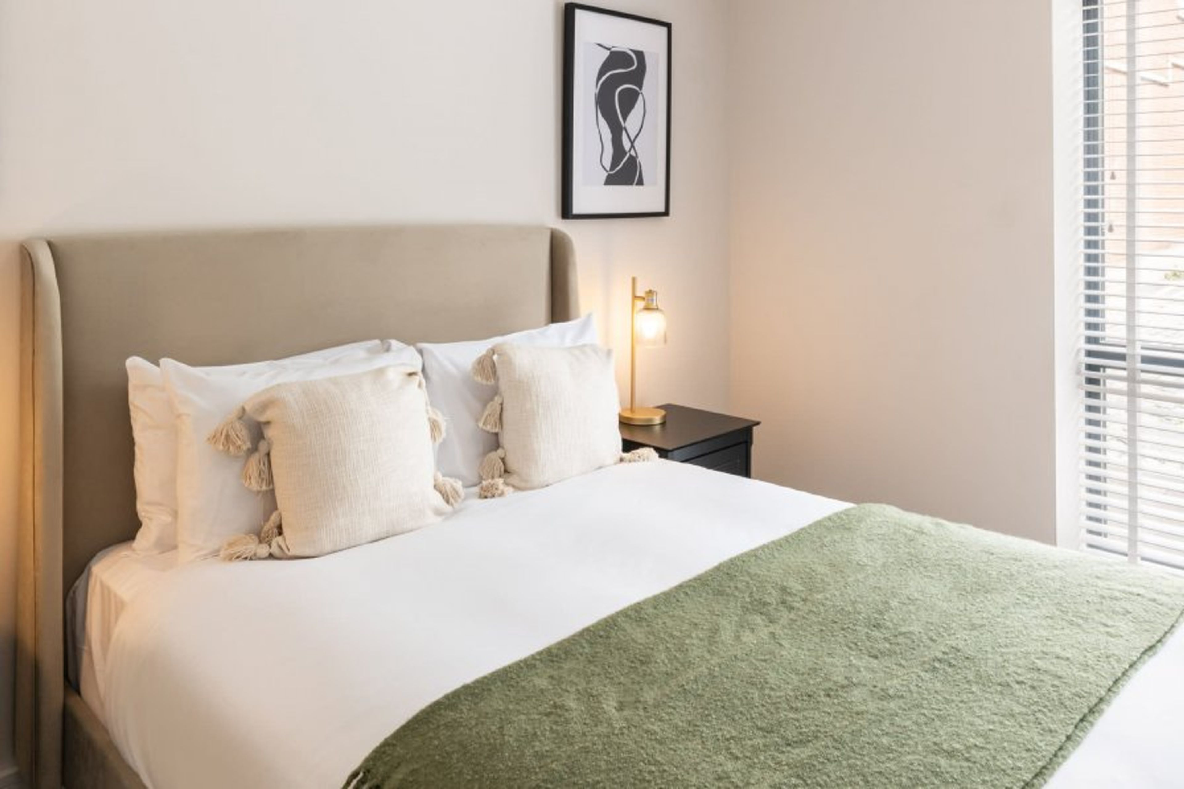 Upon entering the property, you'll find the first bedroom to the right as you enter. Featuring a comfy double bed and a neutral colour scheme, this space is perfect to retreat to after a busy day of exploring Liverpool. You'll have plenty of space to unpack your belongings as there is a chest of drawers, hanging space and bedside tables.
