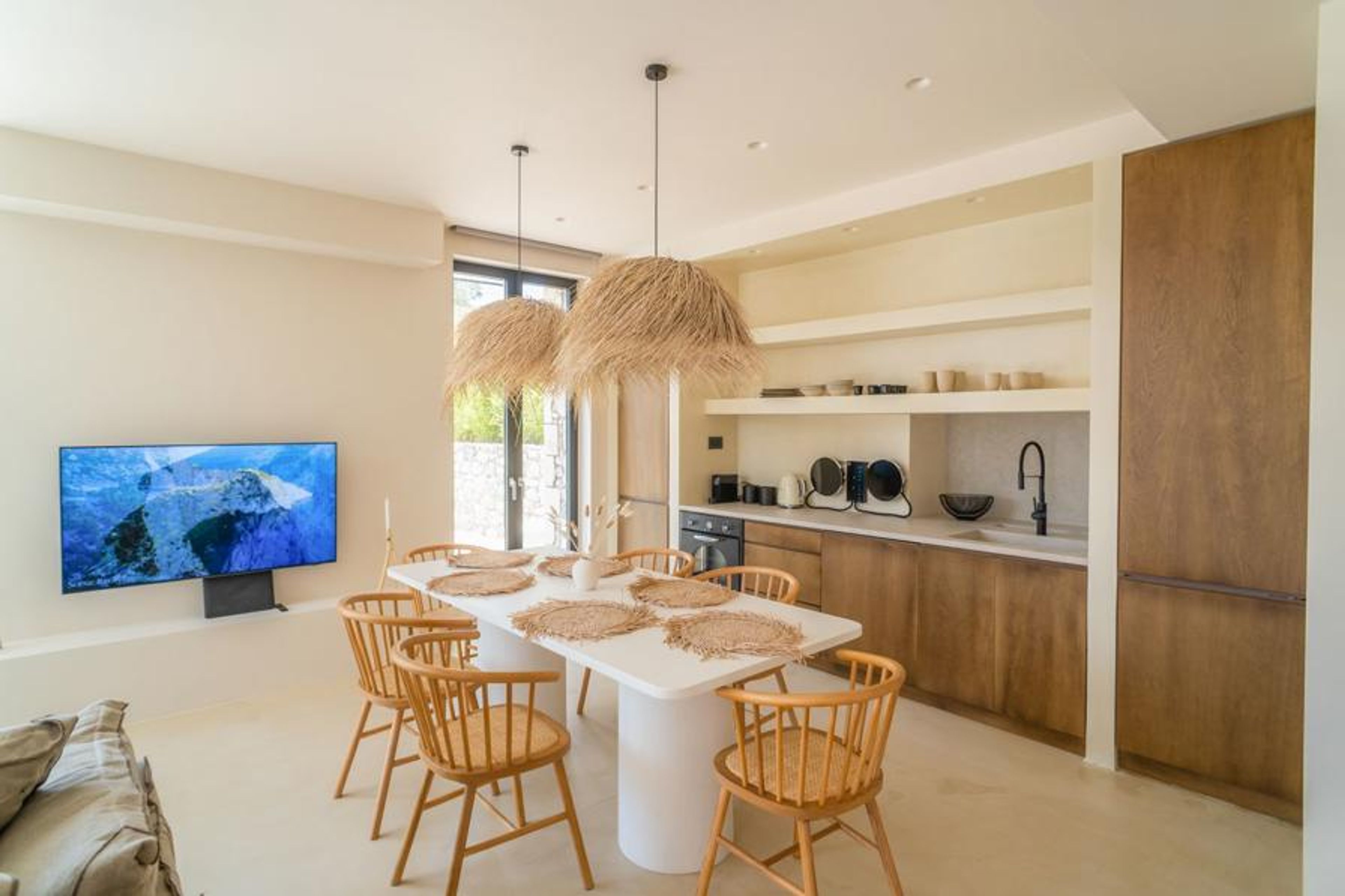 The villa boasts two beautifully designed bedrooms, each with an ensuite bathroom. These private sanctuaries provide a restful haven at the end of the day, with large windows that let the gentle morning light stream in. Every corner of Villa Kastro has been thoughtfully designed, showcasing meticulous architectural details that enhance the overall sense of space and tranquillity.