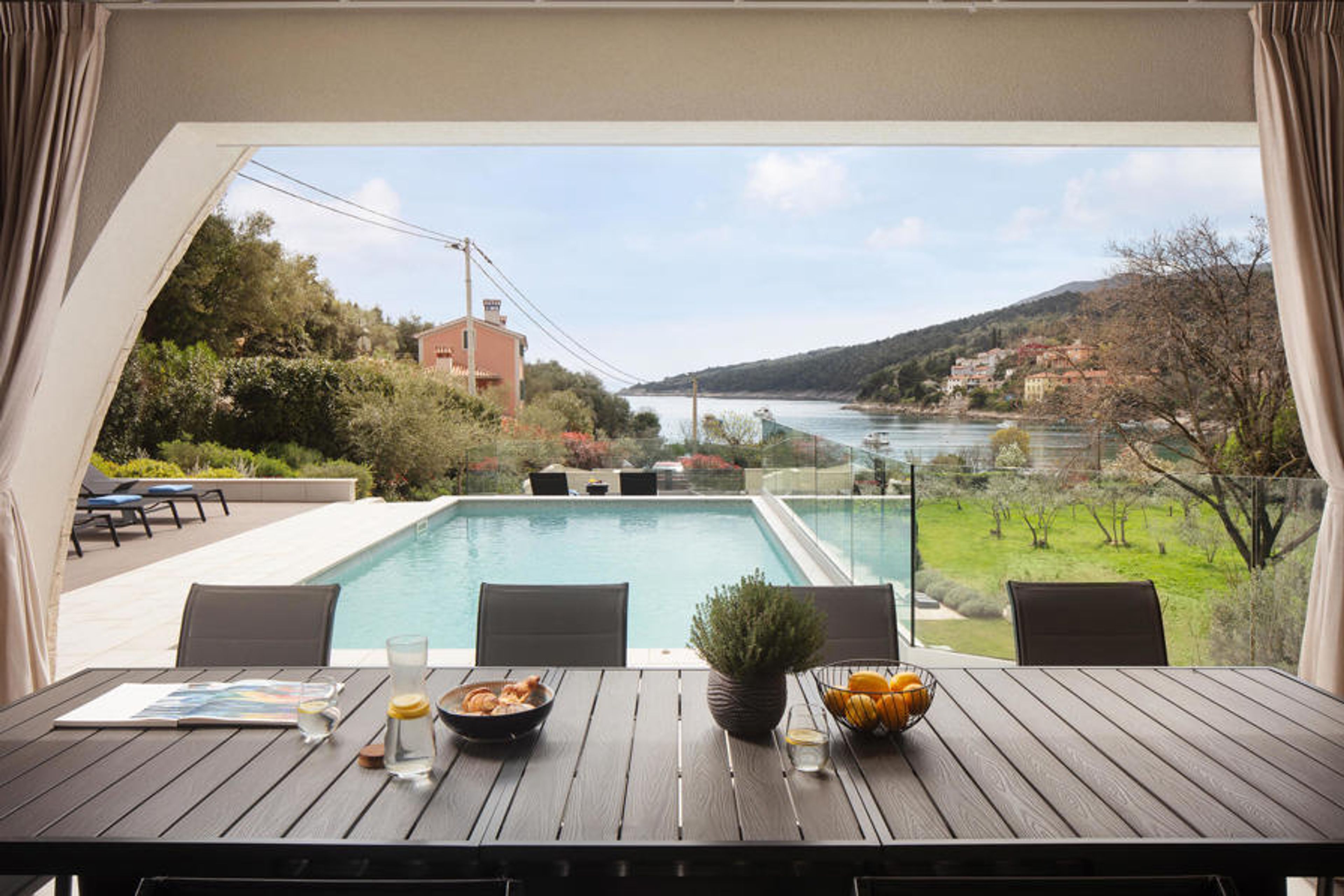 This modern house in Sveta Marina welcomes you with a fantastic location right by the sea.