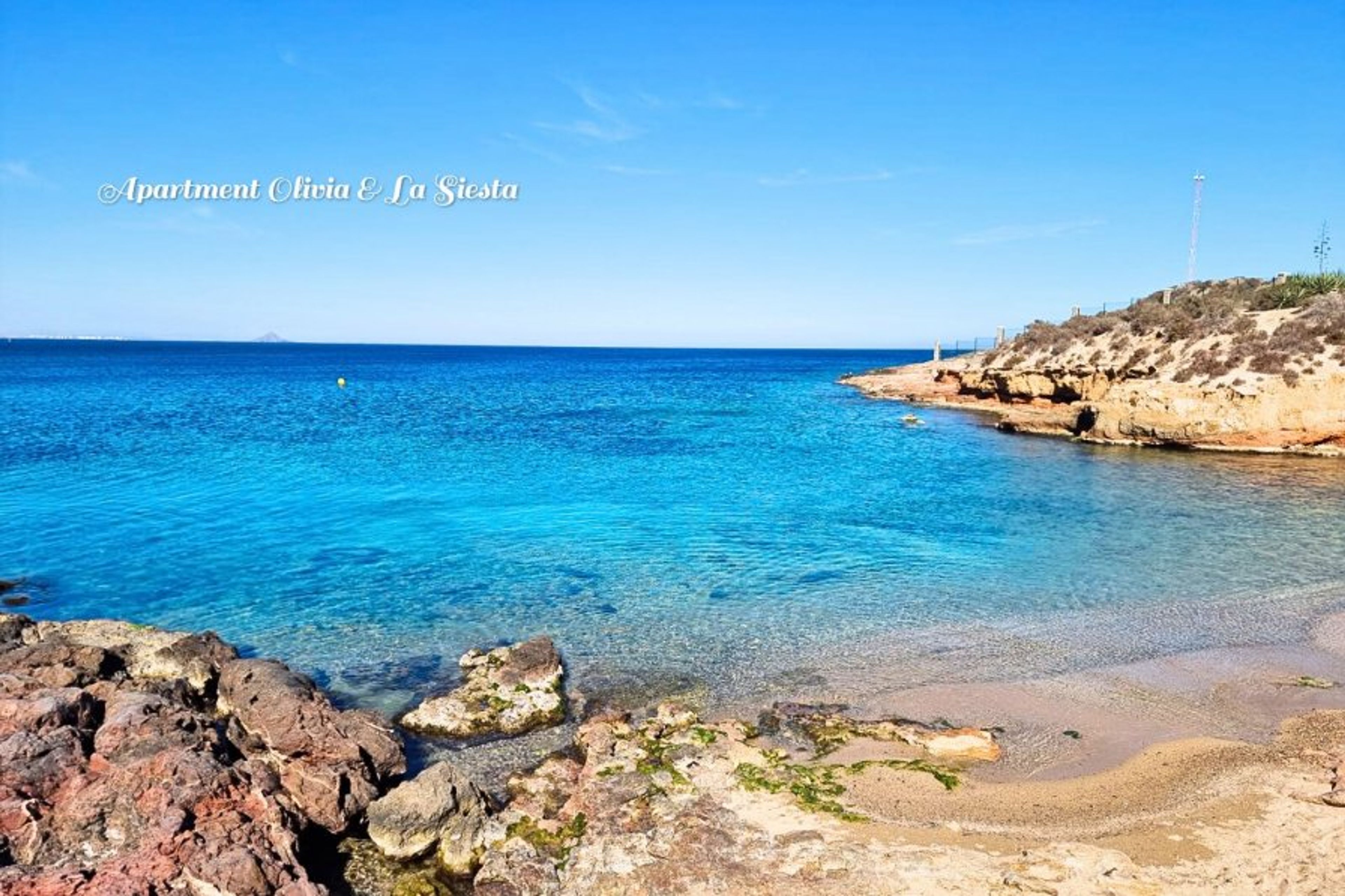 Our 2 bed apartment is located in a quiet place yet very close to all amenities and only 4 minutes walk to the lovely sandy beach.