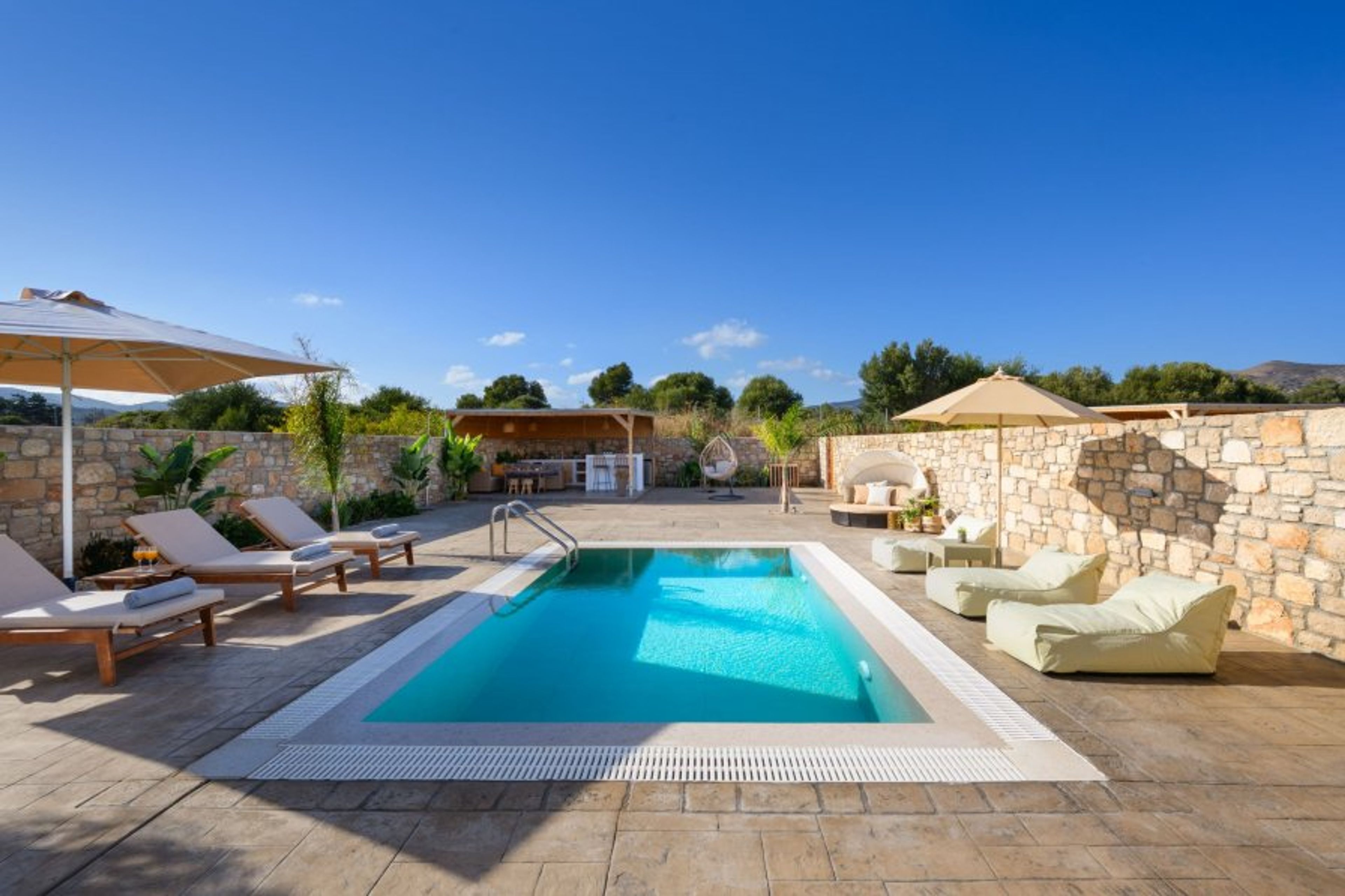 Amora Pool Villas in Gennadi, Rhodes, offer two beautiful villas, each accommodating up to 6 guests. Each villa features a private pool, modern amenities, and comfortable living spaces. Enjoy a relaxing stay in a serene location, perfect for families or groups seeking a luxurious and peaceful getaway.