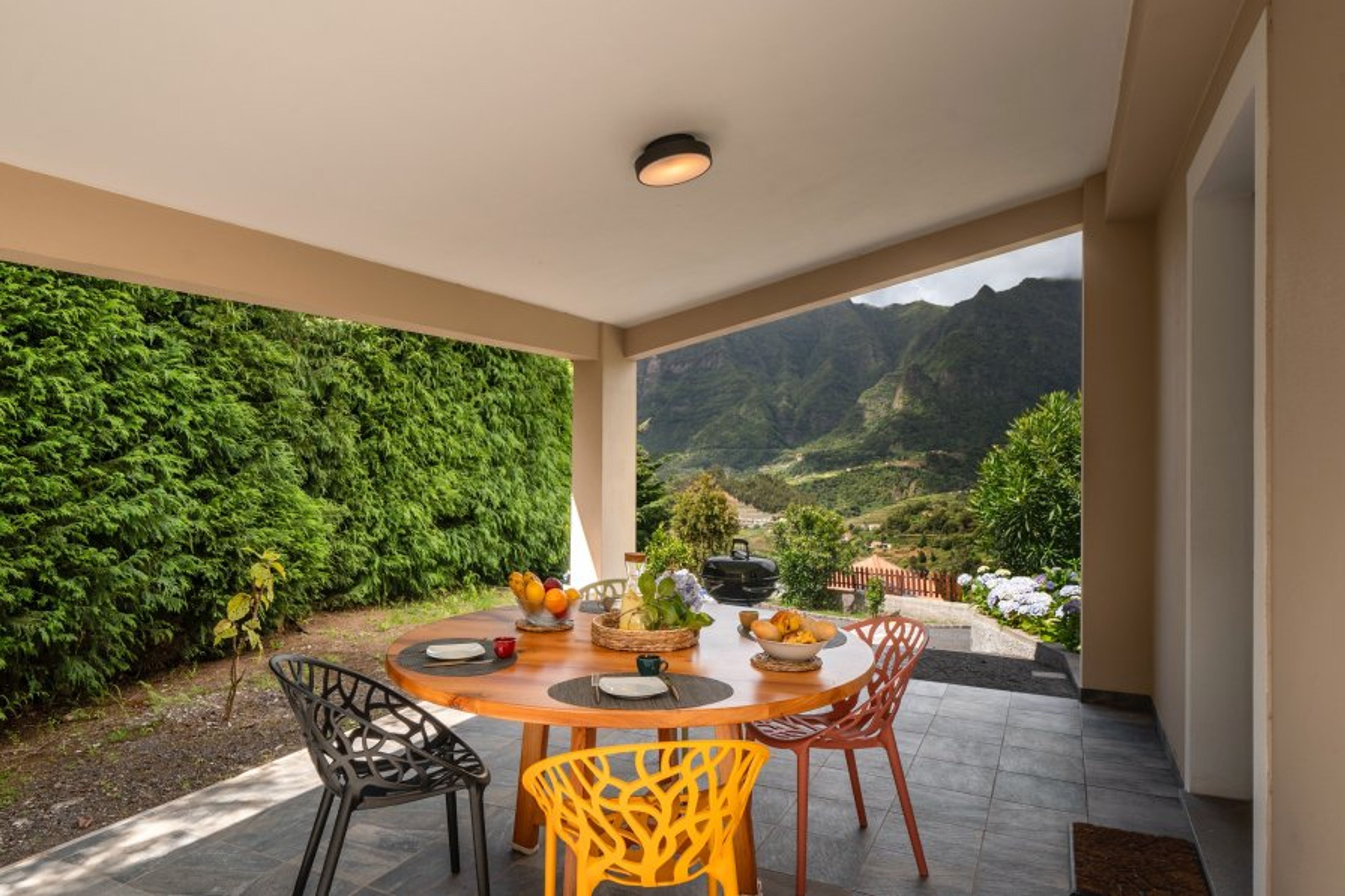 This opens to the covered front veranda with outdoor seating furniture and a couple of sun-loungers – the perfect place to experience a little of the Madeira countryside and mountains with those amazing views.