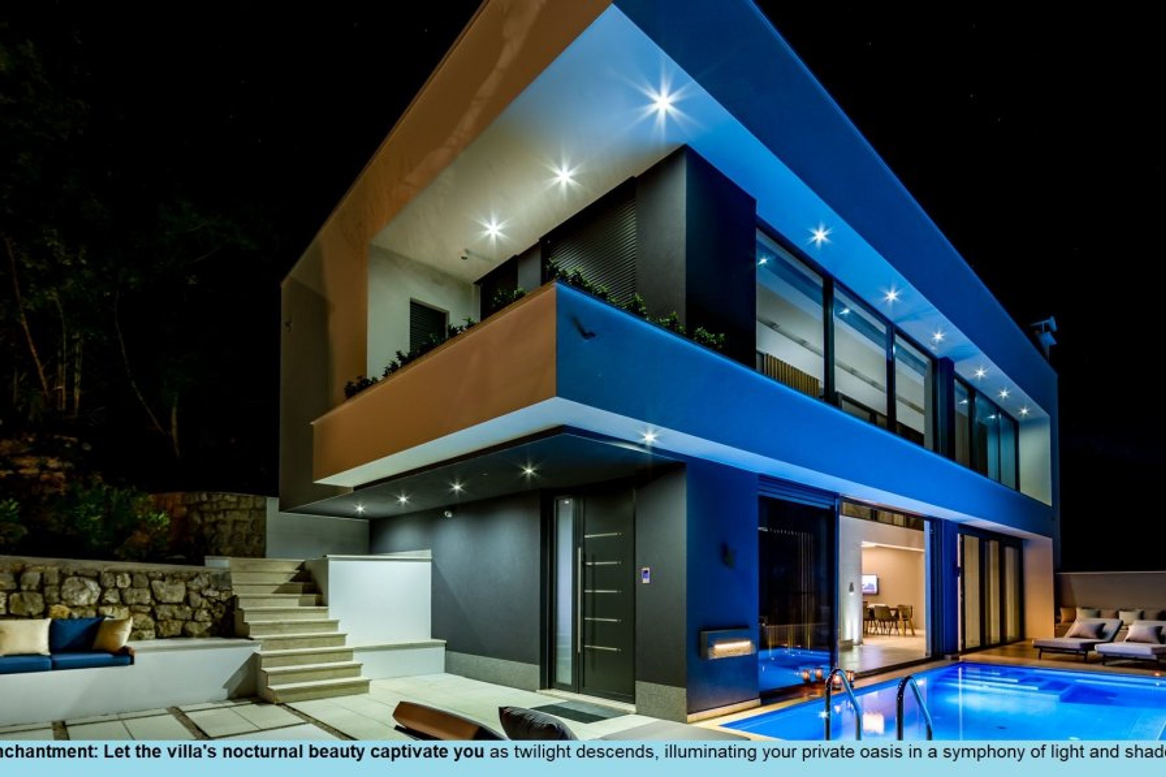 This newly built luxury villa, set amid lush greenery, boasts a heated infinity pool with breathtaking Sea views. Indulge in the hot tub, sauna, and alfresco BBQ dining on the expansive terrace.