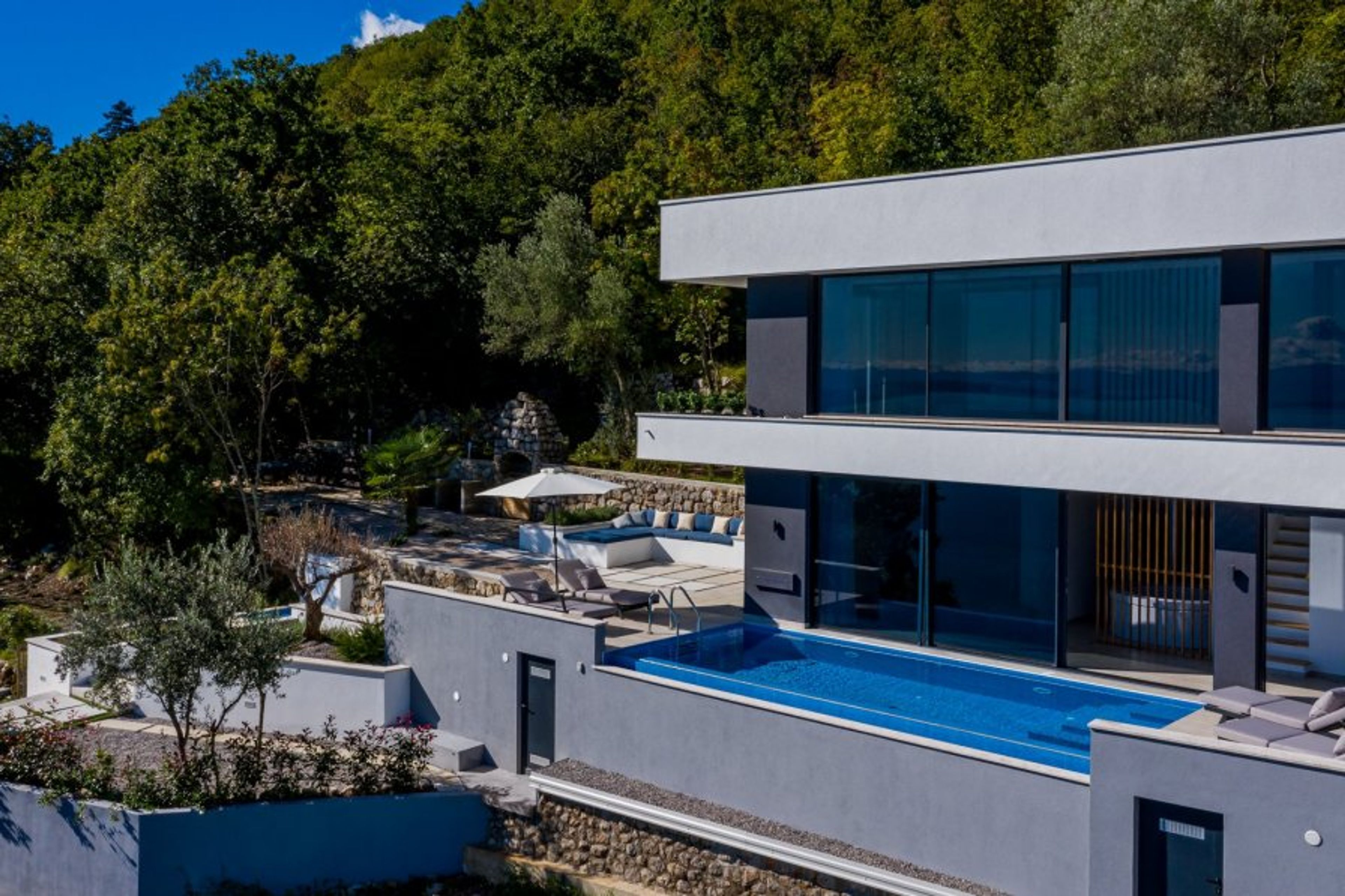 Newly constructed in 2020, this villa is a perfect blend of modern elegance and serene natural beauty. Surrounded by lush greenery and boasting stunning panoramic views of the Gulf of Quarnaro, this villa is your private paradise.