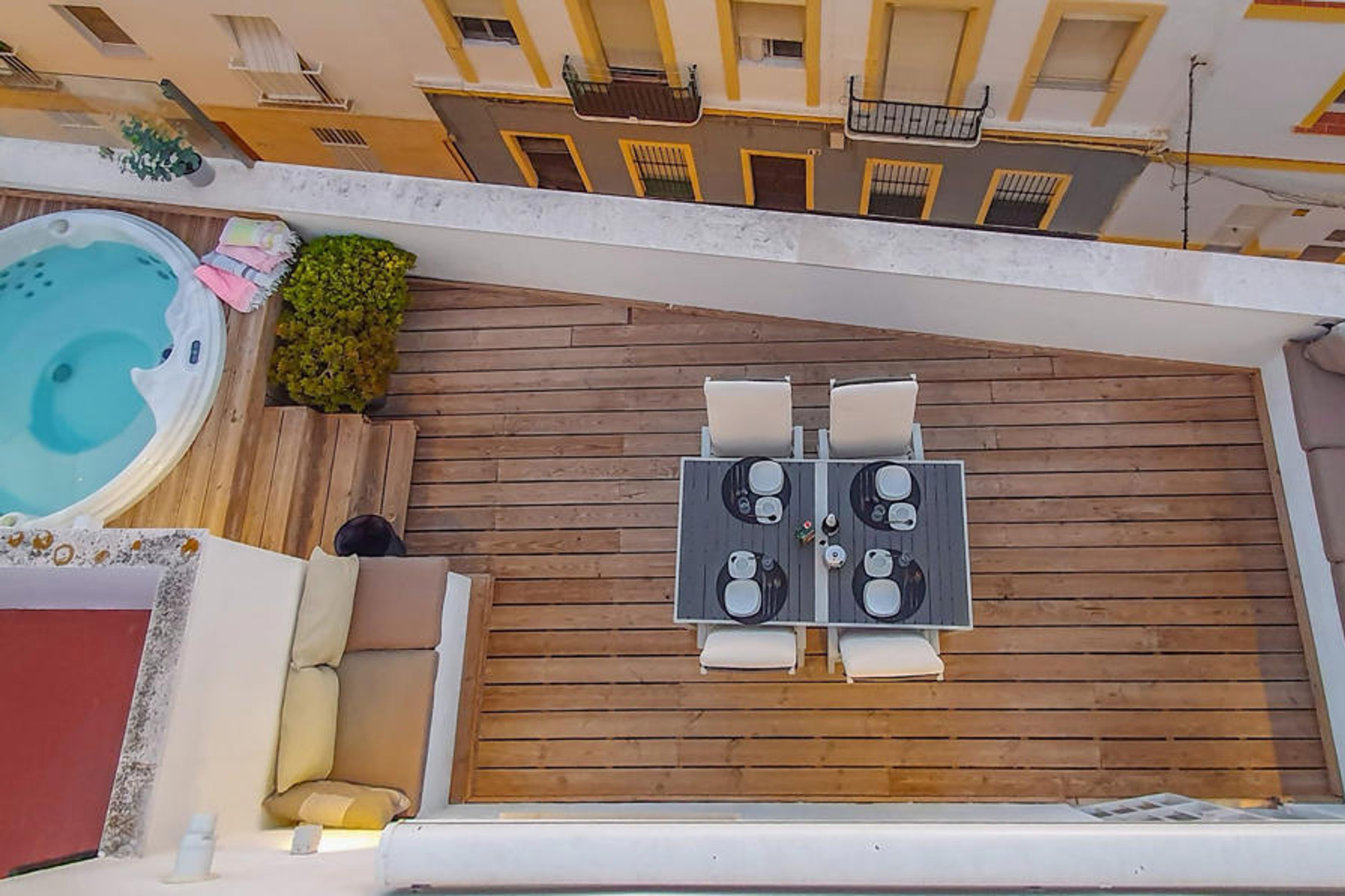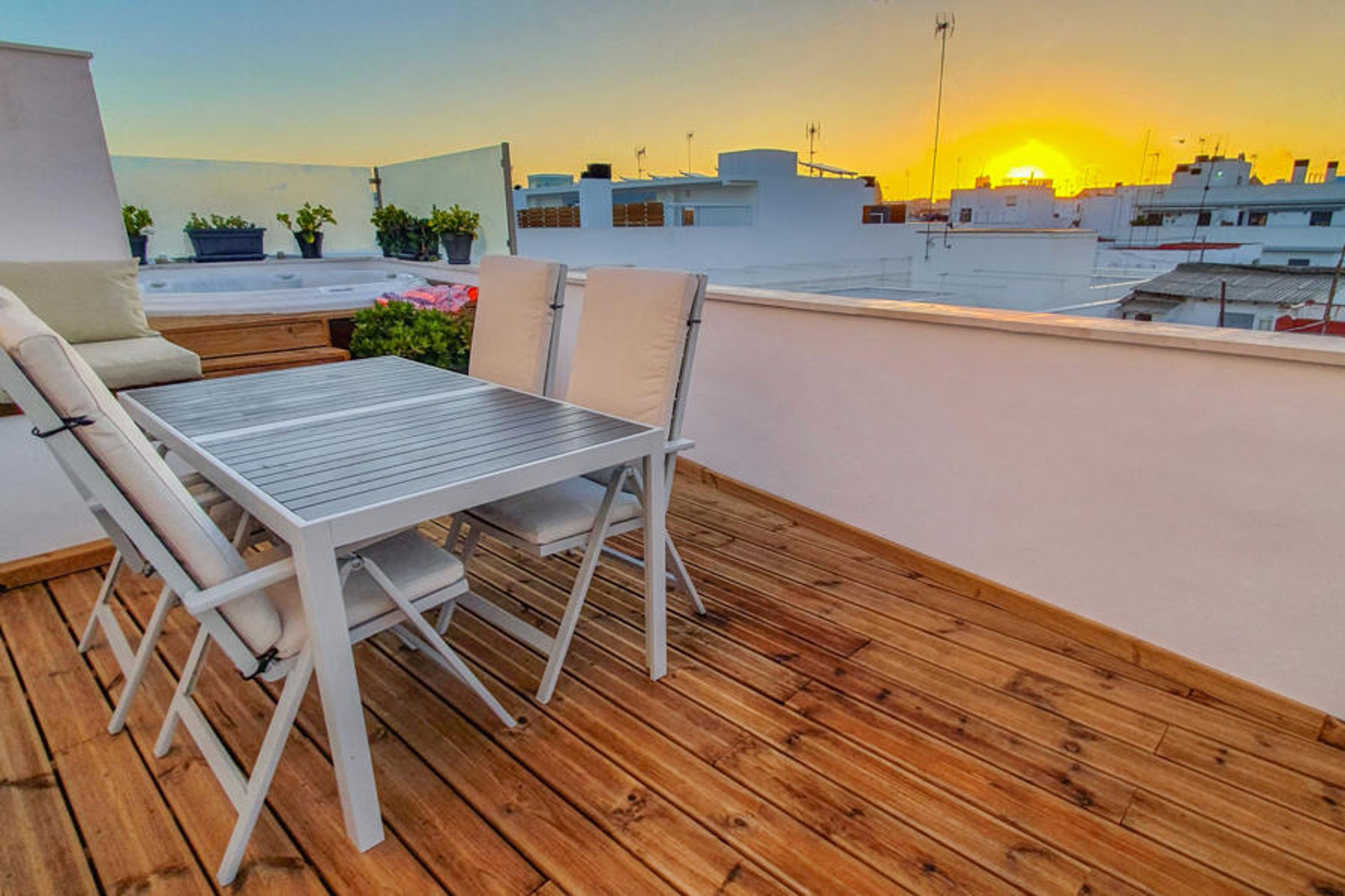 Fantastic 83m2 roof penthouse with 30 m2 terrace with jacuzzi (hot tub). Atico Paraguay has stunning views from the sunny terrace that overlook the city with view on the Cathedral and Tore Tavira. The location on La Caleta is just a one minute walk to the beach (playa de la Caleta), restaurants and shops. Everything is close by.
