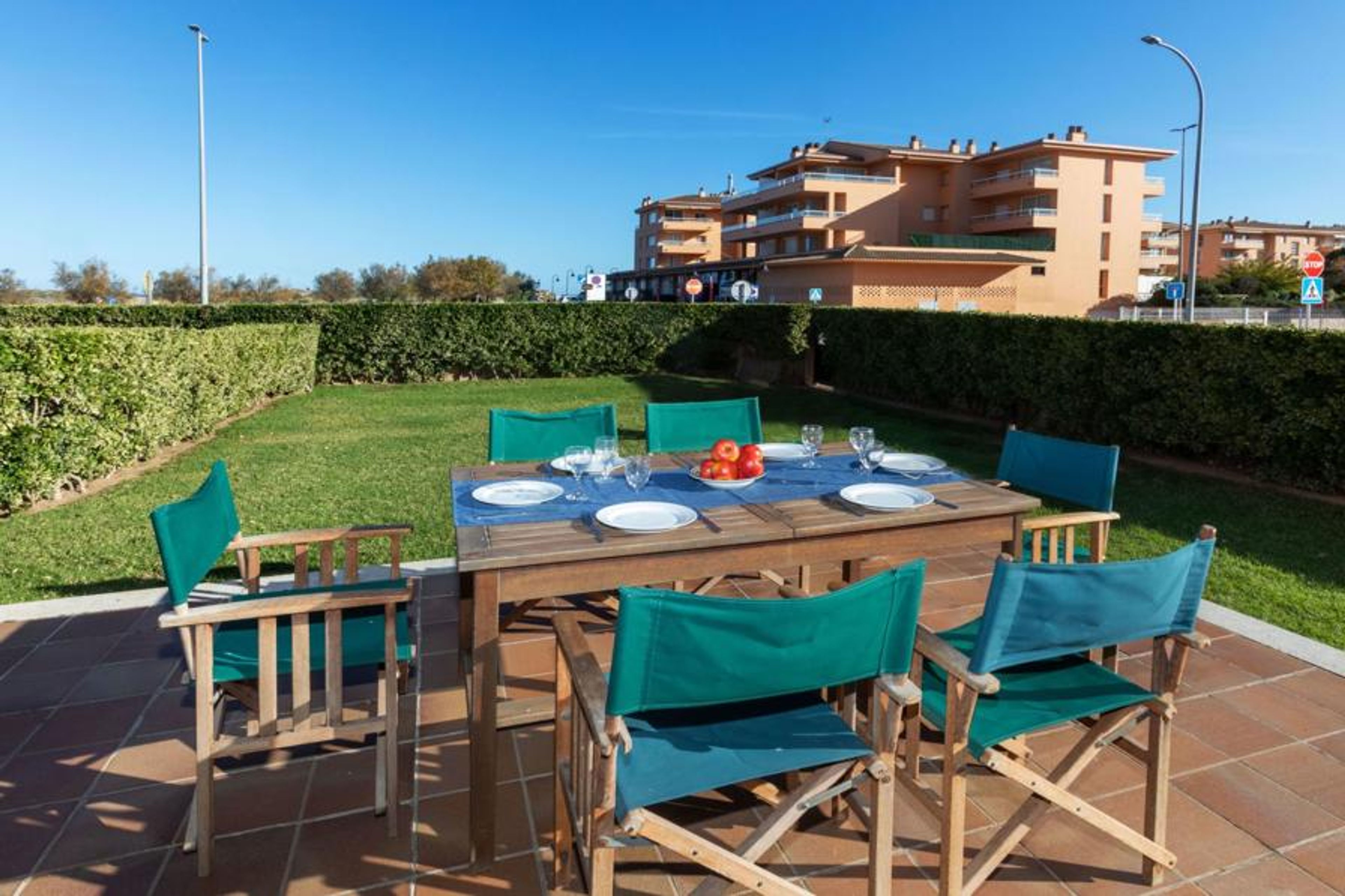 Playa del Grau 6 km from Pals centre: Apartment block "Port Pals", 3 storeys. 100 m from the sea. For shared use: natural state property, garden, swimming pool round (150 m2, depth 24 - 190 cm, seasonal availability: 15.May. - 15.Oct.). In the house: lift. Bus stop 7 km, sandy beach "Playa de Pals" 100 m. Golf course (18 hole) 1.5 km. Nearby attractions: Illes Medes 15 km. The owner does not accept any groups. The owner does not accept any youth groups. Please note: Additional accommodations can be booked. Neighbourhood highly sensitive to noise. Quietness and good behaviour expected.