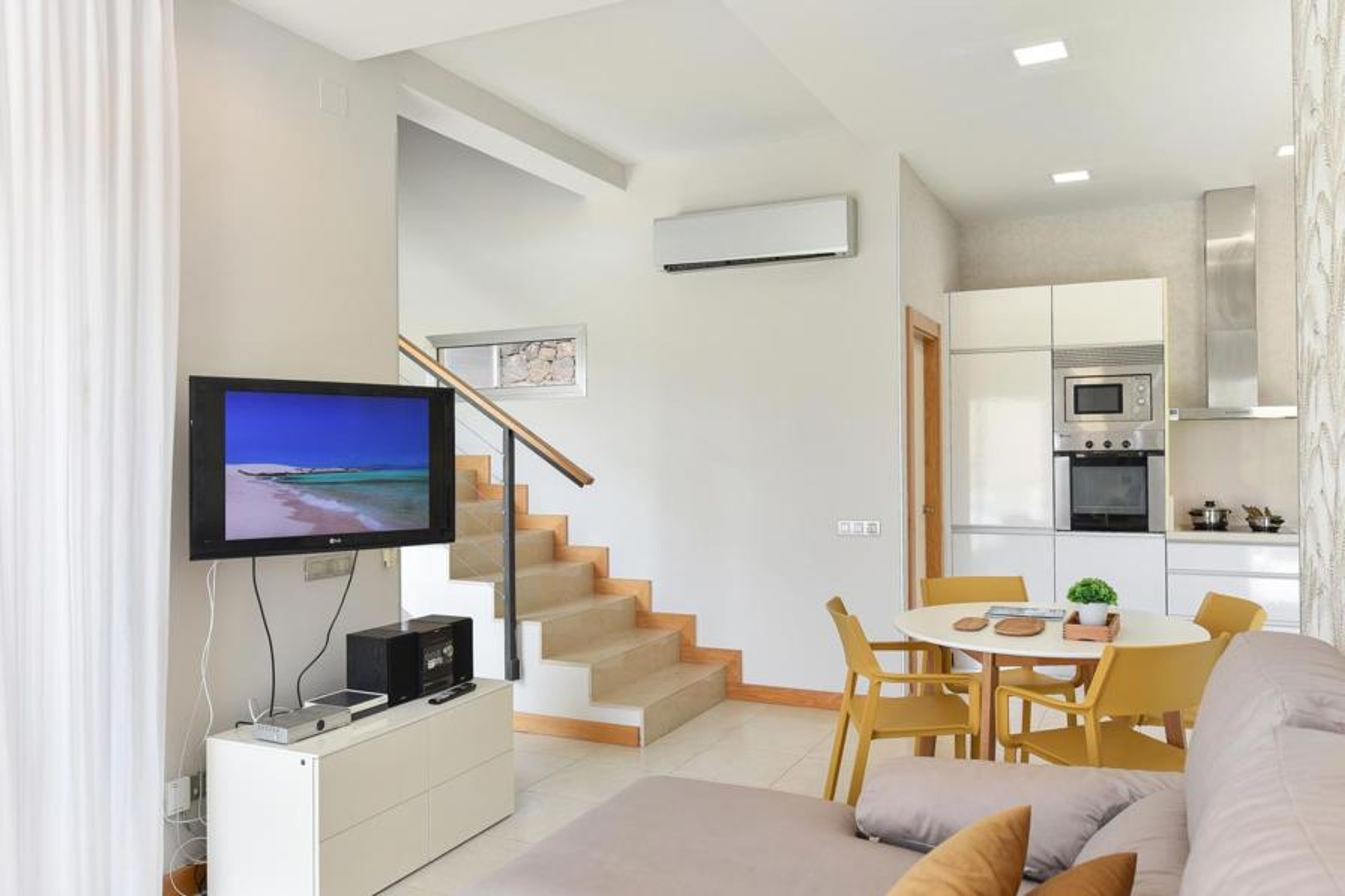 "Vista Golf 10", 3-room house 105 m2 on 2 levels. Comfortable and modern furnishings: living room with digital TV and air conditioning. Exit to the patio, to the swimming pool. 1 room with 2 beds and air conditioning. Exit to the patio, to the swimming pool. Kitchen-/living room (oven, dishwasher, 3 ceramic glass hob hotplates, toaster, kettle, microwave, freezer, electric coffee machine) with dining table. Bath/bidet/WC. Upper floor: 1 room with 1 french bed and air conditioning. Exit to the balcony. Shower/bidet/WC. Patio. Terrace furniture, balcony furniture, barbecue, deck chairs. View of the garden and the forest. Facilities: washing machine, safe, iron, children's high chair, baby cot for up to 2 year olds, hair dryer. Internet (WiFi, free). Parking (1 car). Please note: non-smoking house. Maximum 1 pet/ dog allowed. 2023-T5471 // Reg. Nr.: ESFCTU0000350120004894840000000000000VV-35-1-00196592