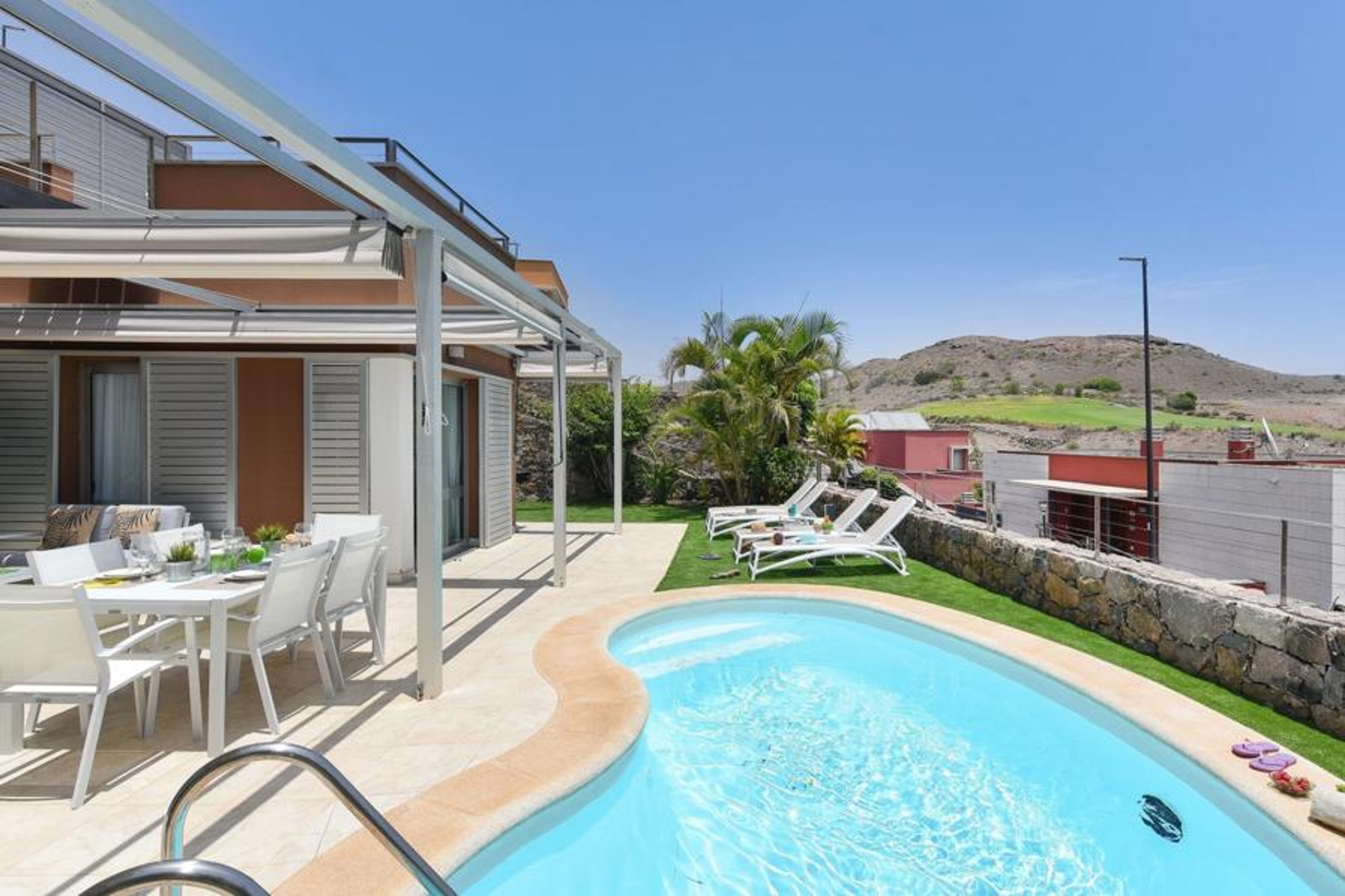 Modern, comfortable villa "Vista Golf 10". In the centre of Salobre Golf Resort, outside the resort Maspalomas, in a secluded, quiet position. Private: garden (fenced) with lawn, swimming pool kidney shaped (5 x 3 m, depth 140 - 140 cm, seasonal availability: 01.Jan. - 31.Dec.). Outdoor shower, barbecue. In the house: sun terrace, air conditioning. Parking on the premises, public parking on the road. Supermarket 400 m, restaurant 600 m, bus stop "Las Crucitas" 20 km. The owner does not accept any youth groups. Please note: airfield 25 km from the property. Neighbourhood highly sensitive to noise. Quietness and good behaviour expected.
