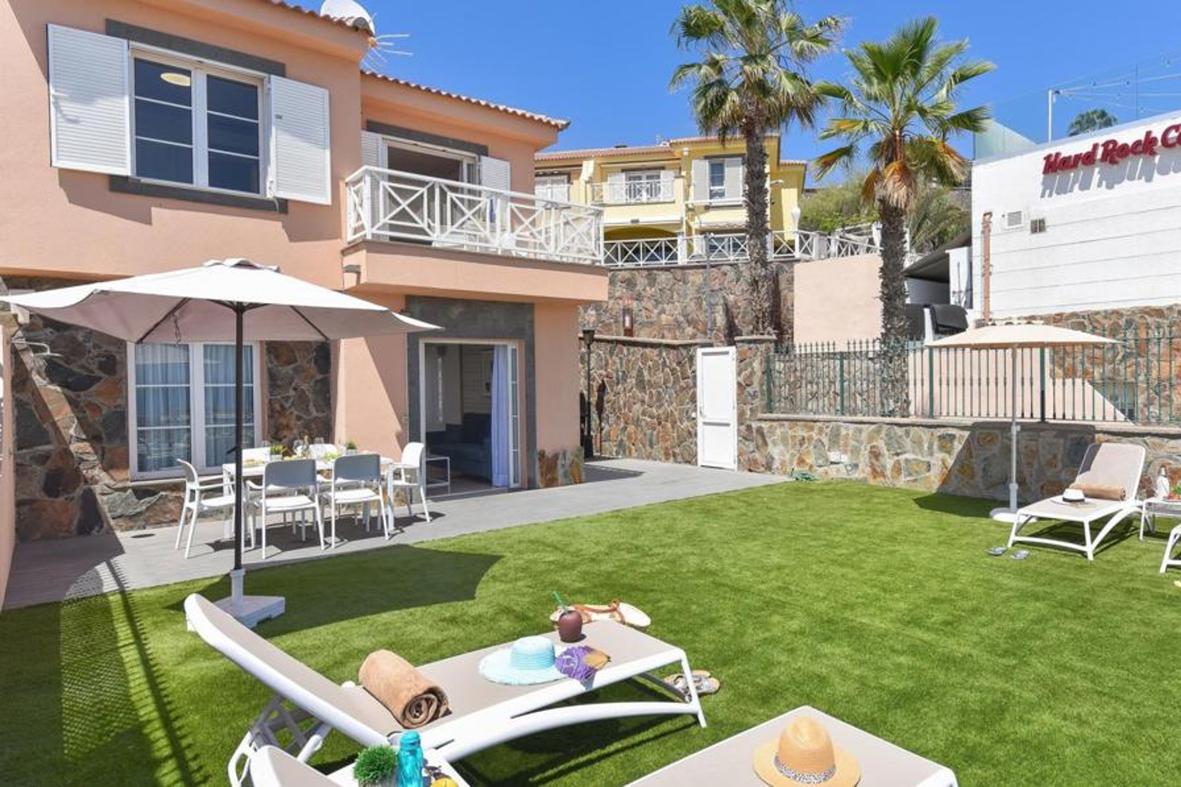 Modern, comfortable terraced house "Santa Ana 25". In the centre of Playa del Inglés, in a central, quiet position in the residential district, 100 m from the sea, 100 m from the beach. For shared use: swimming pool angular (16 x 8 m, seasonal availability: 01.Jan. - 31.Dec.). Outdoor shower. Private: garden (fenced) with lawn. Barbecue. In the house: sun terrace, air conditioning. Parking on the premises, public parking on the road. Bus stop "Shopping Center Cita" 600 m. The owner does not accept any youth groups. Neighbourhood highly sensitive to noise. Quietness and good behaviour expected.
