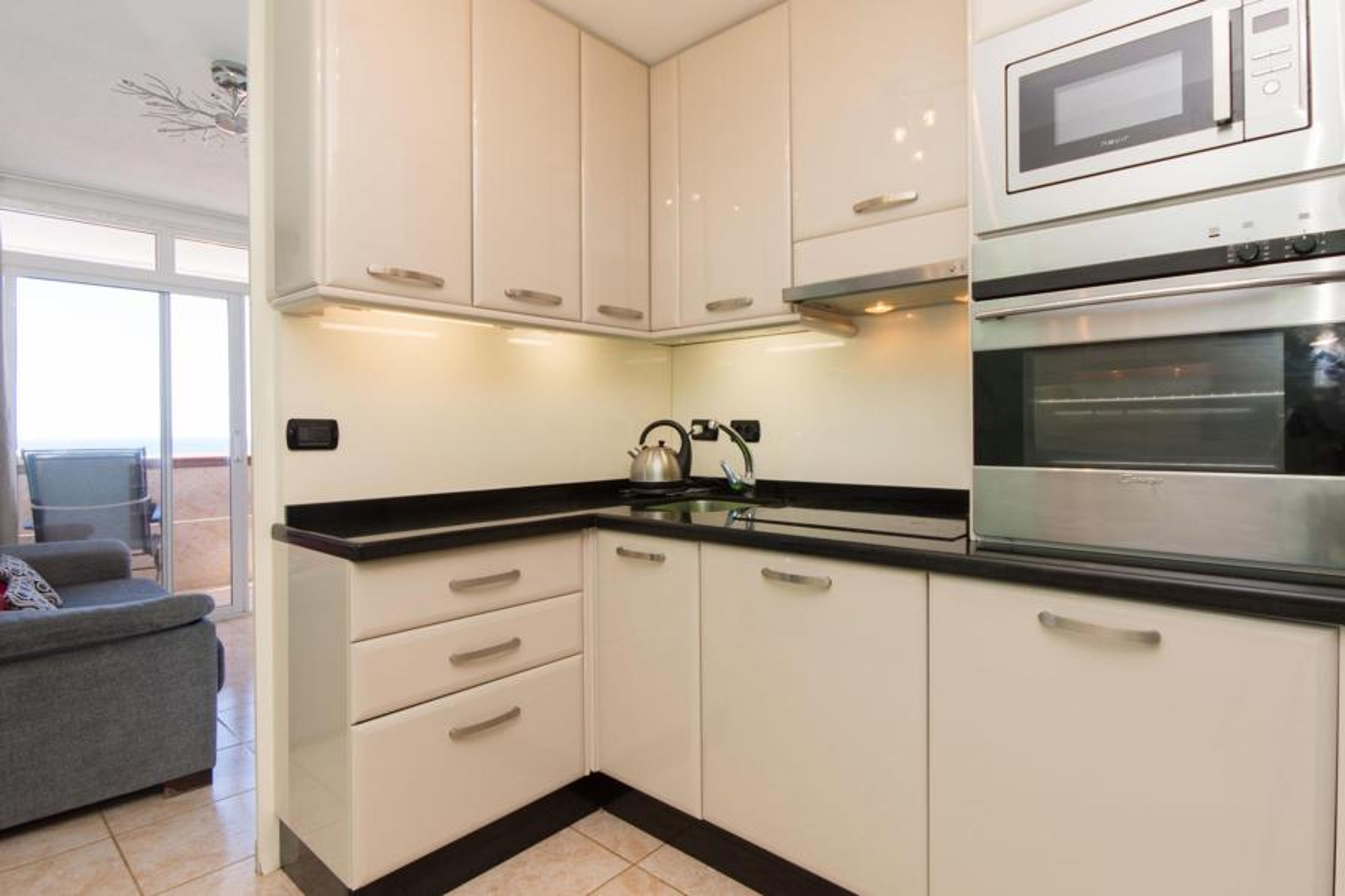 3-room apartment 60 m2 on 8th floor. Practical furnishings: living/dining room with satellite TV. Exit to the terrace. 1 room with 1 french bed (135 cm, length 190 cm), shower/WC. 1 room with 1 french bed (135 cm, length 190 cm). Open kitchen (oven, dishwasher, 4 ceramic glass hob hotplates, toaster, kettle, microwave, electric coffee machine). Shower/WC. Balcony 8 m2. Terrace furniture. View of the sea. Facilities: washing machine, iron, children's high chair, baby cot, hair dryer. Internet (WiFi, free). O00006501E1900040926 // Reg. Nr.: ESFCTU0000380160001773790000000000000VV-38-4-00897105
