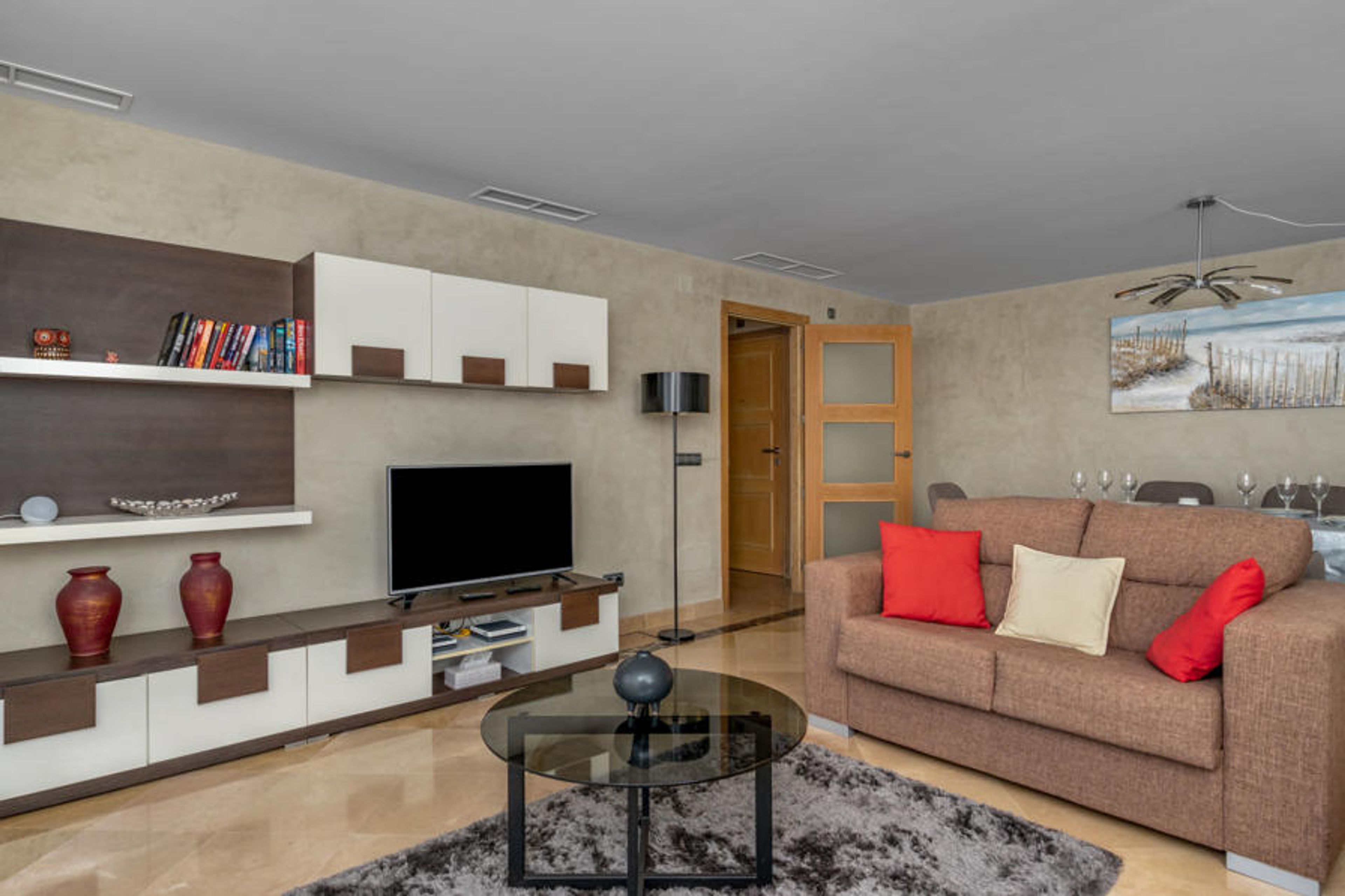 This 2 bedroom apartment with shared pool is located in Manilva and sleeps 4 people. It has air conditioning, a sauna and sea views. The apartment is within walking distance of a beach.