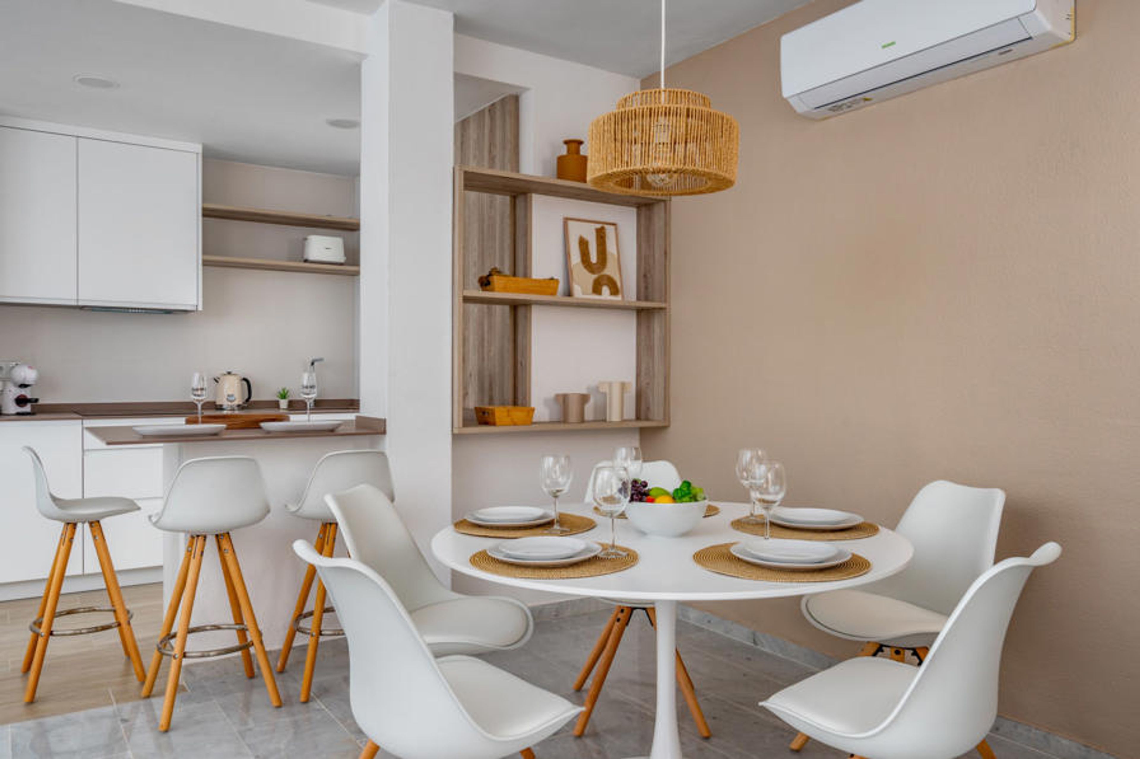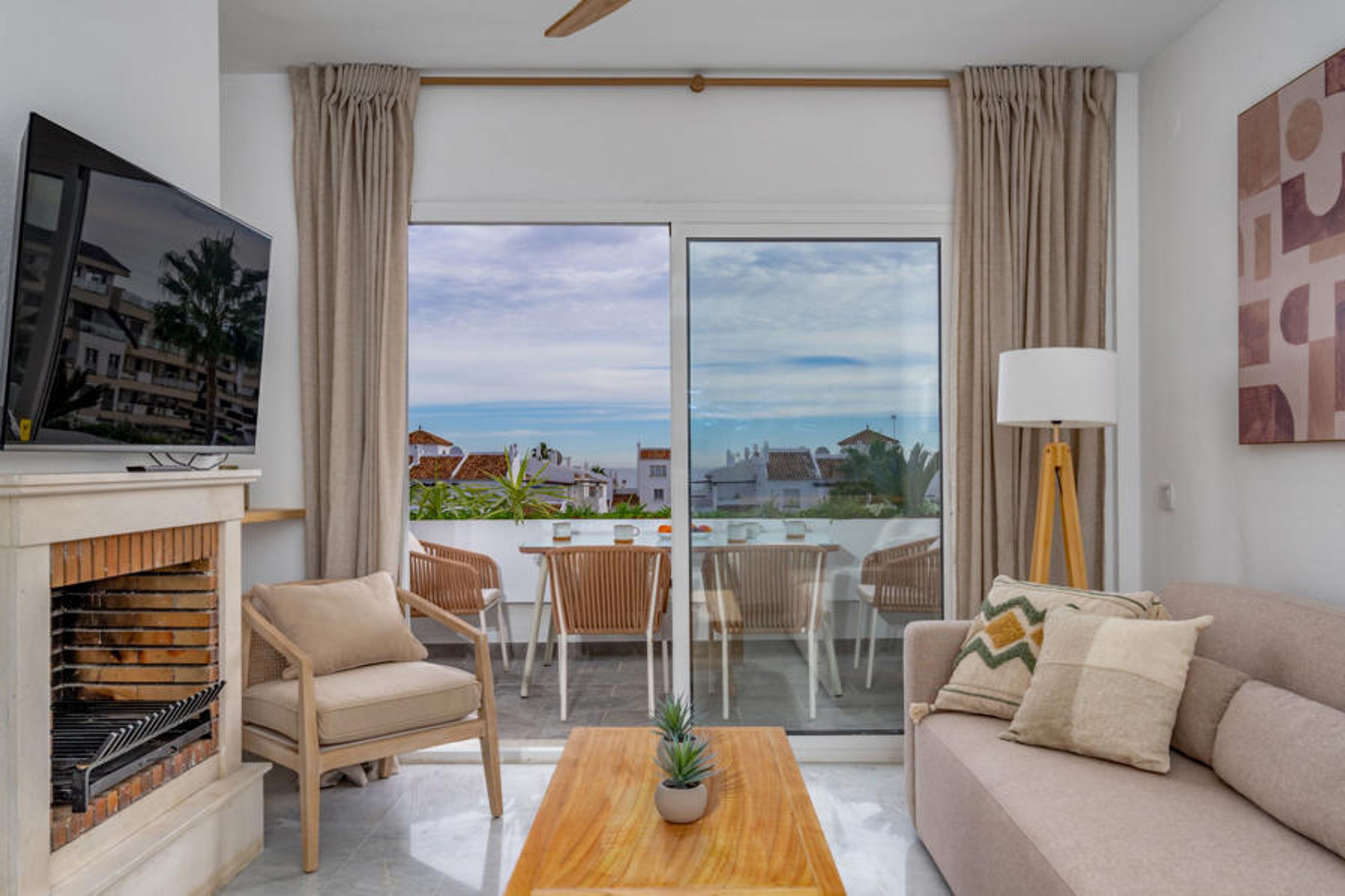 "Ático Los Pelicanos", 3-room penthouse 74 m2, south facing position. Object suitable for 4 adults. Bright, fully renovated in 2023, very comfortable and modern furnishings: living/dining room with open-hearth fireplace (only for decoration), dining table, TV, international TV channels, flat screen, air conditioning and forced-air heating. Exit to the terrace. 1 room with 2 beds (90 cm, length 190 cm), air conditioning, fan and forced-air heating. 1 room with 1 french bed (180 cm, length 200 cm), bath/shower/WC, air conditioning, fan and forced-air heating. Exit to the terrace. Open kitchen (oven, dishwasher, 4 ceramic glass hob hotplates, toaster, kettle, microwave, electric coffee machine) with bar. Bath/shower/WC. Terrace. Terrace furniture. Beautiful distant view of the sea. Facilities: washing machine, iron, children's high chair, baby cot for up to 2 year olds, hair dryer. Internet (WiFi, free). Parking space n 305 (1 car) at the house. Please note: suitable for families. Non-smokers only. No lift. VUT/MA/71063 // Reg. Nr.: ESFCTU0000290400000451630000000000000000VUT/MA/710638