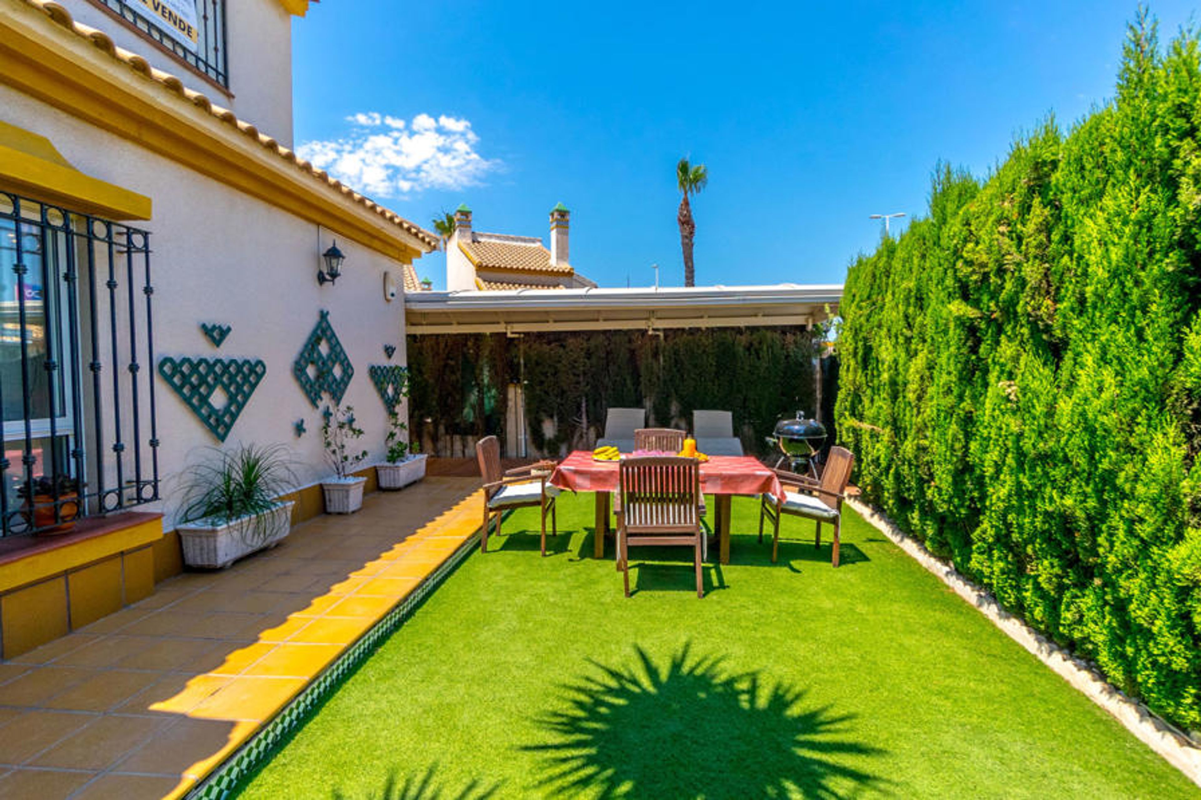 Cosy, comfortable semi-detached house "Zenia Golf", 2 storeys. 5 km from the centre of Dehesa de Campoamor, 3 km from the centre of Punta Prima, 1 km from the sea, 1 km from the beach, on a main road. For shared use: property (fenced), beautiful garden, lawn for sunbathing, swimming pool (20 x 12 m, depth 60 - 200 cm, seasonal availability: 01.Jan. - 31.Dec.) with internal staircase. Children's pool, outdoor shower. Private: property (fenced), garden. Barbecue. Grocery, supermarket 180 m, shopping centre 450 m, restaurant, café 200 m, bus stop "La Zenia" 350 m, railway station "Orihuela" 28 km, sandy beach "Playa La Zenia" 1 km. Sports harbour 3 km, marina 3 km, golf course (18 hole) 5 km. The owner does not accept any youth groups.