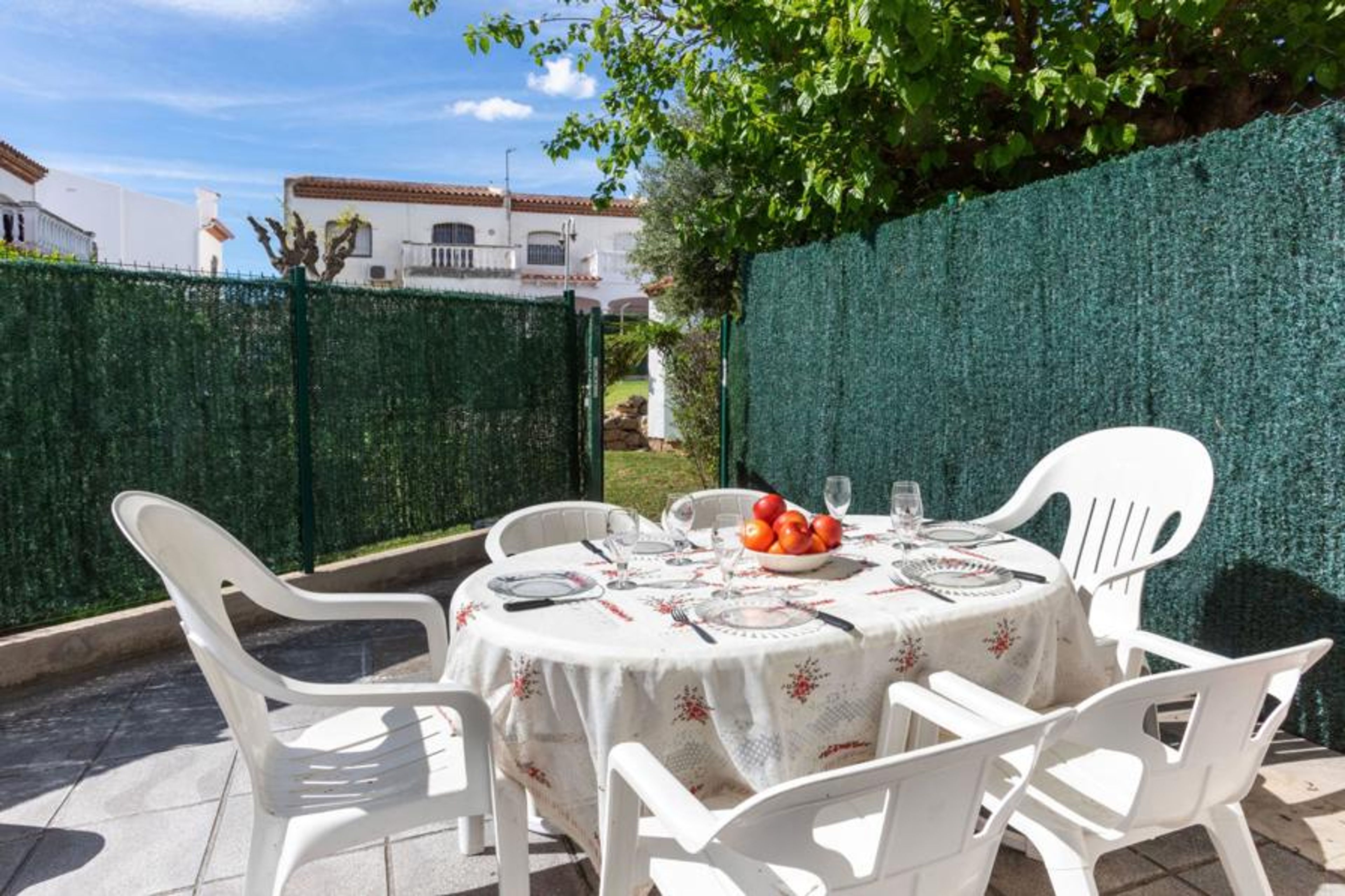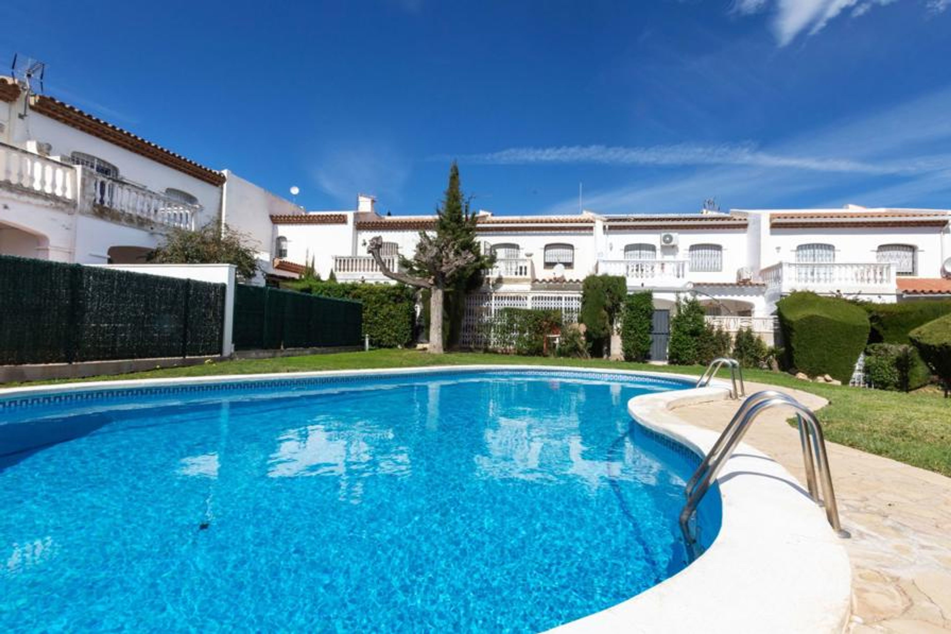 MIAMI PLAYA: Cosy, comfortable terraced house "Yoli". In the resort 1 km from the centre of Miami-Platja, in a quiet position, 1.7 km from the sea, 1.7 km from the beach. For shared use: large garden with lawn, swimming pool kidney-shaped (9 x 5 m, depth 80 - 190 cm, seasonal availability: 01.Jan. - 31.Dec. pool opening hours: 10:00-21:00) with internal staircase. Outdoor shower, pool maintenance by the owner/gardener. Private: terrace (20 m2), garden furniture, barbecue, parking at the house. Supermarket 210 m, restaurant, café 250 m, bus stop 800 m, railway station "Hospitalet" 3 km, swimming bay 1.2 km. Golf course (13 hole) 3 km. Nearby attractions: parque Portaventura 28 km, parque acuático Aquopolis 31 km, parque Natural del Delta del Ebro 53 km, Tarragona 37 km, Reus 30 km, Barcelona 132 km. Please note: car recommended. Groups of teenagers on request only.