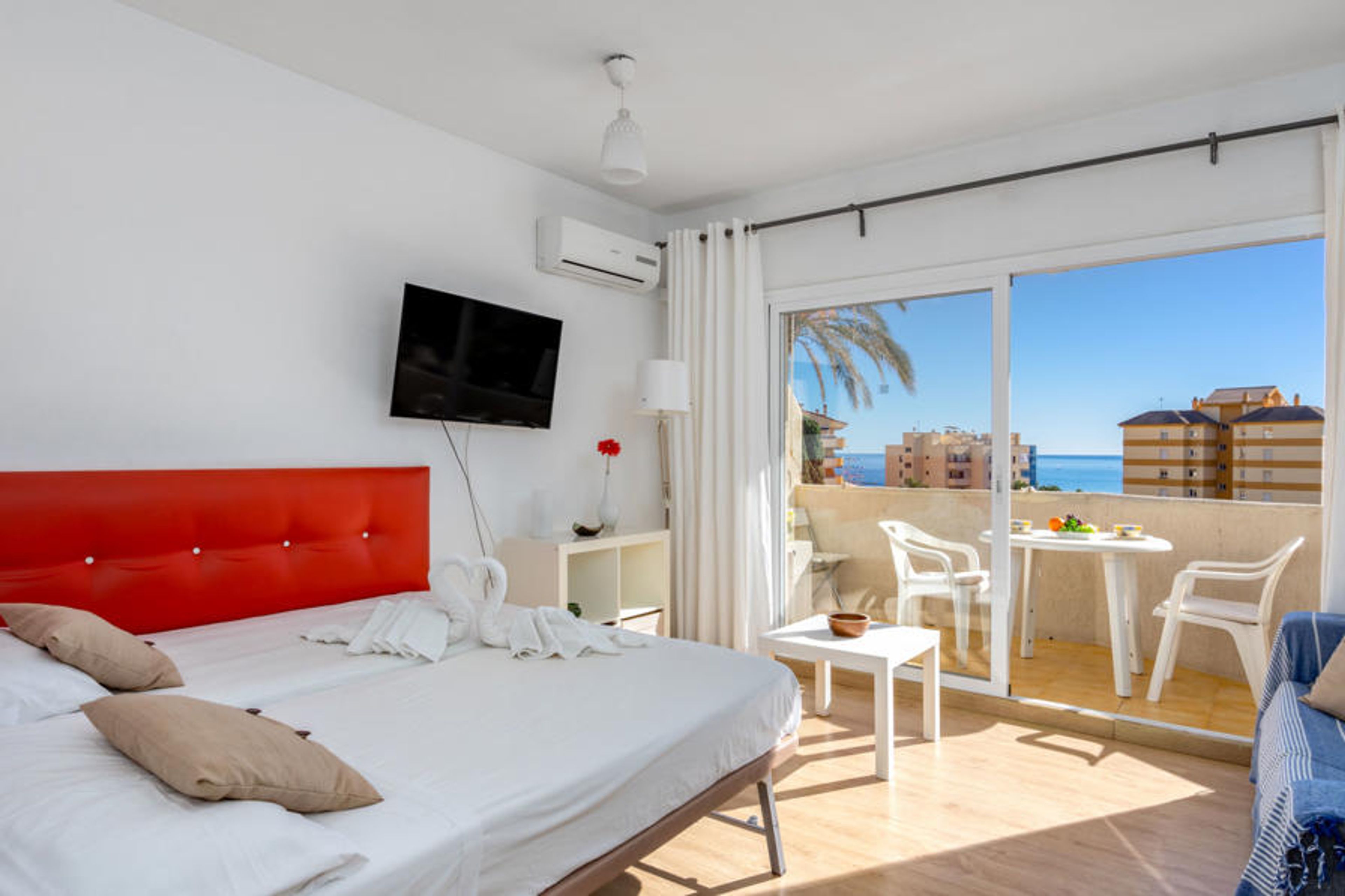 "Benalbeach", 1-room apartment 40 m2 on 1st floor. Object suitable for 2 adults + 2 children. Comfortable and cosy furnishings: living/dining room with 2 beds (90 cm) (135 cm), 1 french bed (135 cm), satellite TV, air conditioning and forced-air heating. Exit to the terrace. Open kitchen (2 hot plates, toaster, kettle, microwave, electric coffee machine). Shower/WC. Air-conditioning, boiler (50 litres). Terrace. Terrace furniture. Side view of the sea. Facilities: washing machine, iron, hair dryer. Internet (WiFi). VUT/MA/17727 // Reg. Nr.: ESFCTU0000290350002028520000000000000000VUT/MA/177275