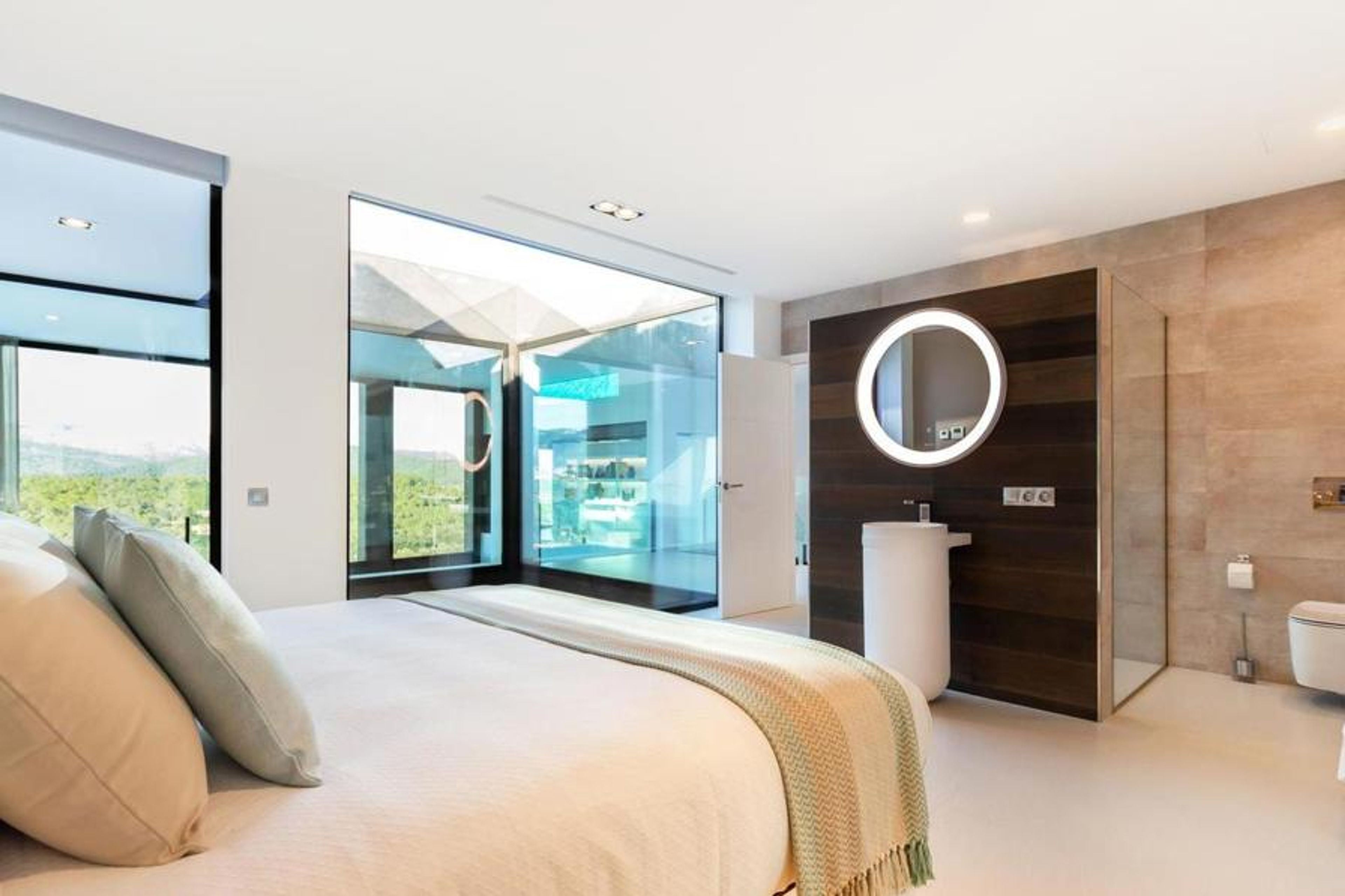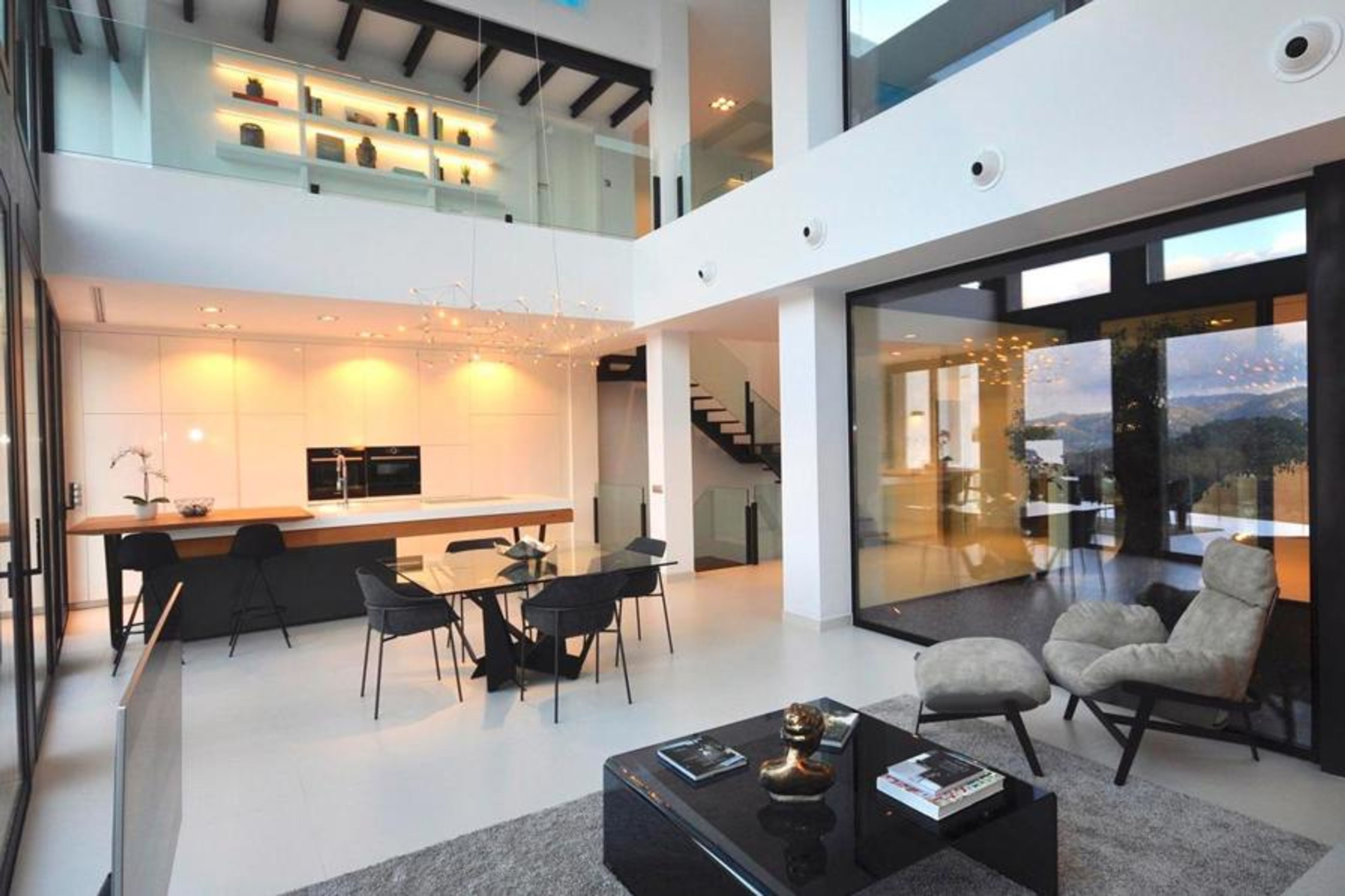 "Montblau", 6-room villa 400 m2 on 2 levels. Object suitable for 8 adults. Modern and luxurious furnishings: large living/dining room with satellite TV and flat screen. Exit to the terrace, to the swimming pool. 1 double bedroom with 1 bed (150 cm, length 200 cm). 1 double bedroom with 1 french bed (150 cm, length 200 cm). 1 double bedroom with 1 french bed (150 cm, length 200 cm). 1 double bedroom with 2 beds (90 cm, length 200 cm). Open kitchen (oven, dishwasher, 3 induction hot plates, toaster, kettle, microwave, freezer, grill, electric coffee machine). Bathroom, bath/WC, shower/WC, bidet, sep. WC. Heating. Patio 200 m2. Terrace furniture, barbecue, deck chairs (8). View of the mountains, the swimming pool, the countryside and the forest. Facilities: washing machine, safe, iron, children's high chair, baby cot for up to 2 year olds, hair dryer. Internet (WiFi, free). Suitable for families. ETV/8205 // Reg. Nr.: ESFCTU00000702200016306900000000000000000000ETV/82059