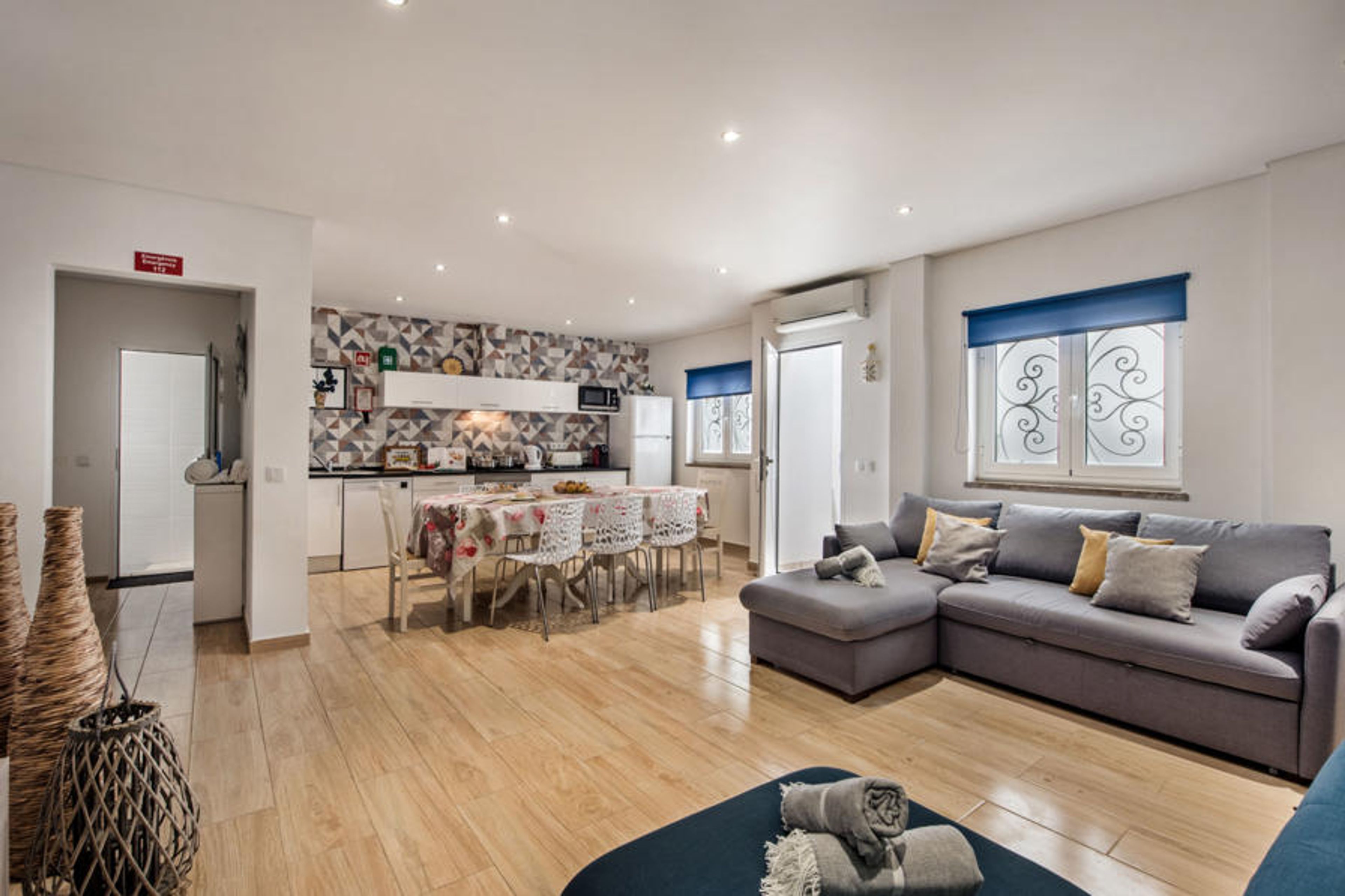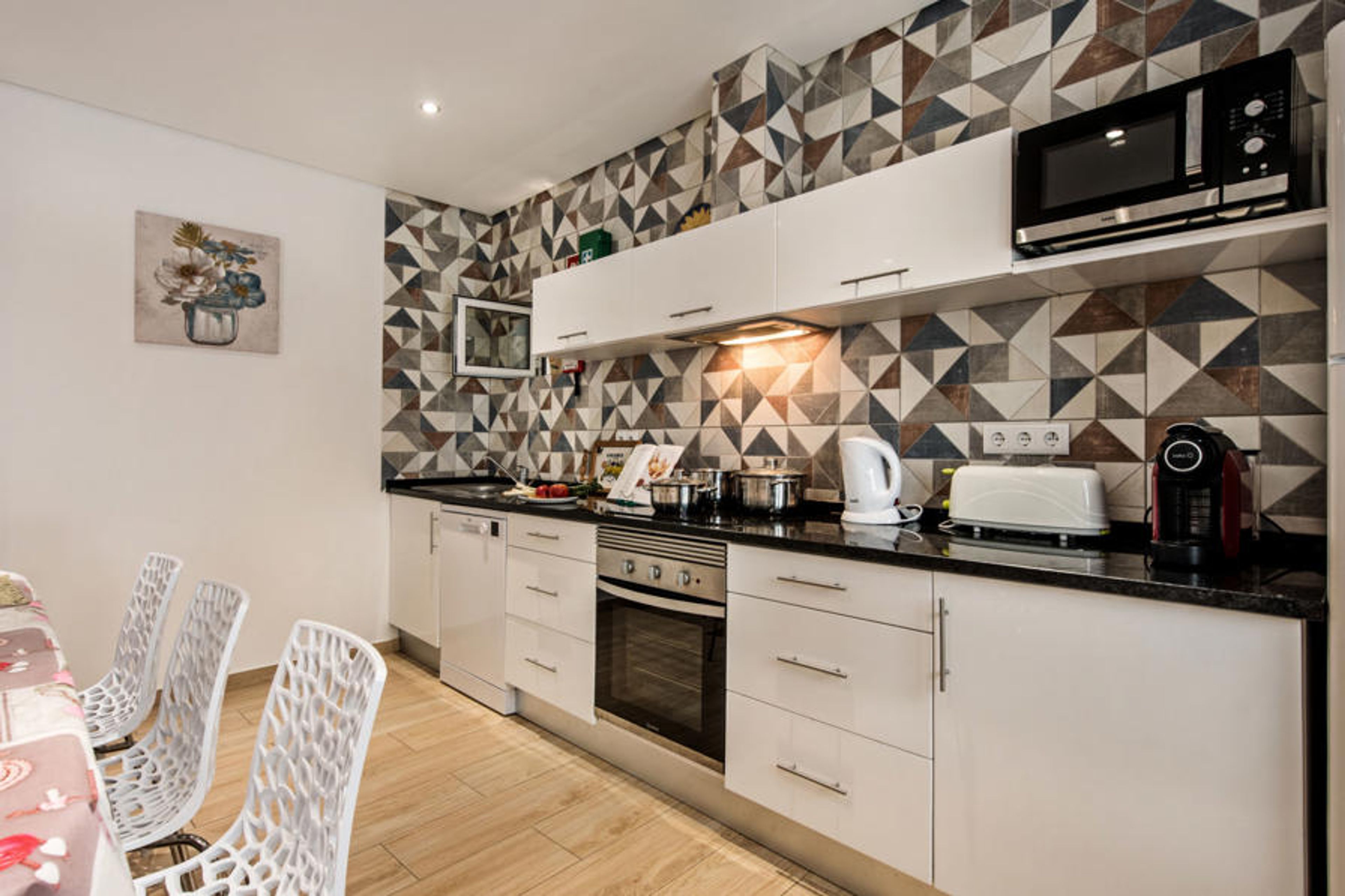 Albufeira: Very modern, cosy terraced house "Cristal", 3 storeys, renovated in 2021. In a central position, 700 m from the sea. Private: swimming pool angular (5 x 8 m, depth 90 - 180 cm, seasonal availability: 01.Jan. - 31.Dec.). Garden furniture, barbecue. In the house: WiFi, air conditioning, washing machine. Public car park at 200 m. Grocery 350 m, supermarket 110 m, shopping centre 1.5 km, restaurant 190 m, bar 350 m, bakery 650 m, café 200 m, bicycle rental 8.3 km, bus stop 220 m, sandy beach "Praia dos Pescadores" 650 m. Marina 5.1 km, golf course (18 hole) 6.1 km, surf school 8.7 km. Nearby attractions: Zoomarine 10.4 km, Aqualand 15.9 km, Krazy World 16 km, Sand City 25.6 km, Algarve Shopping 7.9 km, Faro Airport 39.7 km. Hiking paths: Lagoa dos Salgados 12.7 km. Please note: car not advisable. Young groups under 25 y.o. will be charged an extra deposit per person on spot.