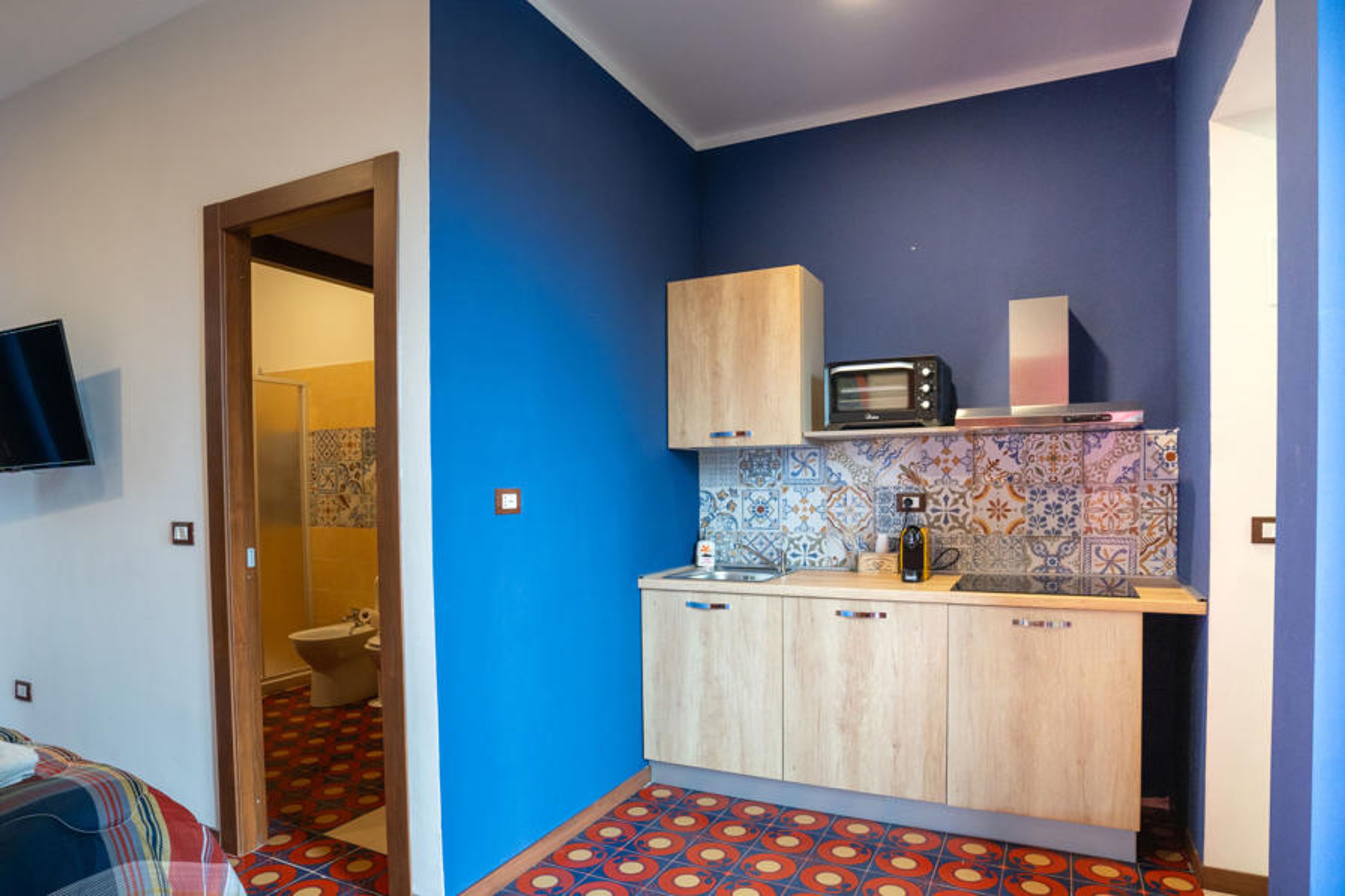 "Dimora Porta Nuova", 2-room apartment 32 m2 on 1st floor. Bright, very comfortable furnishings: living/dining room with 1 double sofabed, TV and air conditioning. 1 room with 1 x 2 bunk beds. Kitchenette (mini-oven, 4 induction hot plates, toaster). Bath/bidet/WC. Facilities: Internet (WiFi). IT069015C1L47UB7AO