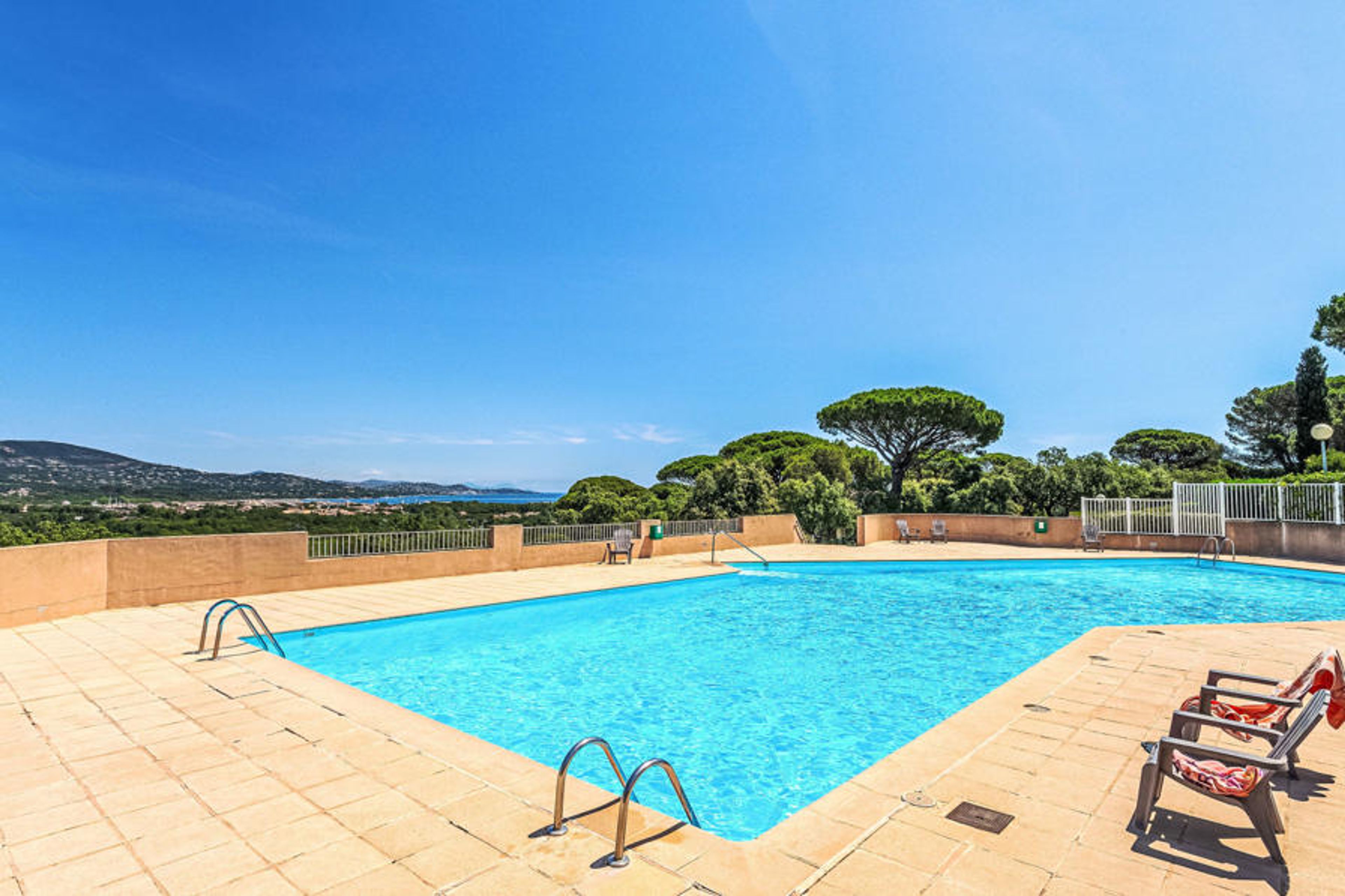 Cogolin: Residence "Village de Campagne". Outside the resort, 5 km from the centre of Cogolin, 3.5 km from the sea. For shared use: swimming pool (10 x 17 m, depth 120 - 190 cm, seasonal availability: 01.May. - 30.Sep.). Tennis. Shop 1.5 km, grocery 1.5 km, supermarket 2.5 km, restaurant 1.5 km, bakery 1.5 km, bus stop "Les Narcisses" 650 m, sandy beach "Les Marines de Gassin" 3.5 km. Sailing school 3.5 km, minigolf 2 km. Nearby attractions: Parc d'attractions Azur Park 1.5 km, Saint Tropez 5 km, Plages de Pampelonne 12 km, Cannes 84 km, Nice 110 km. Well-known lakes can easily be reached: Le Lac de Sainte Croix 92 km. Hiking paths: Domaine de l'Esterel 50 km. Please note: car recommended.
