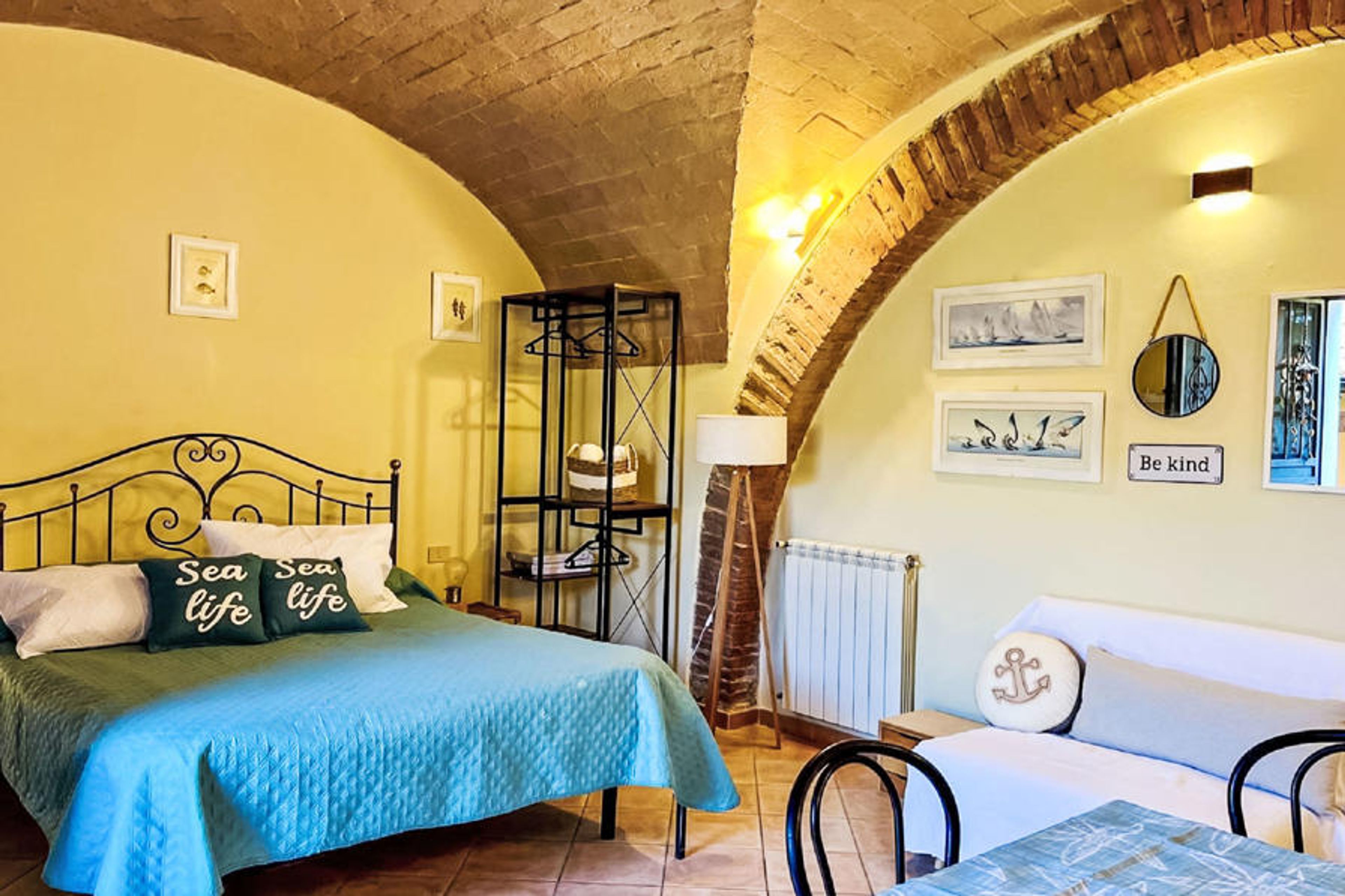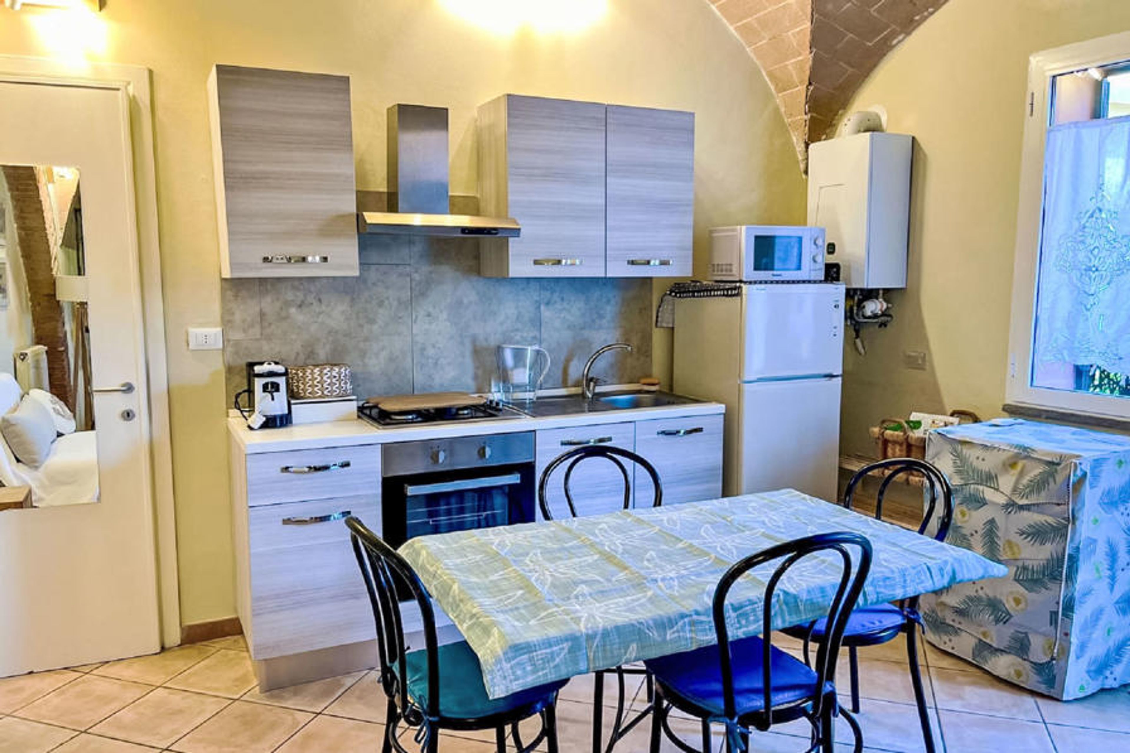 "Fattoria Palazzeta", 1-room apartment 40 m2, on the upper ground floor. Simple and practical furnishings: living/sleeping room with 1 sofabed, 1 double bed, dining table, TV, electric heating and air conditioning. Exit to the patio. Open kitchen (oven, Gas stove, 4 gas rings, toaster, kettle, electric coffee machine). Shower/bidet/WC. Facilities: washing machine, mosquito net, children's high chair, baby cot for up to 2 year olds (extra), hair dryer. Internet (WiFi, free). Parking space n 7. Maximum 1 pet/ dog allowed. IT049007C2HQGHXG8A