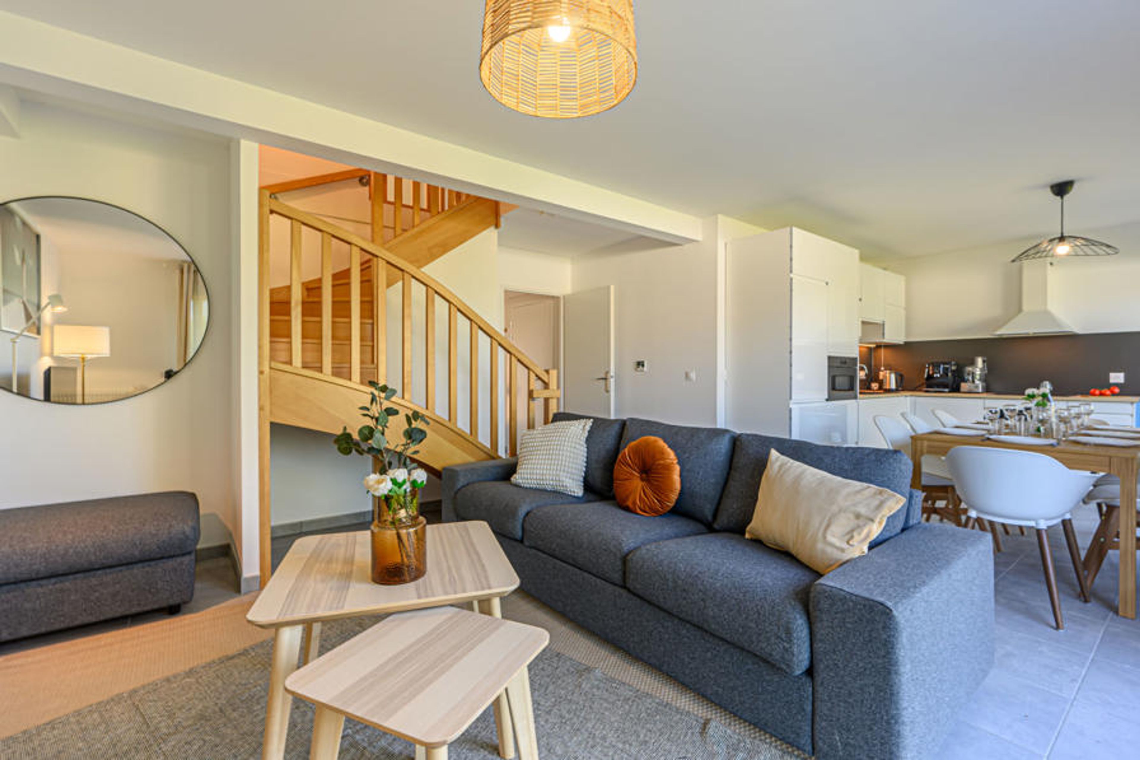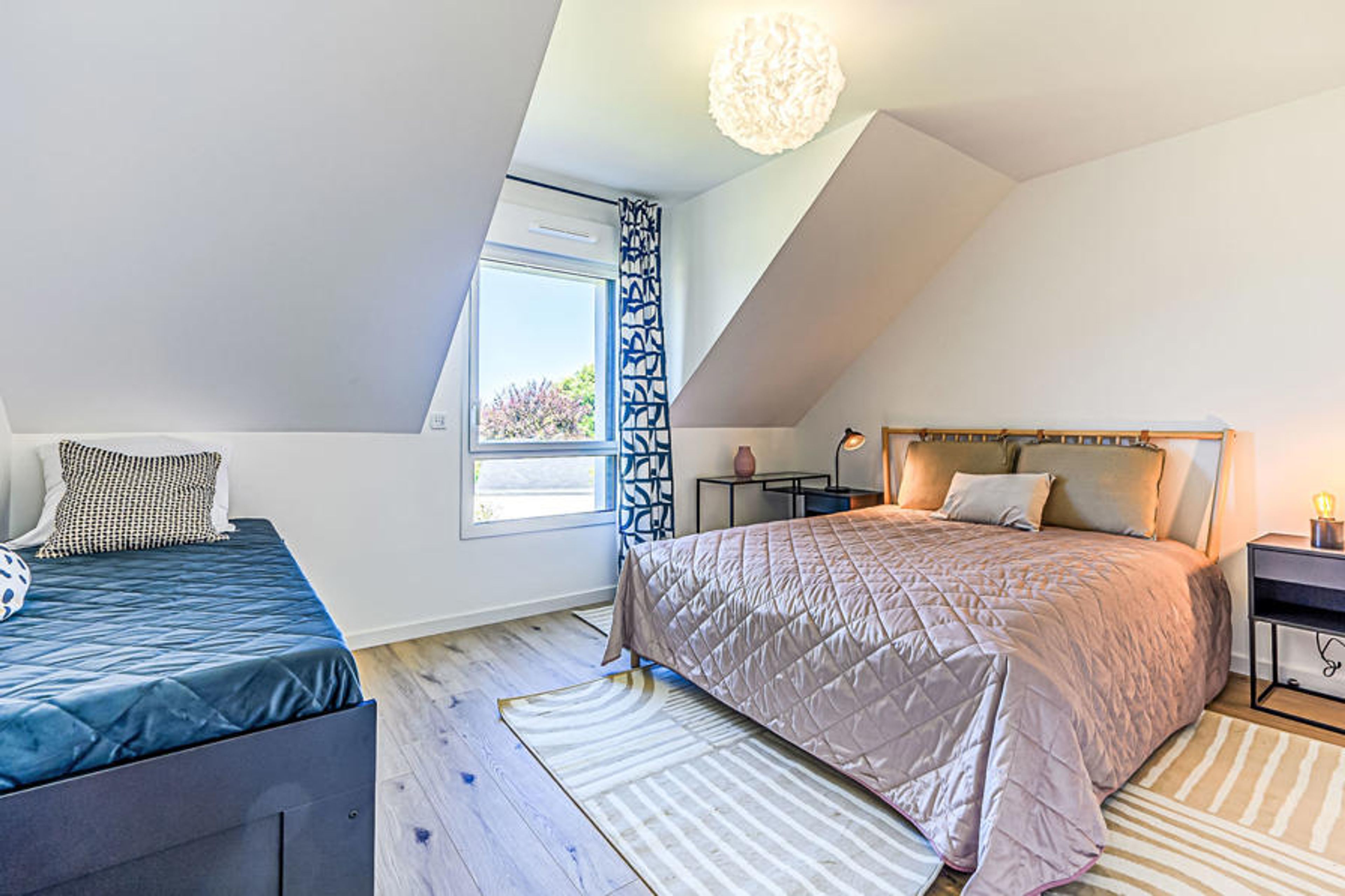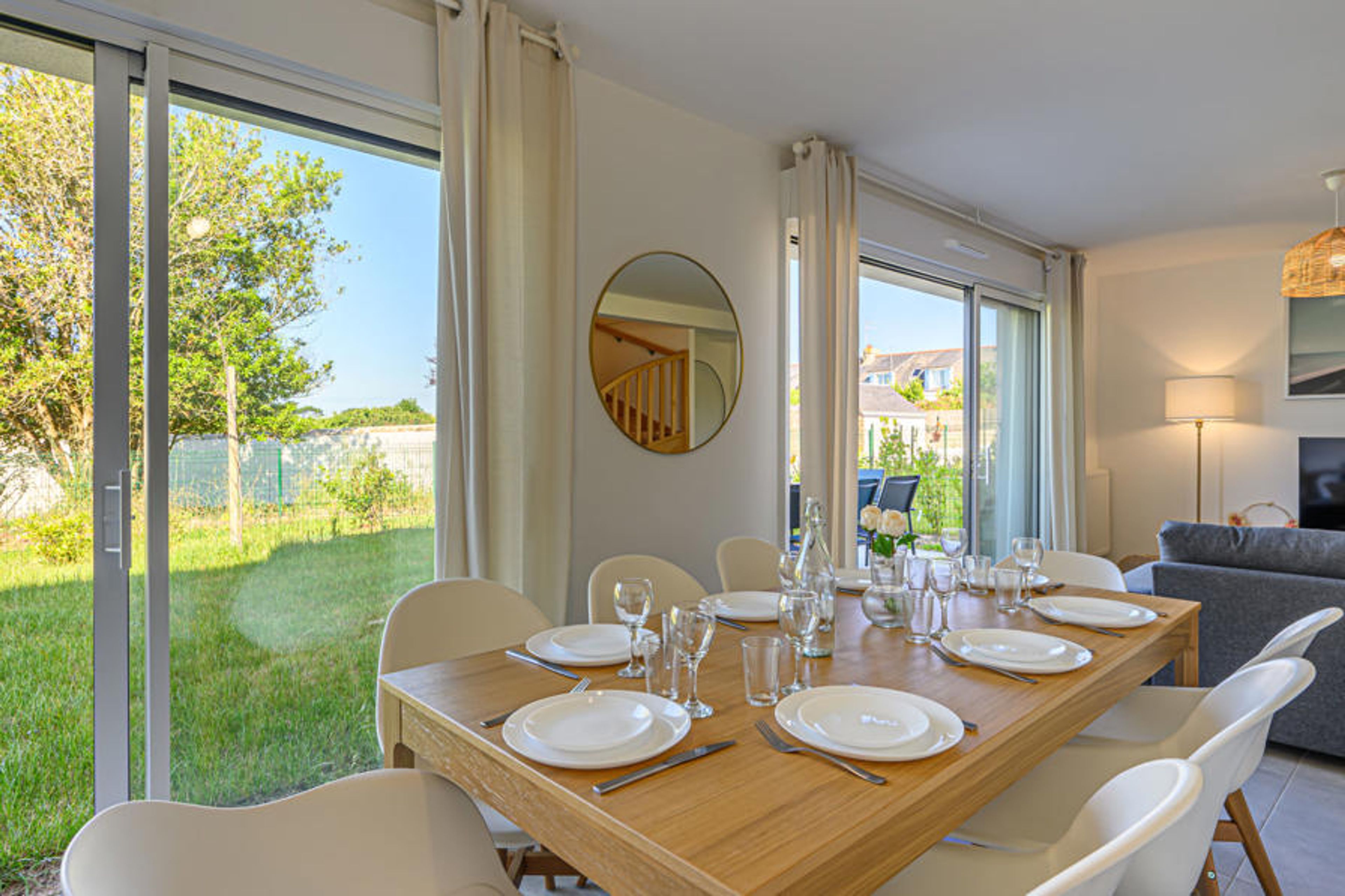 Les Salines: Beautiful terraced house "Les Salines", built in 2024. On the outskirts, 700 m from the centre of Carnac Plage, 900 m from the sea, 900 m from the beach. Private: well-kept garden (fenced), parking (for 2 cars). Shop 700 m, supermarket 800 m, restaurant 100 m, bakery 200 m, bus stop 10 m, sandy beach "Grande Plage de Carnac" 900 m, thermal baths "Thalassothérapie" 800 m. Sports harbour 1 km, golf course (18 hole) 15 km, surf school 4 m, sailing school 1 km. Nearby attractions: Les Alignements de Carnac 2 km, La Trinité sur mer 5 km, Auray et le port de Saint-Goustan 14 km, Presqu'île de Quiberon 16 km, Vannes 33 km, Lorient 40 km.