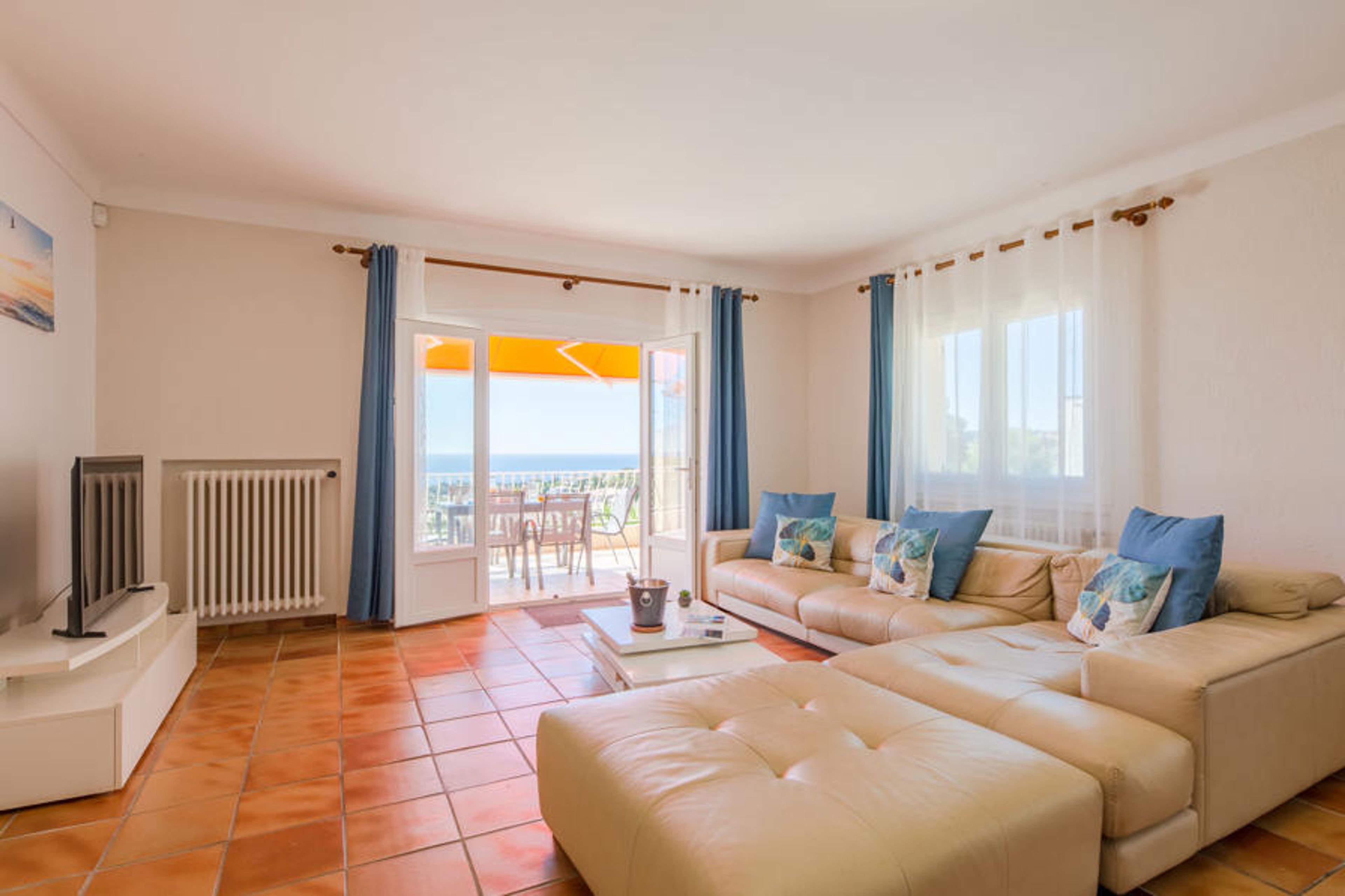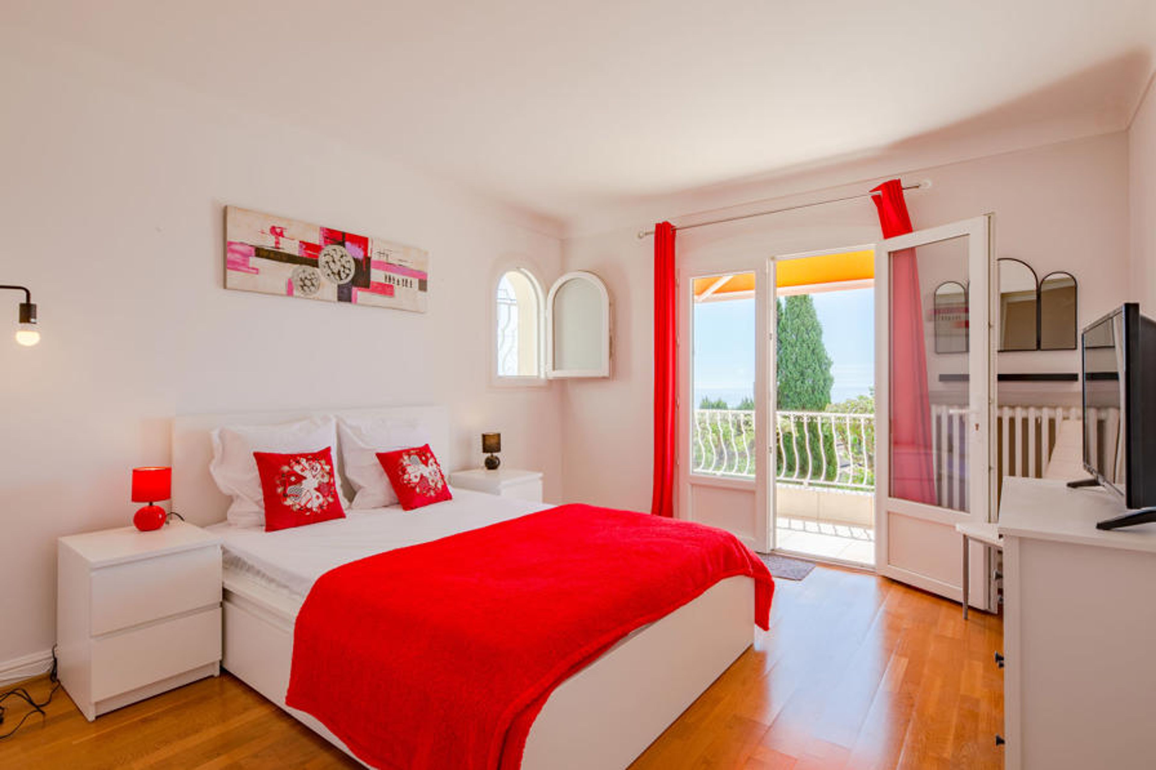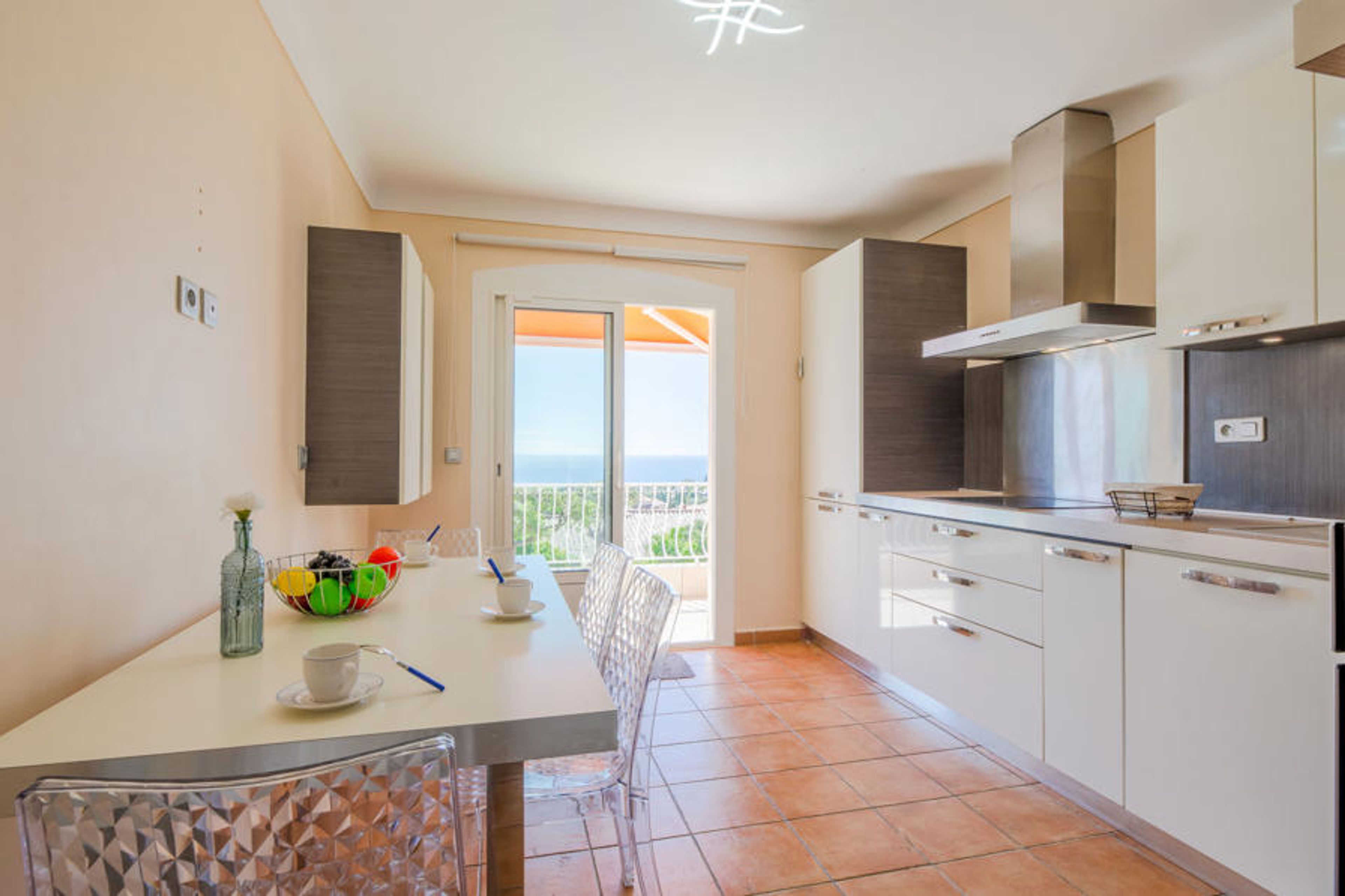 4-room apartment 115 m2 on 1st floor, south facing position. Spacious and bright, beautiful furnishings: large living/dining room with TV (flat screen). Exit to the balcony. 1 room with Dressing room with 1 french bed (1 x 140 cm, length 200 cm). Exit to the balcony. 1 room with Dressing room with 2 beds (90 cm, length 200 cm). 1 room with 1 french bed (1 x 140 cm, length 200 cm). Exit to the balcony. Large kitchen (oven, dishwasher, 4 induction hot plates, toaster, kettle, microwave, freezer, electric coffee machine, Capsules for coffee machine (Senseo) extra). Exit to the balcony. Bath/shower, sep. WC. Heating, air-conditioning. Large terrace 32 m2 partly roofed, south facing position. Balcony furniture, deck chairs (6). Beautiful view of the sea and the swimming pool. Facilities: washing machine, iron, hair dryer. Internet (WiFi, extra). Parking (fenced 1 car). Please note: non-smokers only. Maximum 1 pet/ dog allowed. TV only FR. Smoke alarm. No internal connecting door between the floors. Offer by a private individual according to Art. 155, IV of CGI. RLFKAW