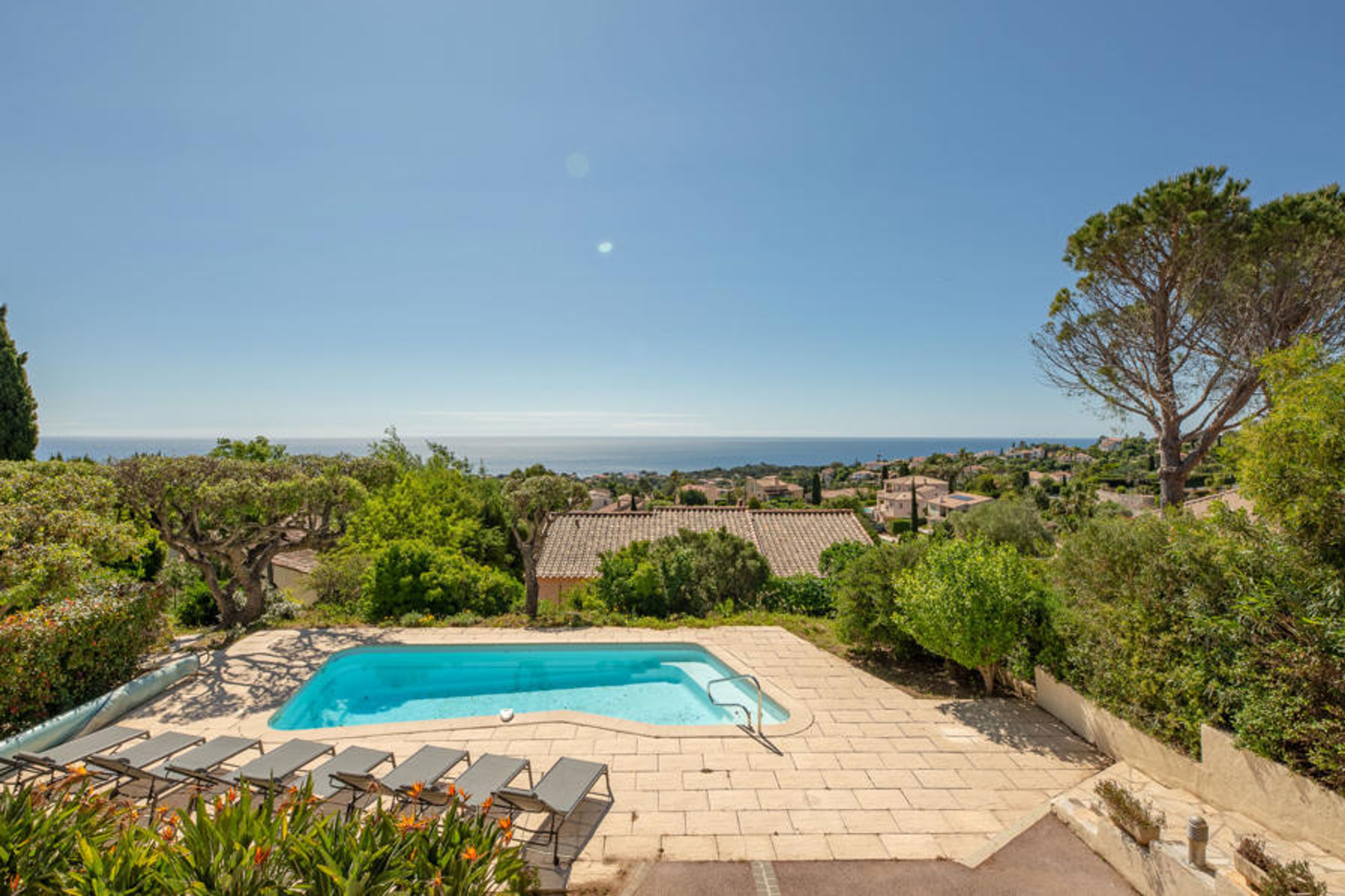 Very beautiful 2-family house "Le Forum de la Mer", 2 storeys. 2 km from the centre of Saint Aygulf, in a quiet position, 1.9 km from the sea, 3.7 km from the beach, south facing position. For shared use: natural state property 1'100 m2 (fenced), swimming pool (4 x 8 m, depth 95 - 160 cm, seasonal availability: 01.Apr. - 31.Oct.) with internal staircase and alarm system. Unconventional pool shape. Parking at the house at 2 m. Shop 1.7 km, shopping centre 7 km, 30 minute walk to the centre, bus stop "Saint-Aygulf La Poste" 1.2 km, railway station "Fréjus" 8 km, sandy beach "Saint Aygulf" 1.7 km pebble beach "Calanque de Saint Aygulf" 1.9 km, park "Areca" 2 km, diving center 8 km, thermal baths "Thalasso de Port Fréjus" 8 km. Sports harbour 2.5 km, golf course (18 hole) 10 km, sailing school 8 km, riding stable 3 km, sports centre 2 km. Nearby attractions: Aqualand, Luna Park 7 km, Fréjus 8 km, Saint Rapahael 10 km, St Tropez 30 km, Cannes 47 km, Nice 73 km. Well-known ski regions can easily be reached: Auron, Isola 2000 150 km. Well-known lakes can easily be reached: Lac de St Cassien 45 km, Lac du Du Verdon 90 km. Hiking paths: Estérel 18 km, Sentier du Littoral 2 km. Please note: car recommended. The keys‘ handover takes place by the agency Interhome in Saint Aygulf.