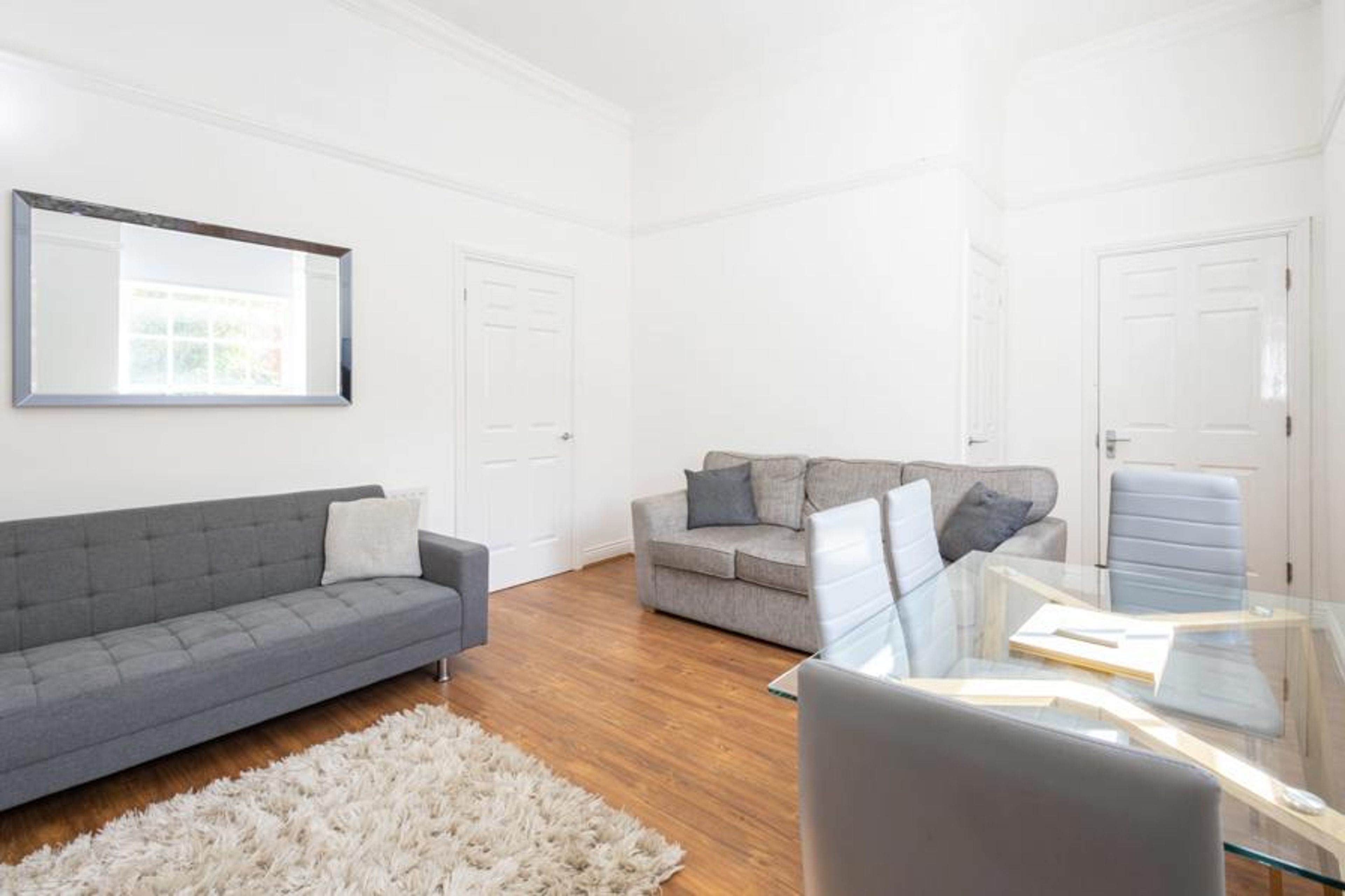 St Margaret’s Mews has a spacious living and dining area. Featuring crisp white walls, along with comfortable modern furnishings, the space has plenty to boast about. The perfect place to relax during your stay, you can unwind on the comfy sofas and enjoy quality time with your loved ones. Ideal for socialising, the dining area includes a rectangular glass table and seating for all guests.