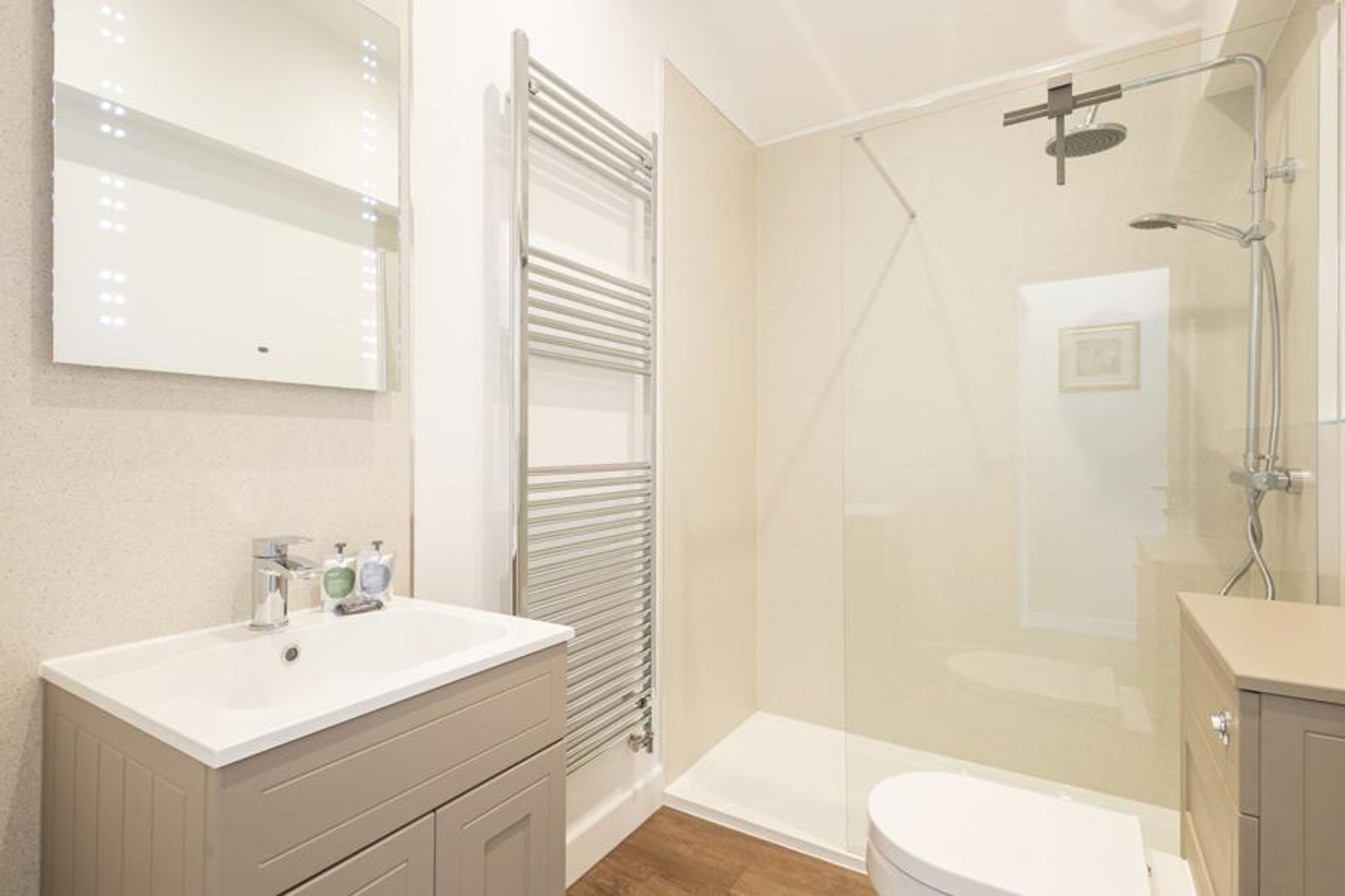The kitchen area is a modern space. Amenities include a dishwasher, fridge, freezer, kettle, microwave, oven, hob, toaster and washing machine so you have everything you could need for your self-catering stay. Dishes, cutlery and cookware are also provided for your convenience.