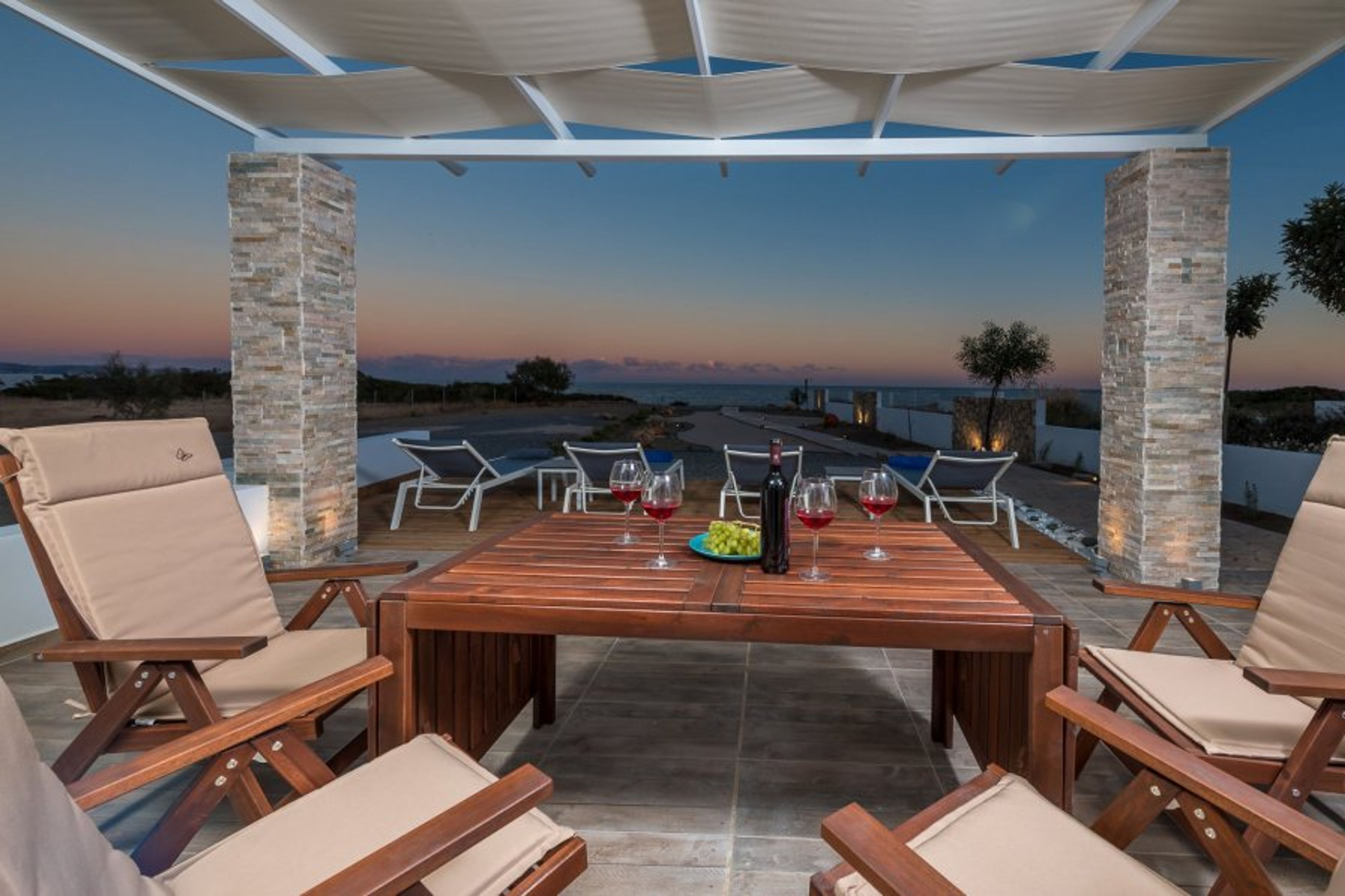 A beautiful corridor is crossing the colorful garden and leads to the sand of the endless and yet almost private beach of Gennadi. In 50 steps you will find 3 permanent exclusive beach umbrellas with 6 beds to enjoy the deep blue of the Aegean Sea. We provide, free of charge, racquets, balls, inflatables, and a fishing rod to have fun at the beach.