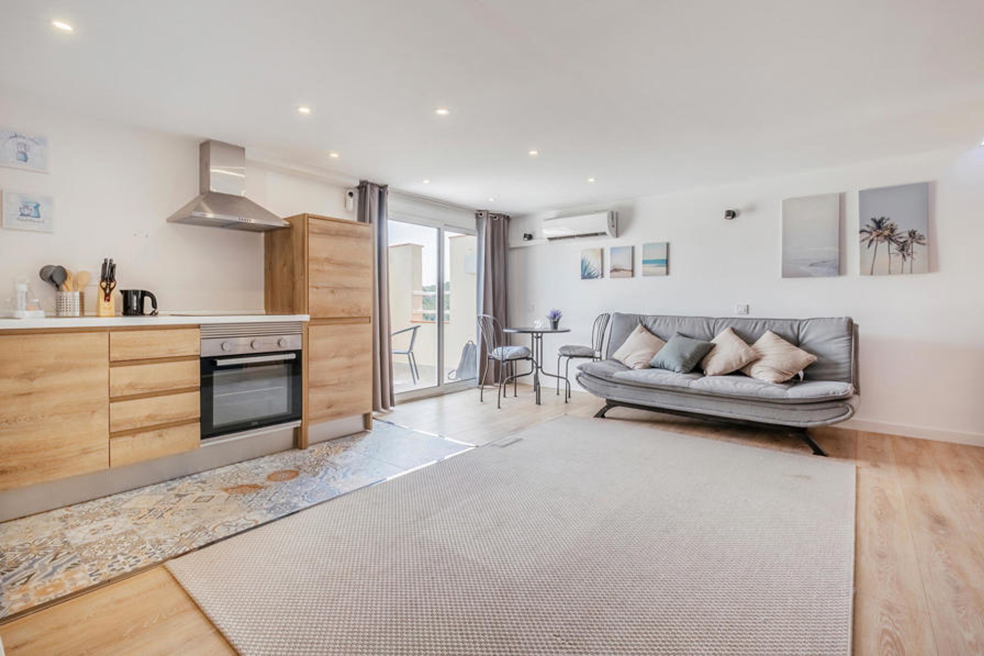 Welcome to this stylish studio flat in Sitges, the perfect retreat for couples or small families. The modern and appealing interior offers you everything you need for a comfortable stay. The light-flooded space creates a relaxed atmosphere for you, while the balcony is inviting for an al fresco breakfast or a cosy evening at sunset. Explore the communal pool, which provides refreshing moments and perfectly complements the feel-good ambience of this charming flat.