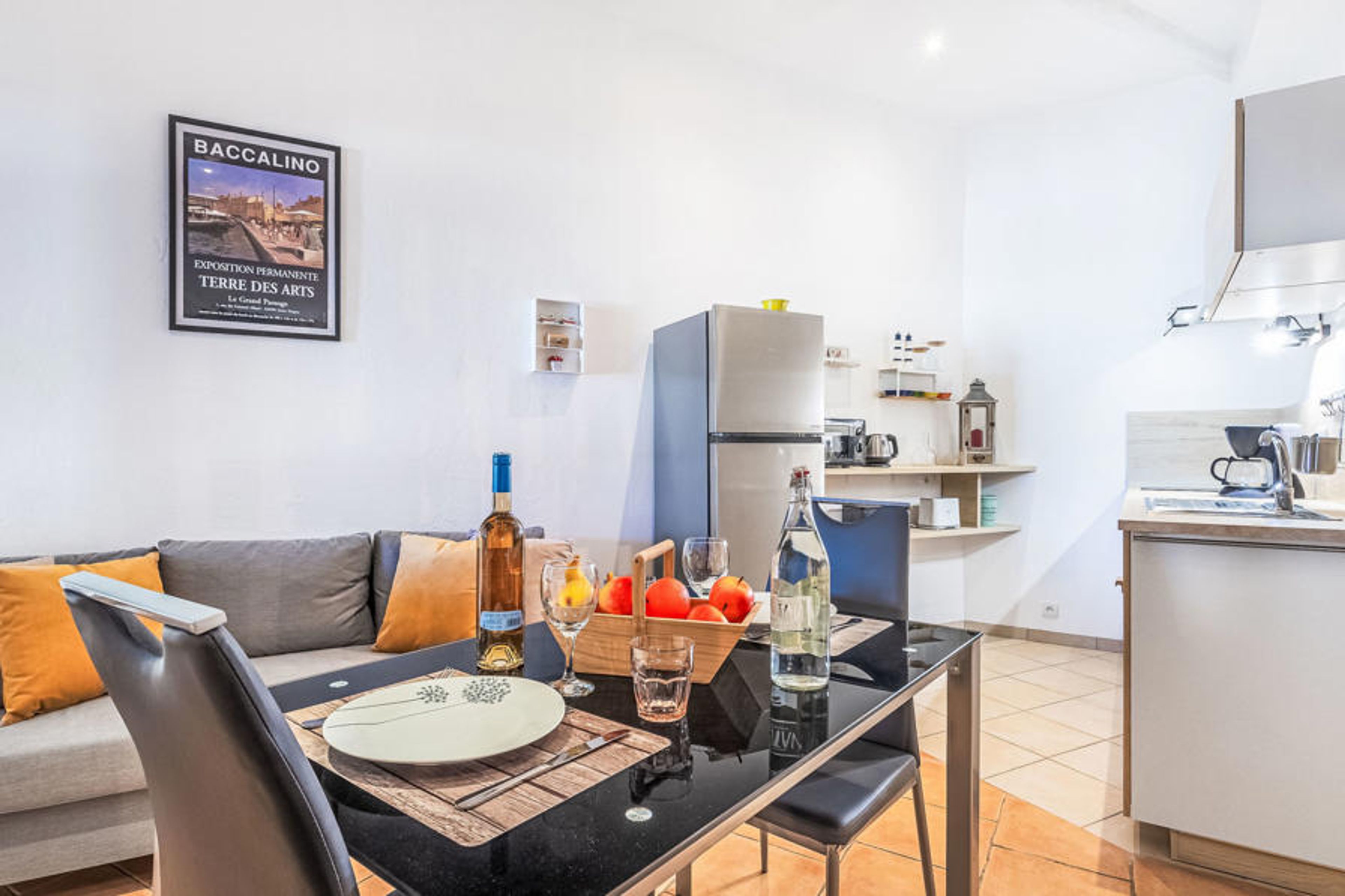 "La Galiote 30", 1-room studio 30 m2, on the upper ground floor. Cosy furnishings: living/sleeping room with 1 french bed (140 cm, length 190 cm), TV (flat screen). Kitchenette (dishwasher, 2 induction hot plates, toaster, kettle, microwave, freezer, electric coffee machine). Shower/WC. Air-conditioning, forced-air heating. Facilities: Internet (WiFi, free). Parking at 300 m. Please note: non-smokers only. 1 small pet/ dog allowed. Smoke alarm. Offer by a private individual according to Art. 155, IV of CGI.
