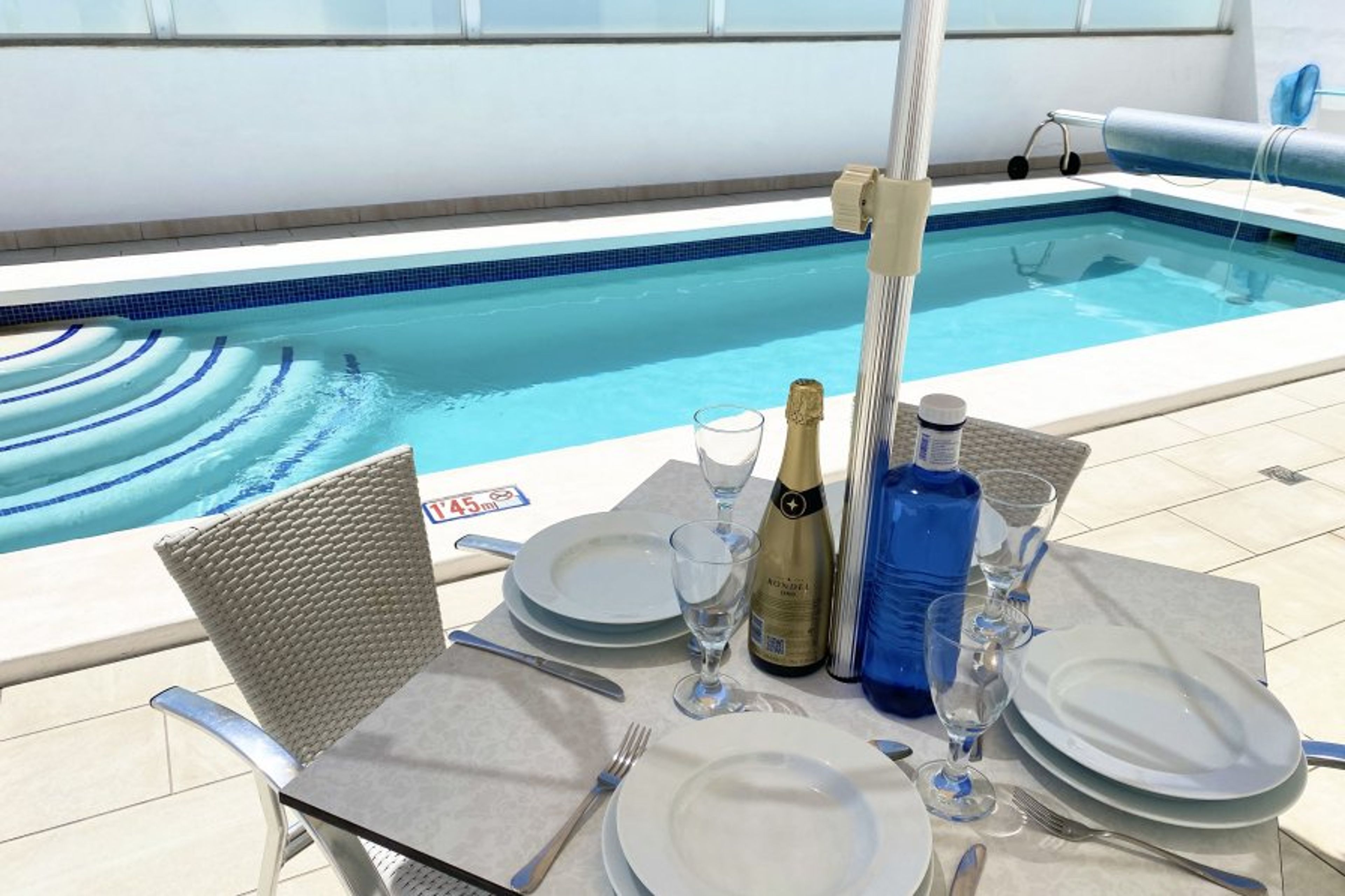 The swimming pool is a real treat and the terrace is a complete sun trap. The pool is heated during the winter months and there is an option to have the pool heated during the summer months at an extra cost.