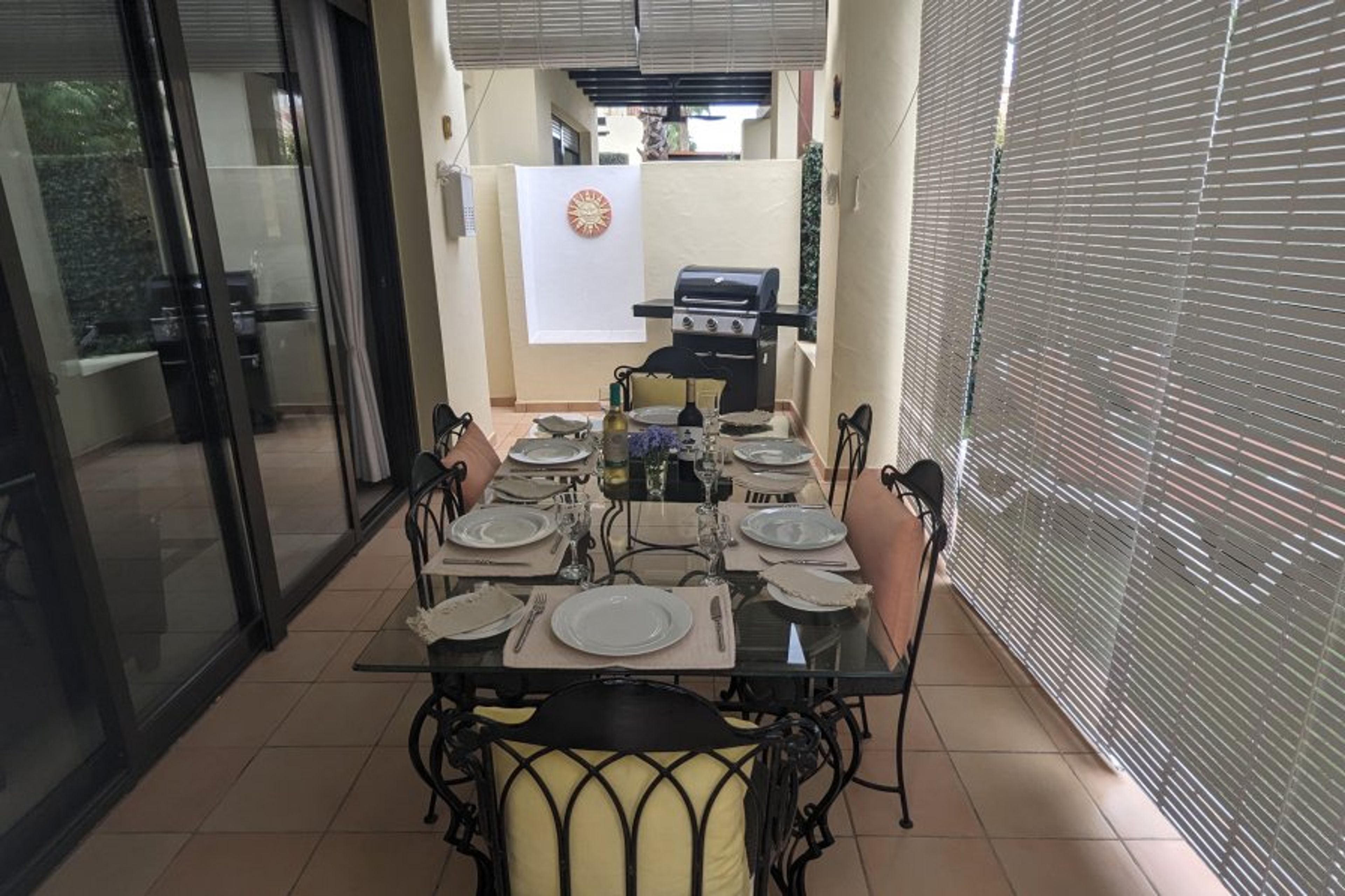 The nearest large supermarkets of Mercadona, Consum, Lidl and Aldi are situated near the front entrance to the gated golf course. This beautiful 3 double bedroom villa comes with shaded parking for 1 vehicle, a well-equipped kitchen, an open-plan lounge diner with sliding doors to the fan cooled spacious terrace furnished with a six-seater dining table, loungers and gas barbecue. There are three bathrooms with shower facilities. Along with the long list of baby gear provided, the villa comes with: Internet provided TV, DVD player, CD player, Ipod docking station, internet access, oven, hob, fridge-freezer, washing machine, clothes drying rack, dish-washer, microwave, toaster, kettle. All linen and towels (including beach towels) are provided.