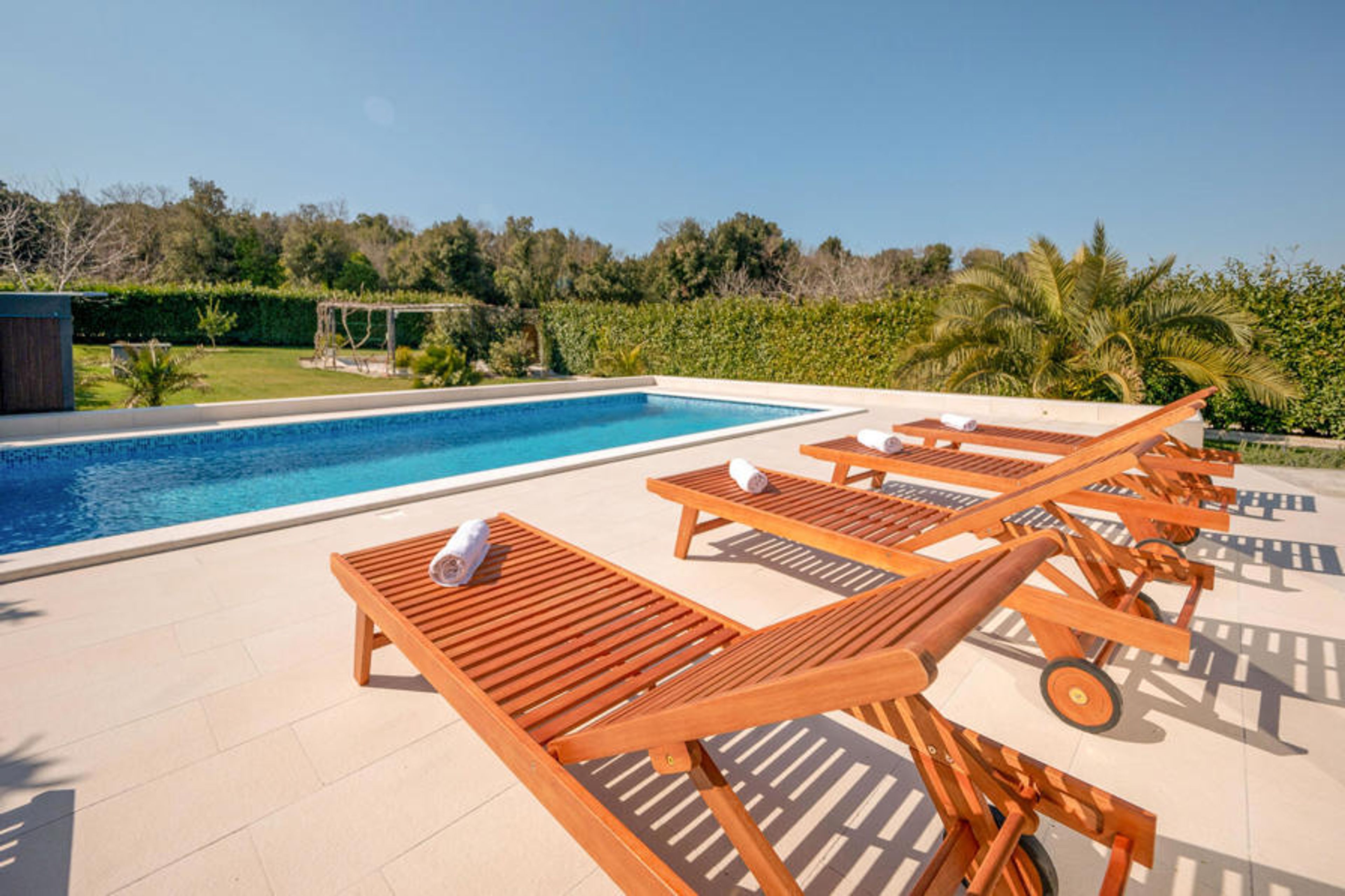 In Vinkuran, just a short drive from Pula, this beautiful villa awaits you for a relaxing break. Enjoy the day by the spacious pool, surrounded by comfortable sun loungers, and relax in the peaceful garden. For children, the well-tended garden also offers a playground with swings, a slide and a playhouse. Adults can have fun at the outdoor table tennis table.