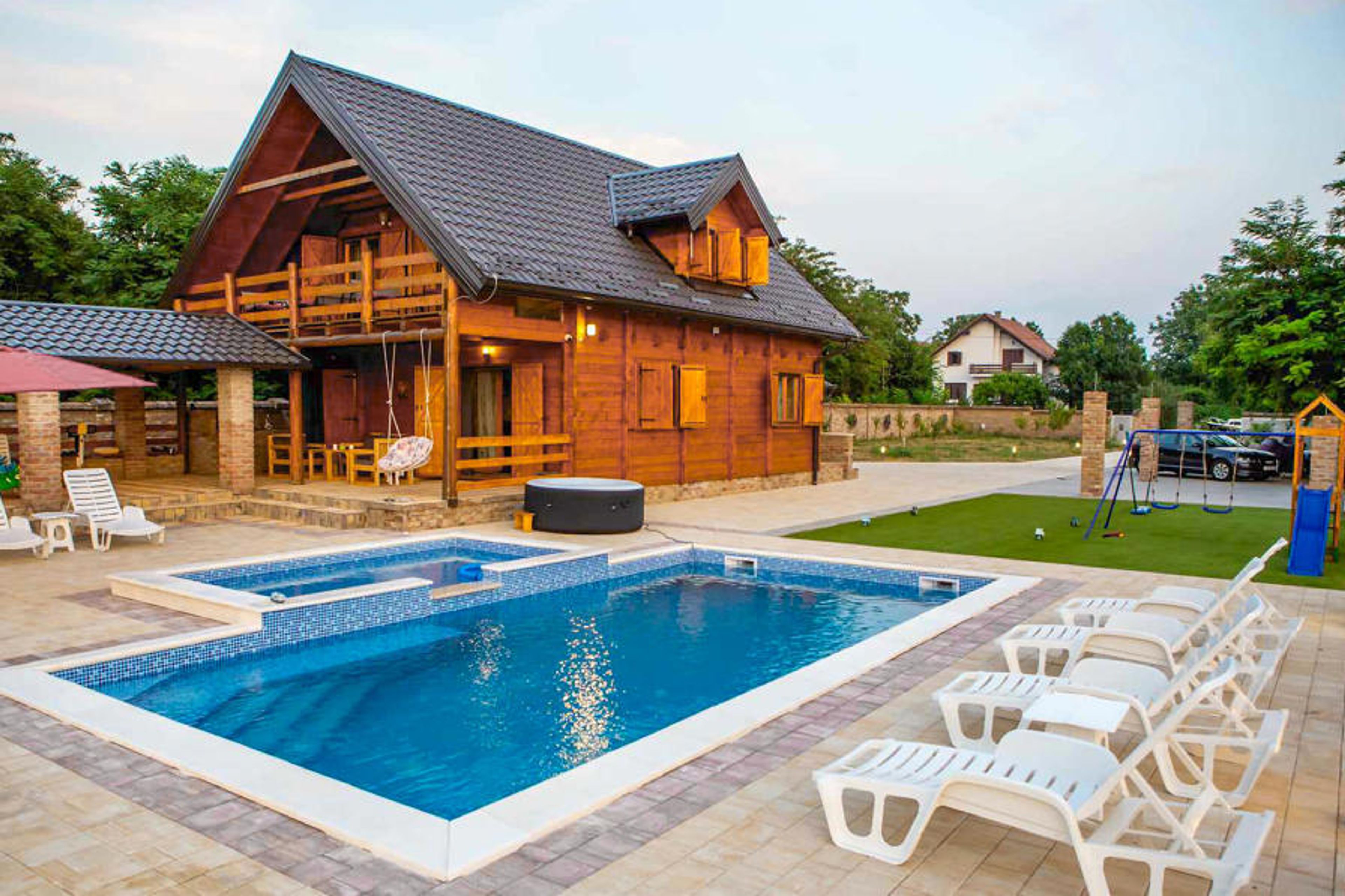 Your cosy wooden house in Vukovar offers you the opportunity to spend both an active and relaxing holiday. Start your day with a dip in the refreshing pool or relax in the hot tub. Enjoy the peaceful atmosphere and the beautiful view of the Danube, which stretches close to the house. Make yourself at home in the warm, cosy atmosphere of the indoor area on the comfortable seating and prepare a delicious dinner in the kitchen.